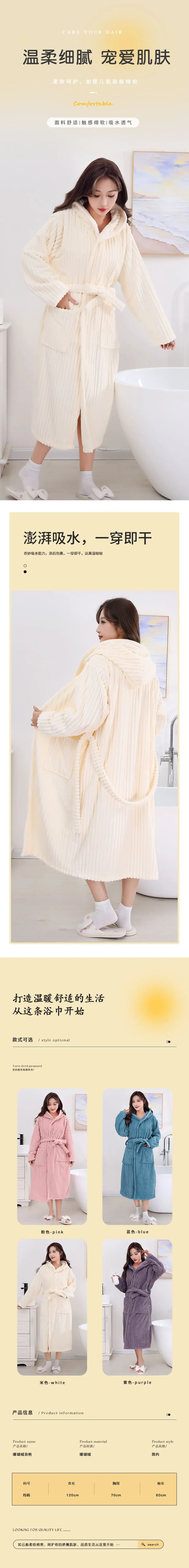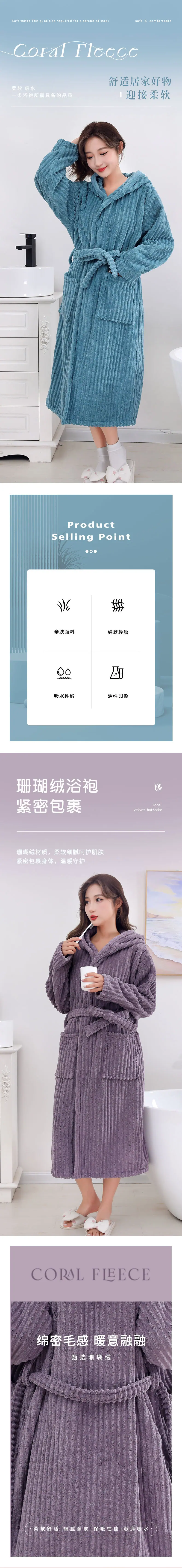 Bata de baño nueva de forro polar de coral gruesa para pareja adulta para el hogar, camisón de baño absorbente de secado rápido, venta al por mayor transfronteriza