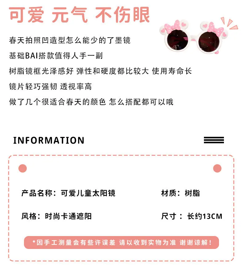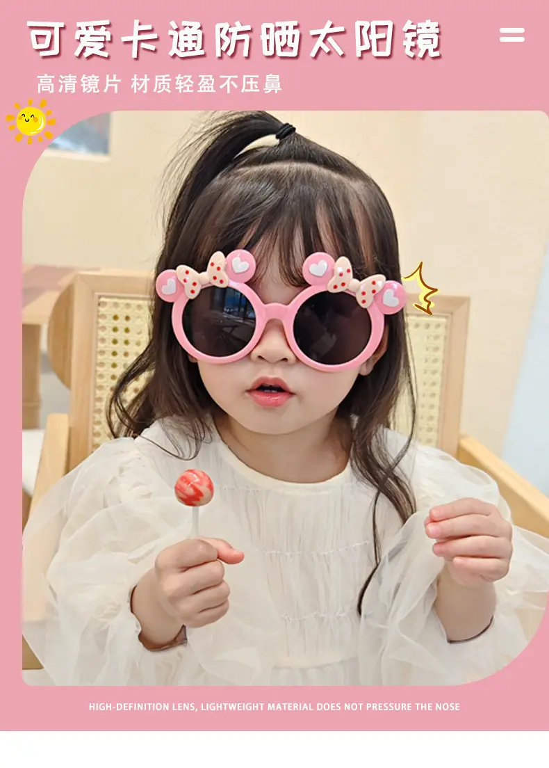 Gafas de Sol de Nuevo Estilo Gafas de Sol para Niños Venta al por Mayor Lazo Moda Dibujos Animados Disfraz Gafas Lindas Niños y Niñas Bebé