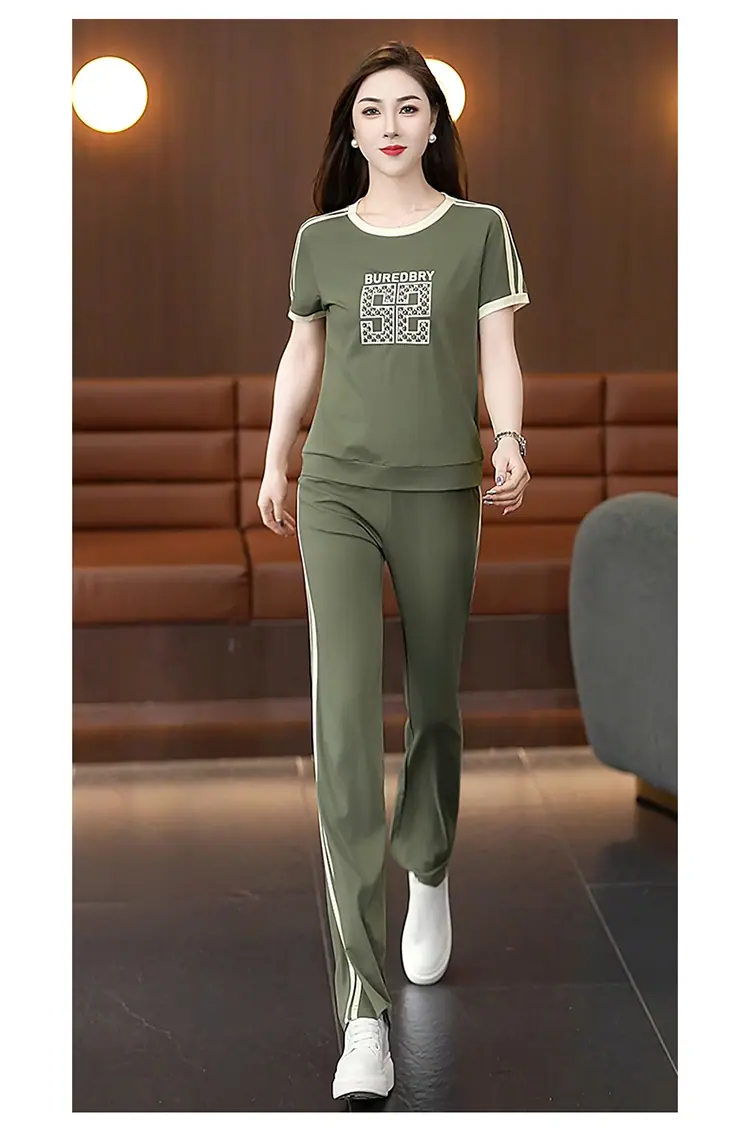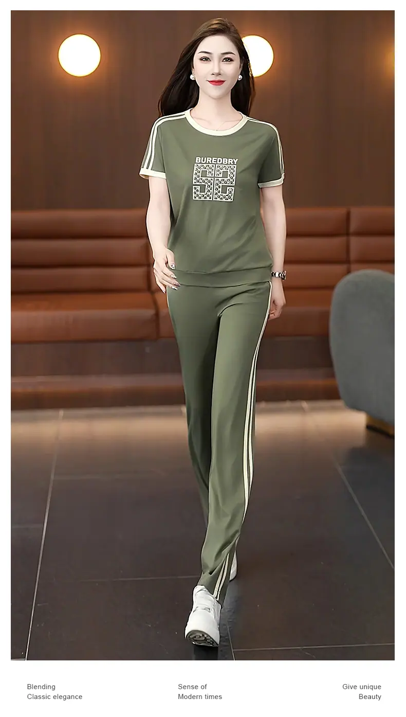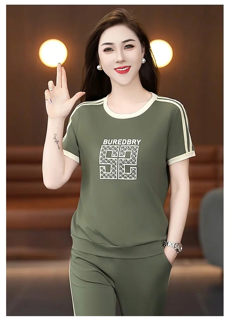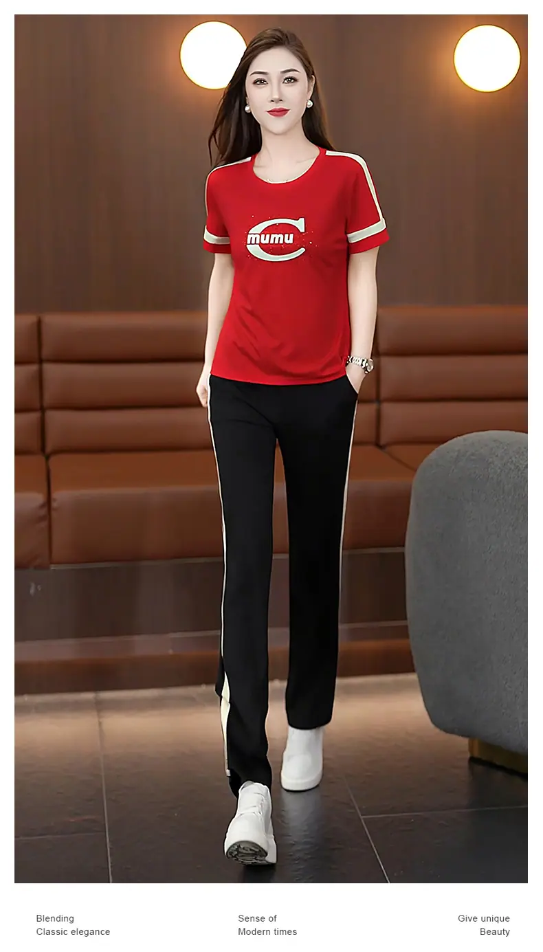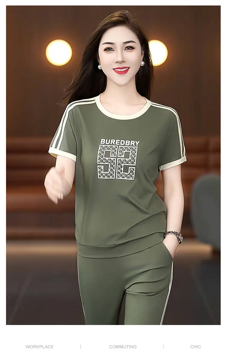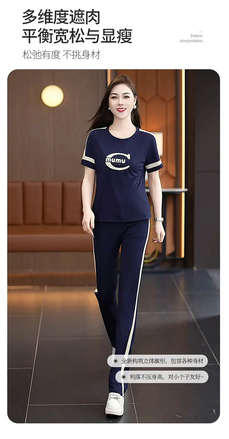 Traje Deportivo de Moda para Mujer Verano 2025 Nuevo Talla Grande Holgado Adelgazante Manga Corta Traje para Correr Casual Conjunto de Dos Piezas a la Moda