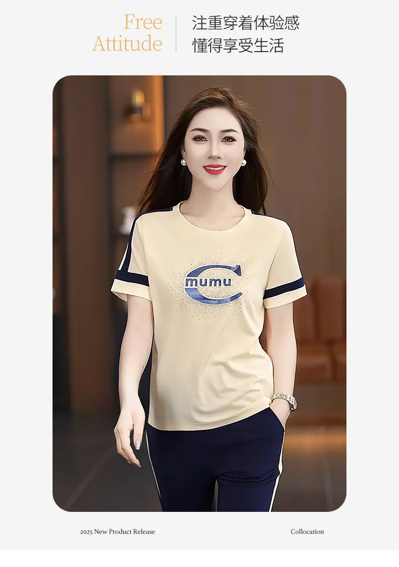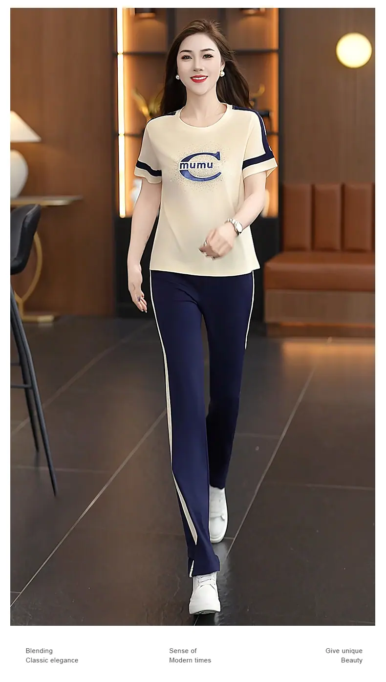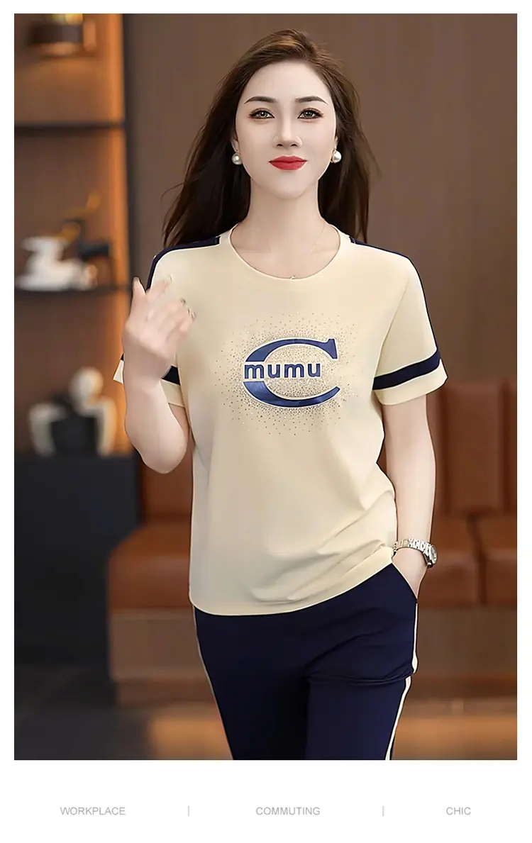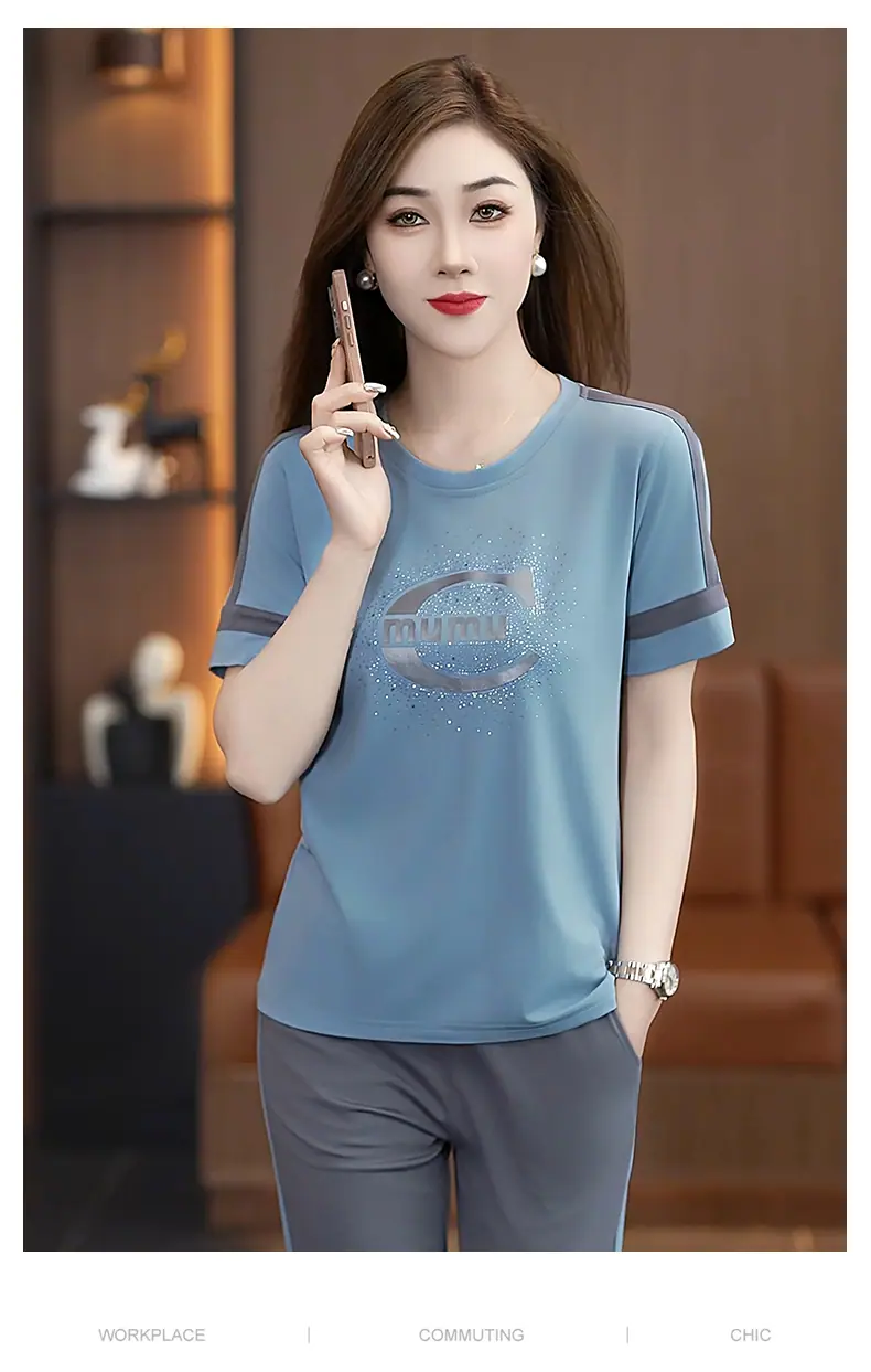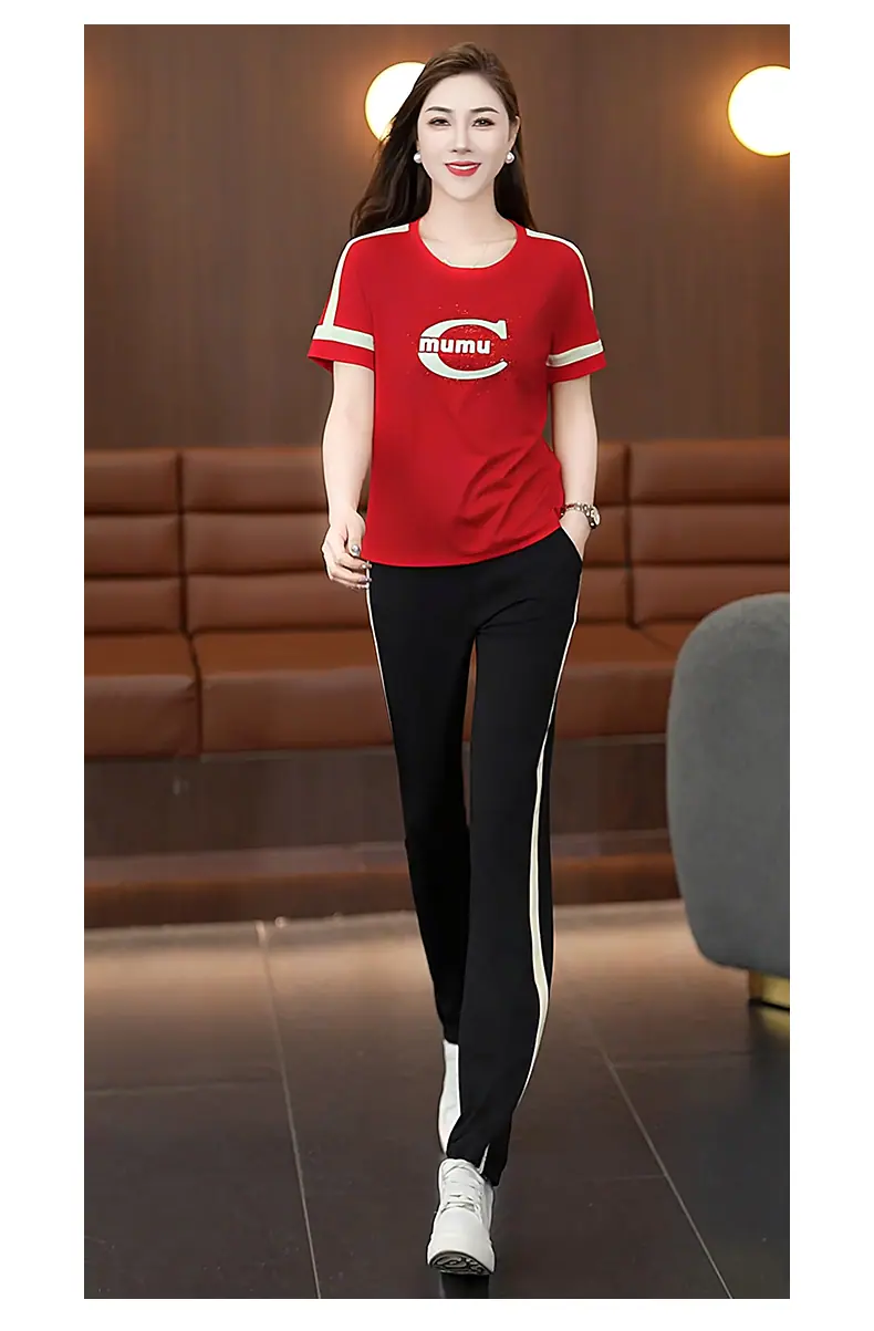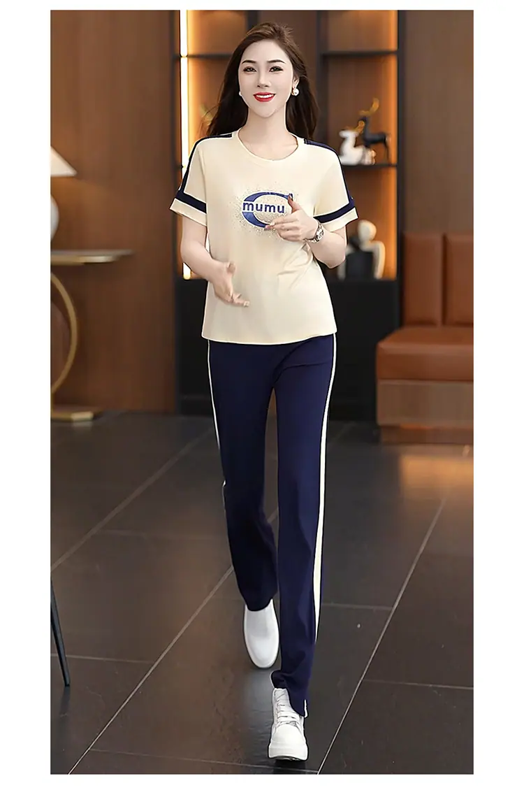 Traje Deportivo de Moda para Mujer Verano 2025 Nuevo Talla Grande Holgado Adelgazante Manga Corta Traje para Correr Casual Conjunto de Dos Piezas a la Moda