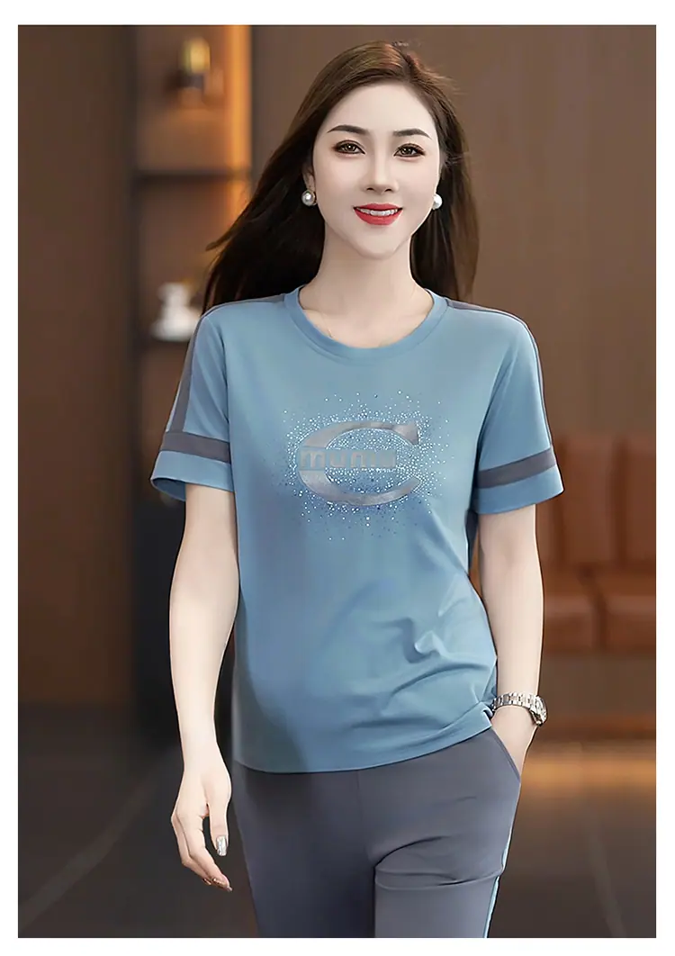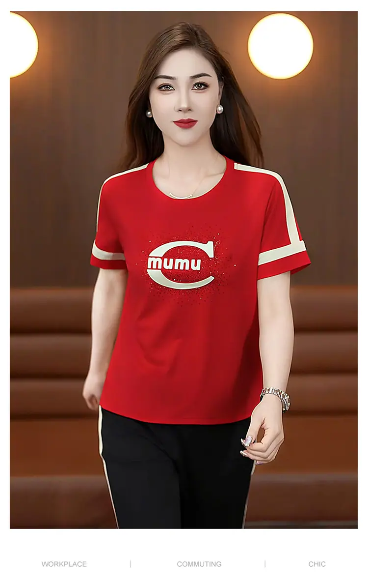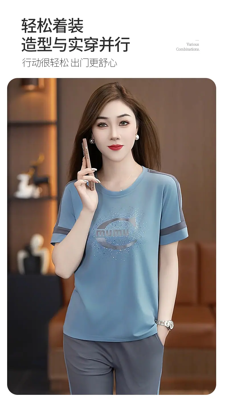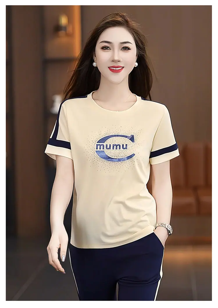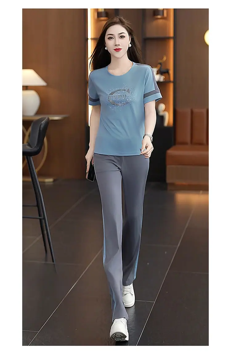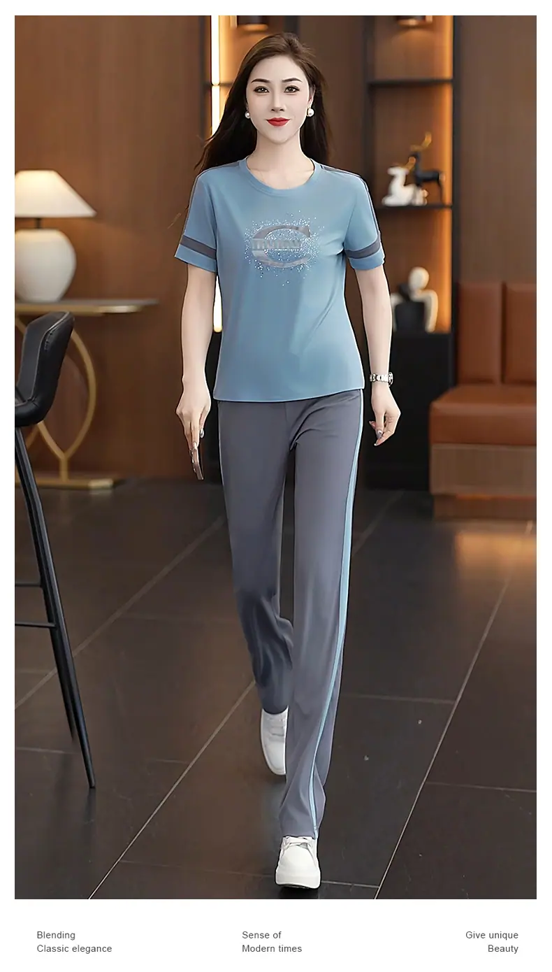 Traje Deportivo de Moda para Mujer Verano 2025 Nuevo Talla Grande Holgado Adelgazante Manga Corta Traje para Correr Casual Conjunto de Dos Piezas a la Moda