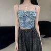 Camisola Pequeña Chic Estilo Francés Tie-Dye para Mujer Otoño Ropa Interior Exterior Diseño Estilo Dulce y Sexy Top Corto sin Mangas