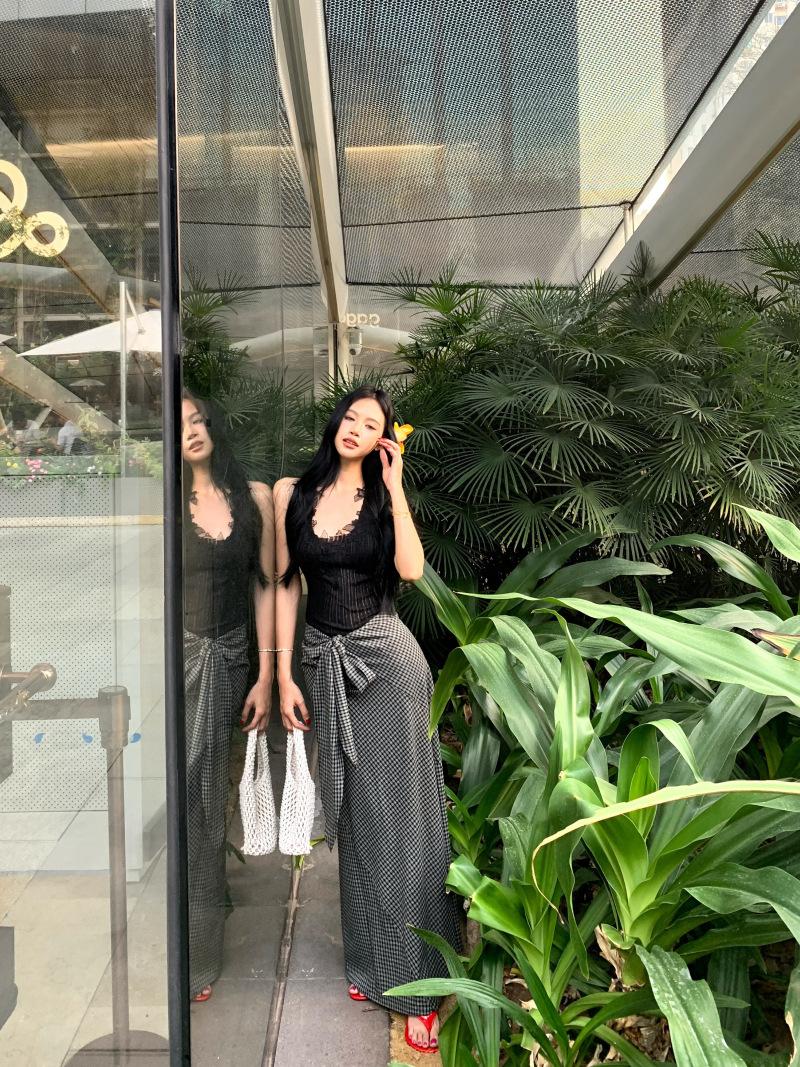 Falda midi: Largo de la falda 104 Circunferencia de cadera 96 Circunferencia de cintura 86 (lazo)