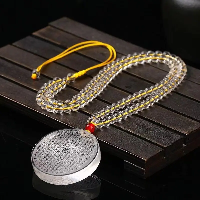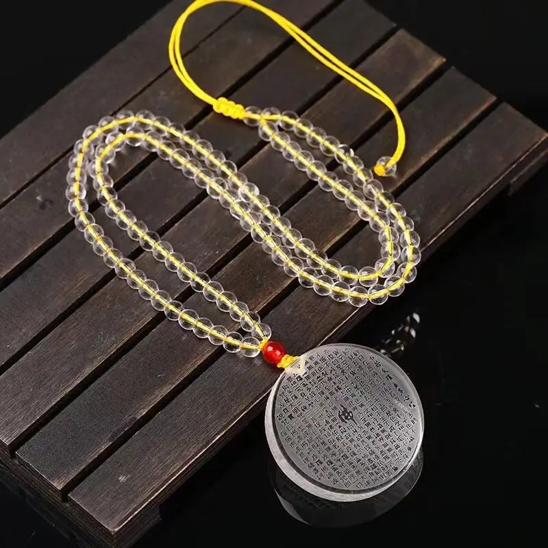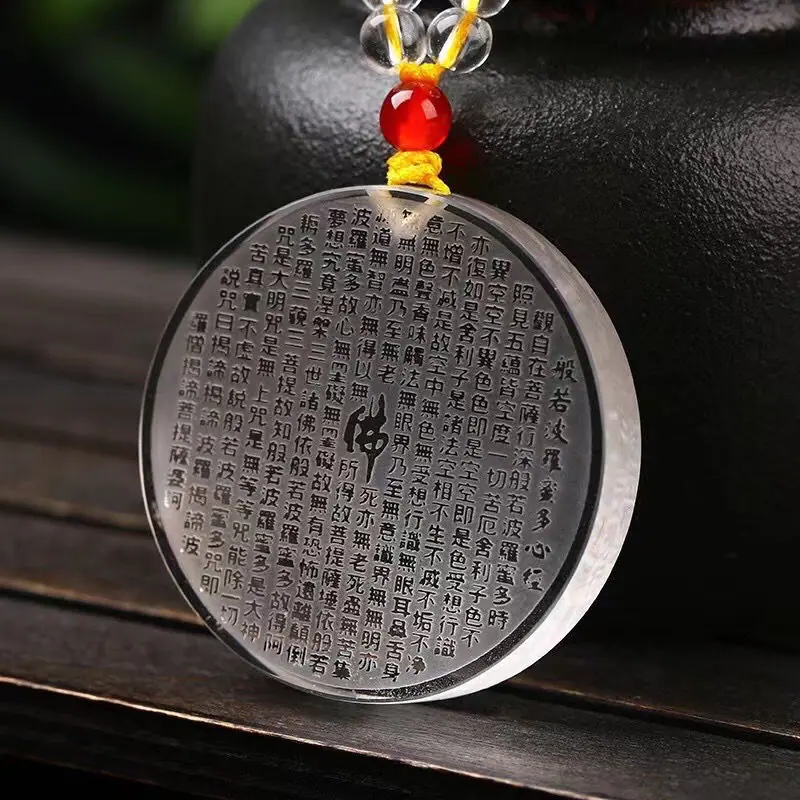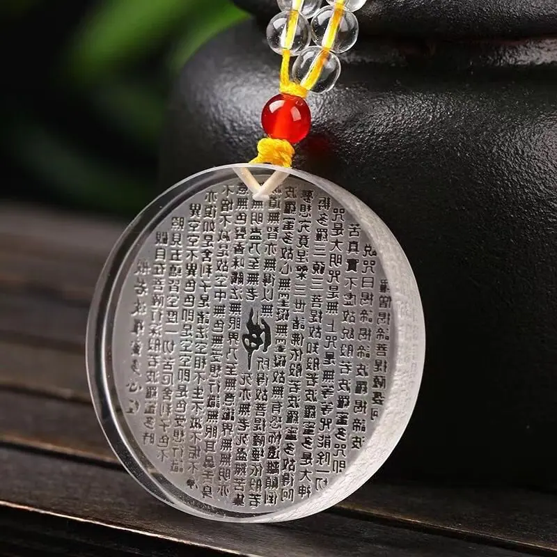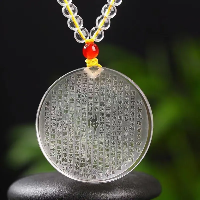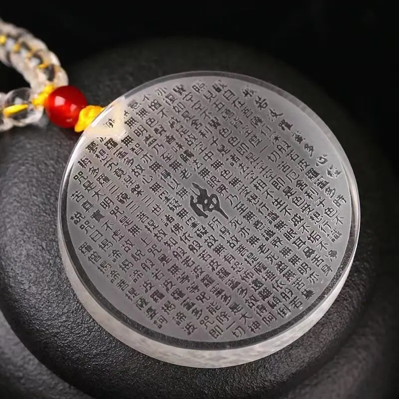 Colgante de Cristal Blanco Sin Preocupaciones Amuleto para Hombre Hebilla de la Paz Sutra Prajna Paramita Colgante Mantra de la Gran Compasión Benmingnian