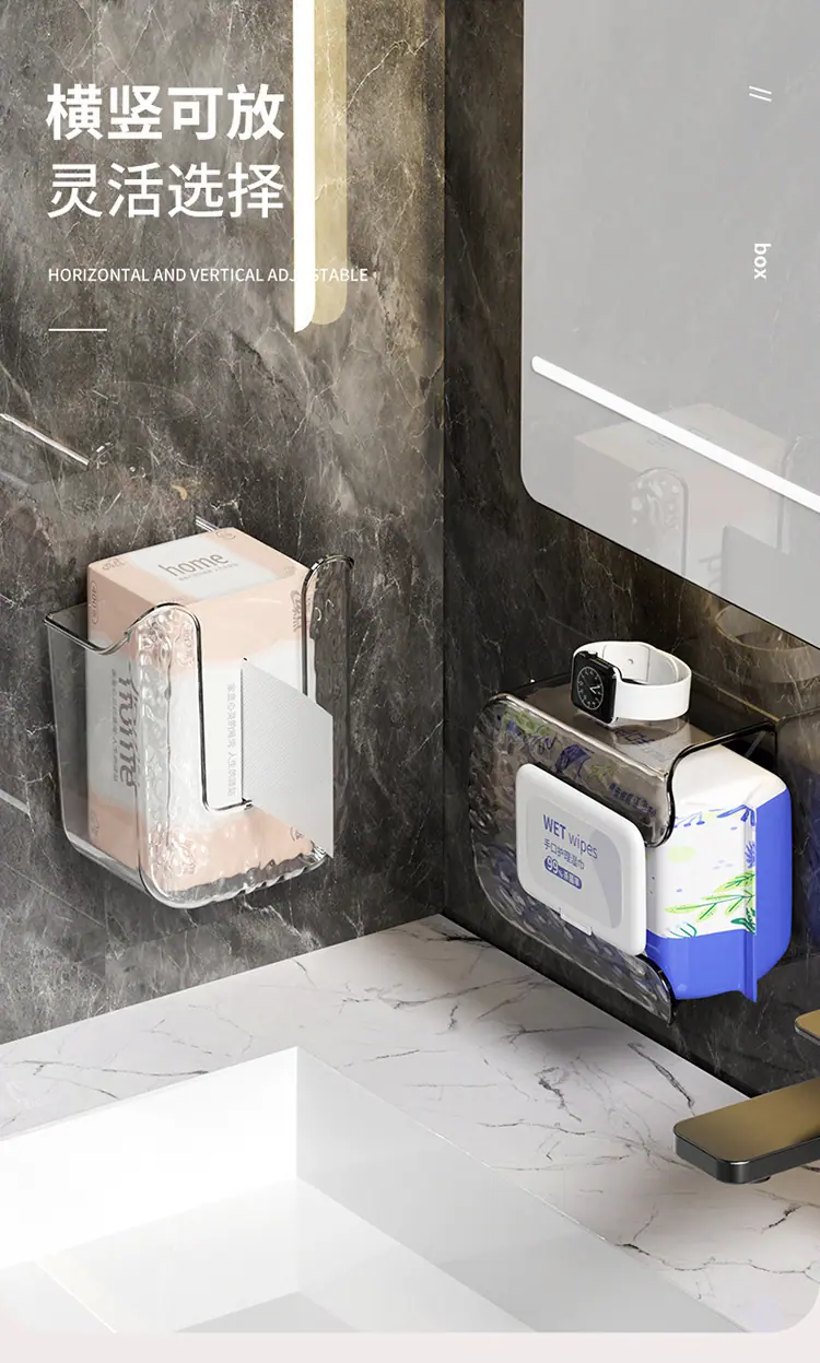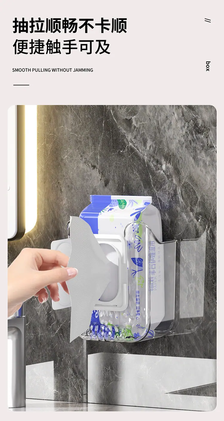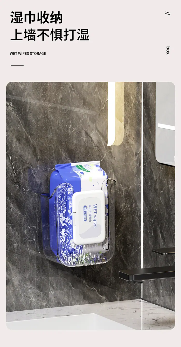 Caja de pañuelos húmedos para pared, sin perforaciones, para guardar toallas faciales, papel higiénico, baño y cocina