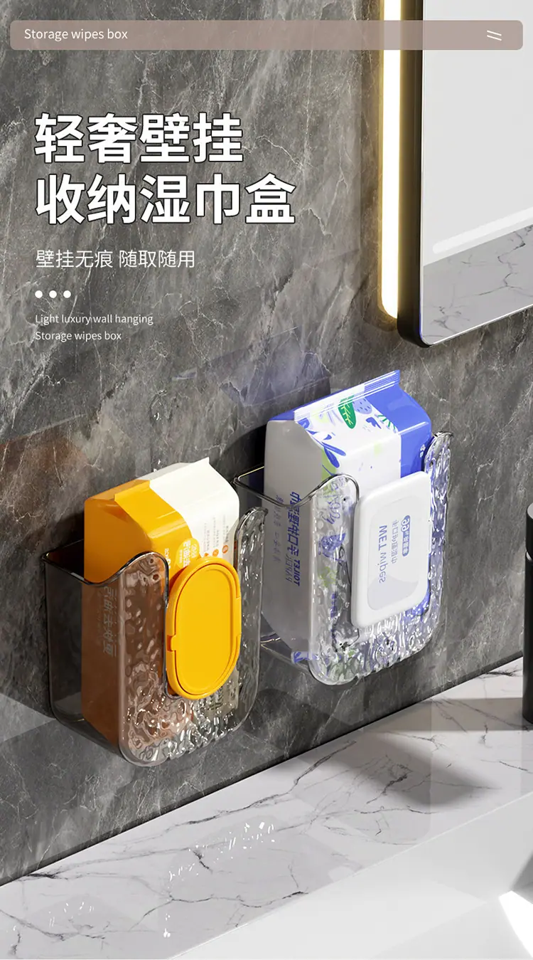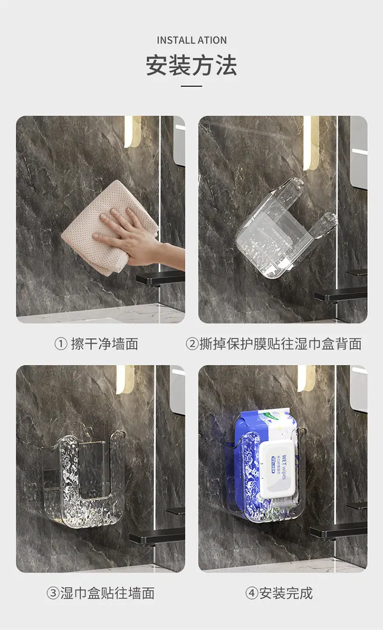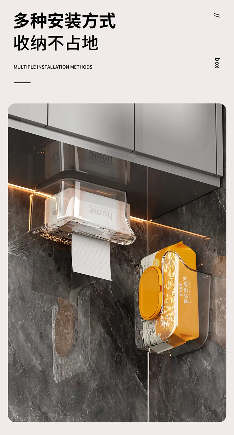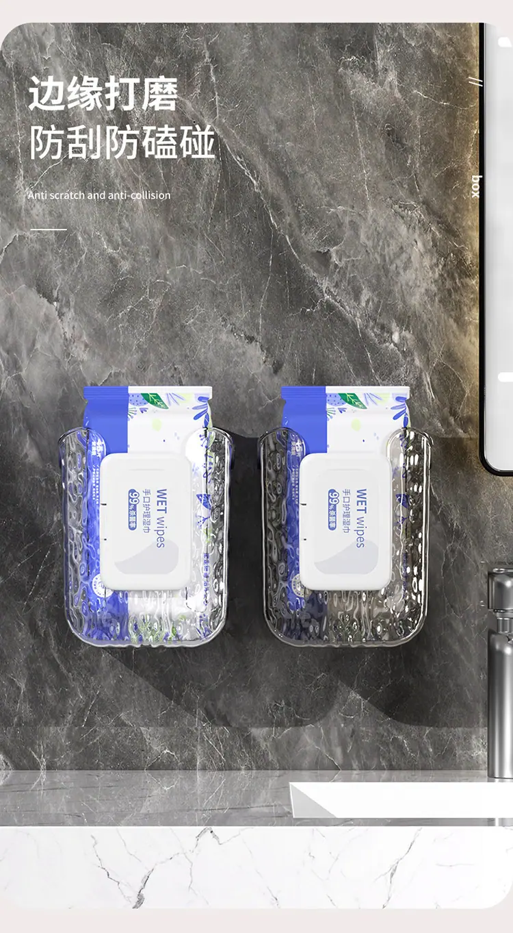 Caja de pañuelos húmedos para pared, sin perforaciones, para guardar toallas faciales, papel higiénico, baño y cocina