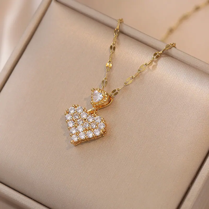 Collar Mujer Celebridad de Internet Moda Corazón Zircón Nicho Nuevo Diseño Colgante Temperamento Acero Titanio Cadena Clavícula Cobre No