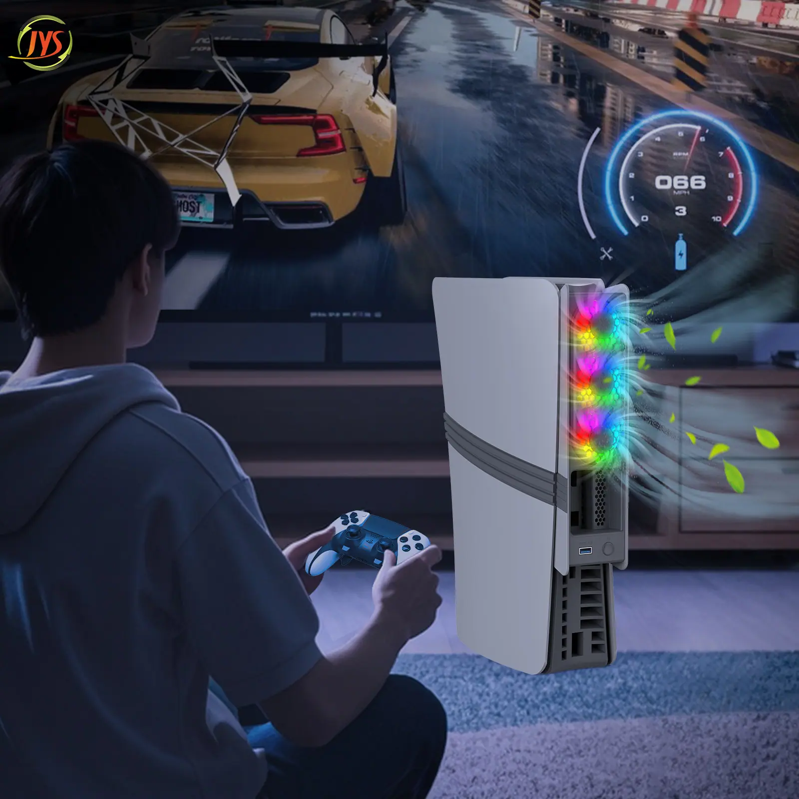 2. La luz ambiental del ventilador tiene una función de memoria, y el ajuste predeterminado de fábrica es el modo de gradiente colorido.