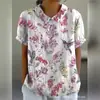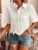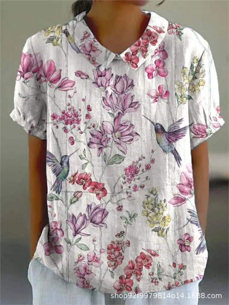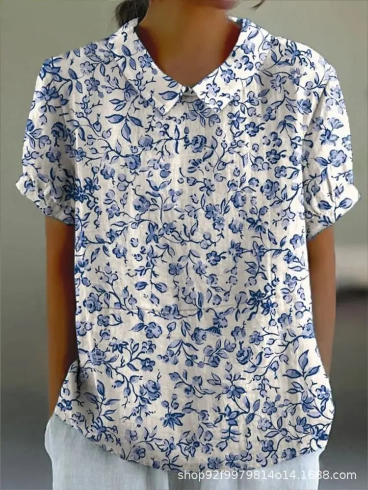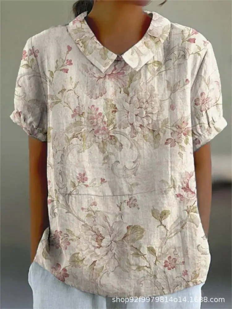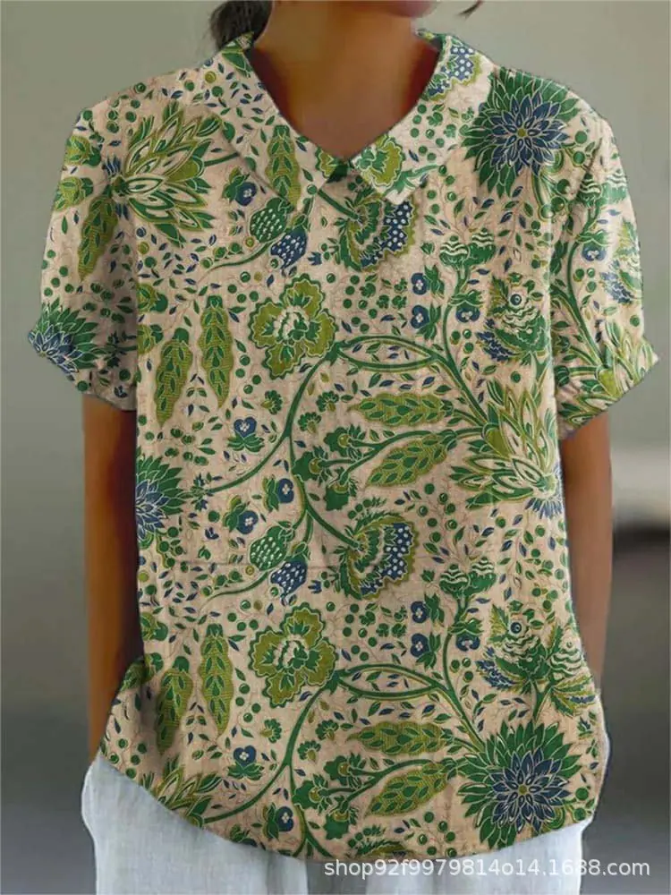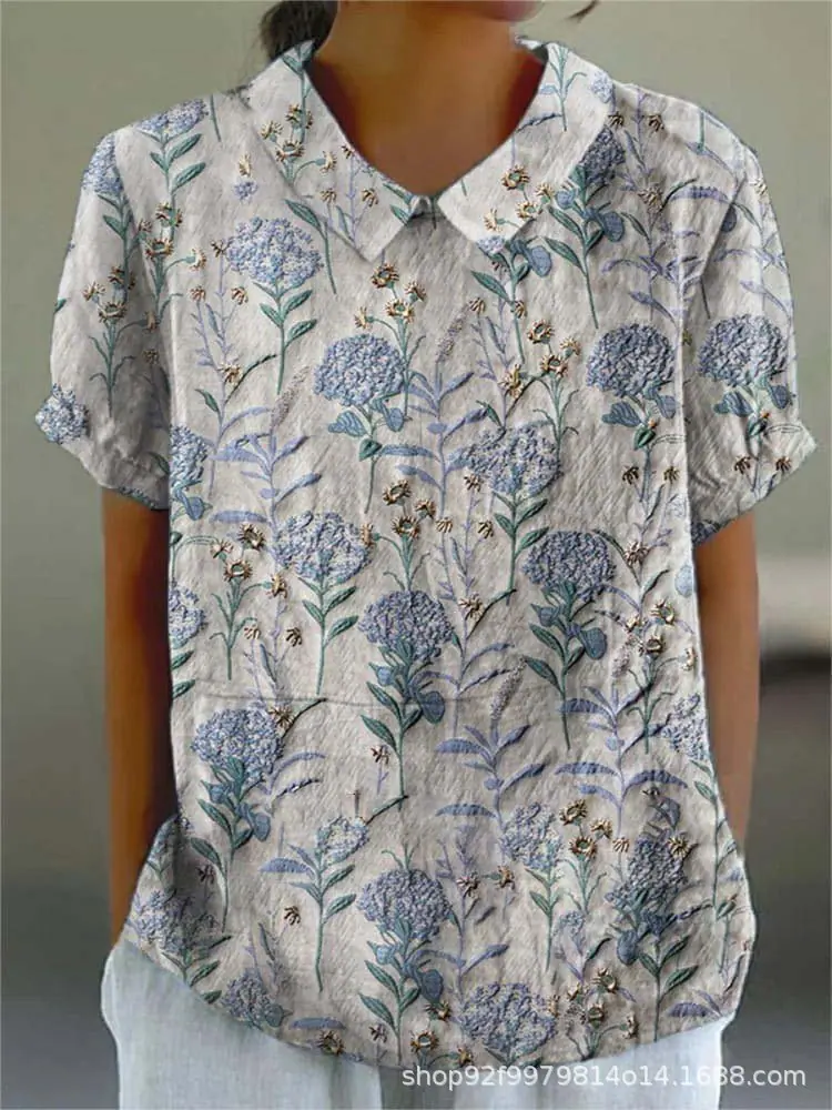 2024 Nuevo Estilo Transfronterizo 3D Floral Planta Sombreado Verano Solapa Manga Corta Elegantes Tops Europeos y Americanos para Mujer