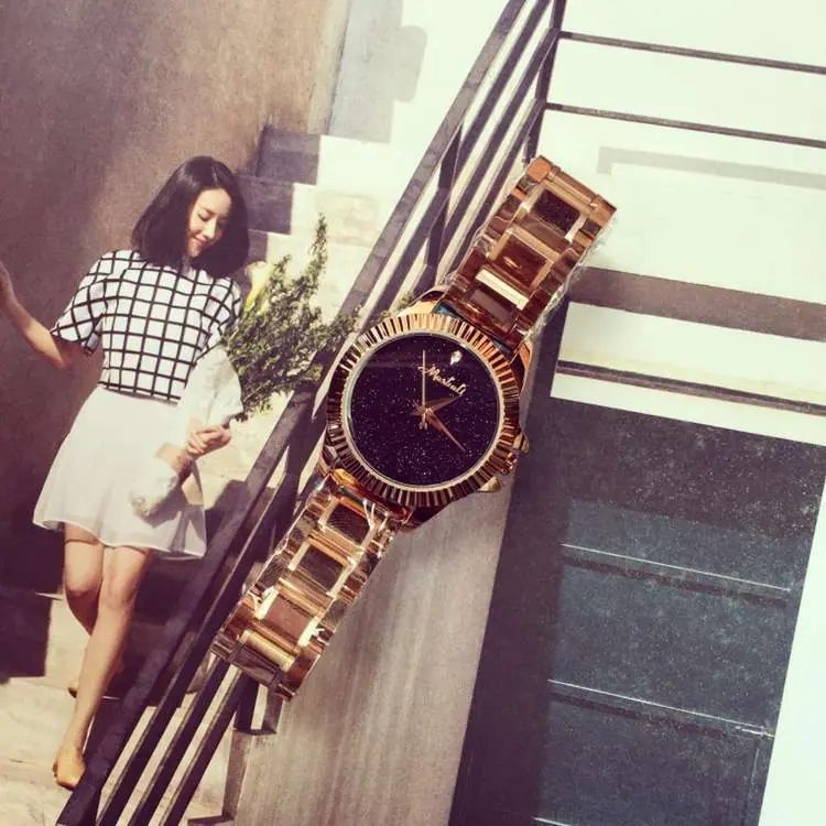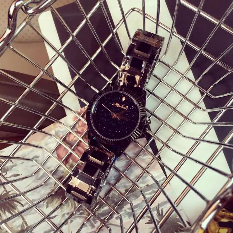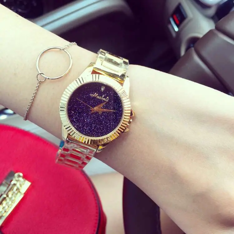 Calidad de contador, caja chapada al vacío IP, brazalete de acero inoxidable, caja grabada con engaste de diamantes, ¡estilo!