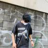 San Miguel Negro Carbón Estampado Dividido Oveja León Suelta Casual Manga Corta Camiseta Tee Moda para Hombre y Mujer