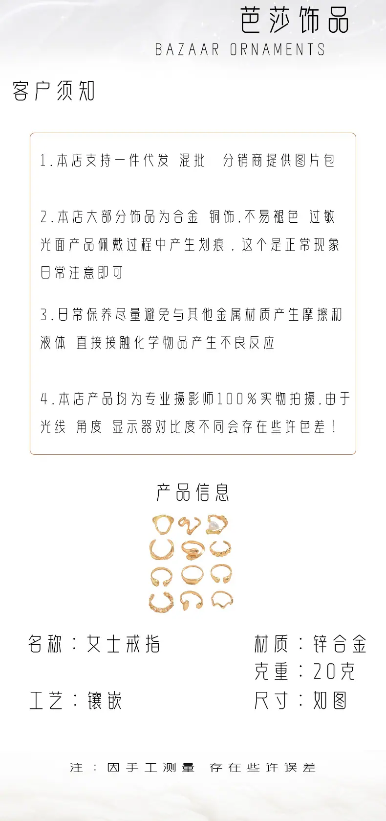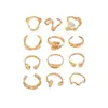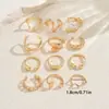 Juego de Anillos para Mujer Transfronterizo Europeo y Americano Geométrico Irregular Abierto con Incrustaciones Diseño de Perla en Forma de Corazón Anillo Joyería de Mano de Alta Gama