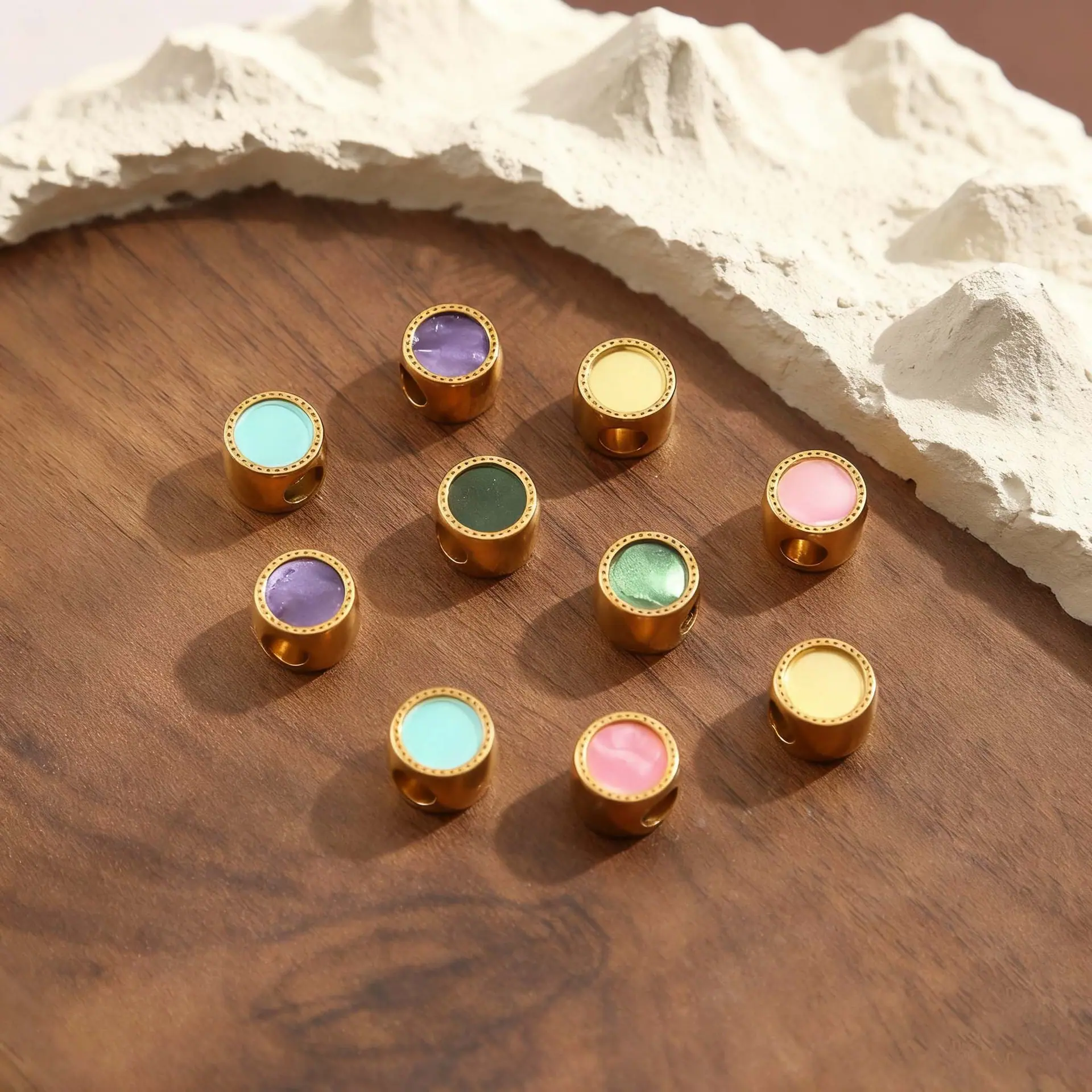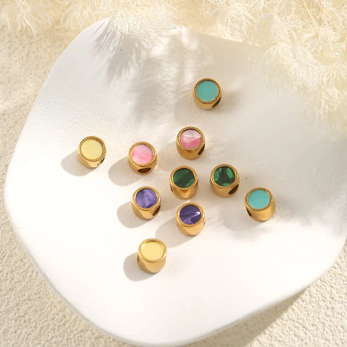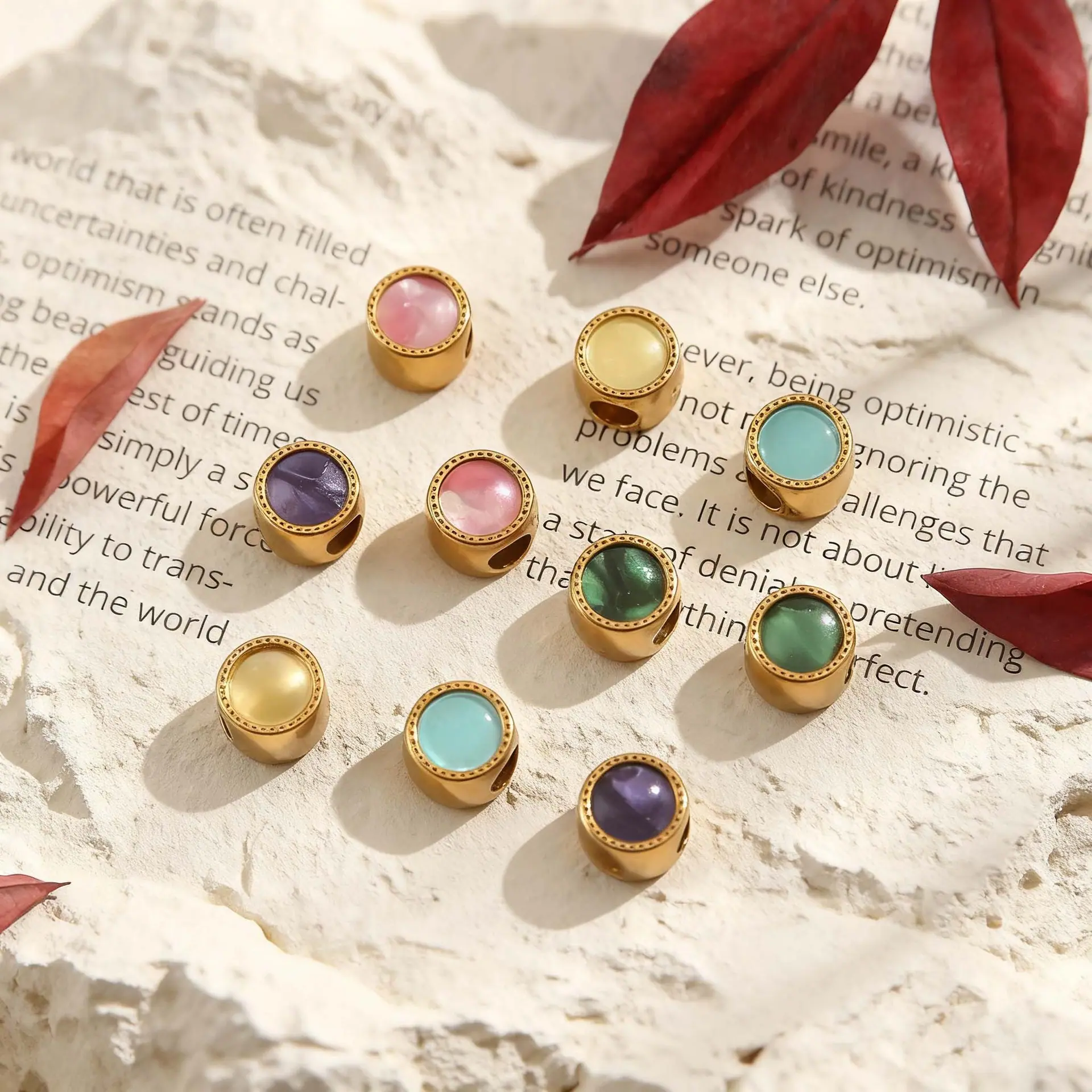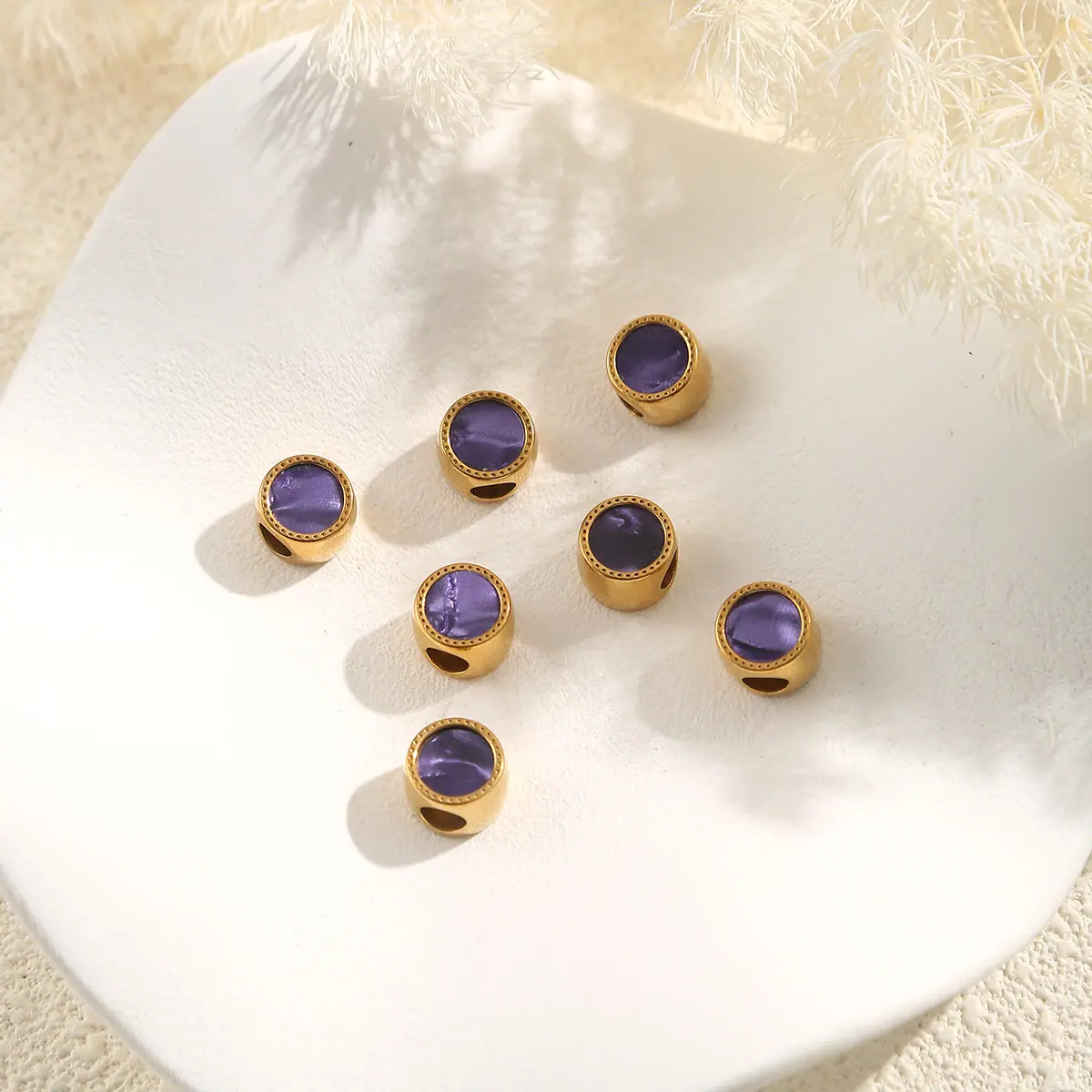 Stainless Steel Gold Round Acrylic Beads-Pink, Stainless Steel Gold Round Acrylic Beads-Purple, Stainless Stee...