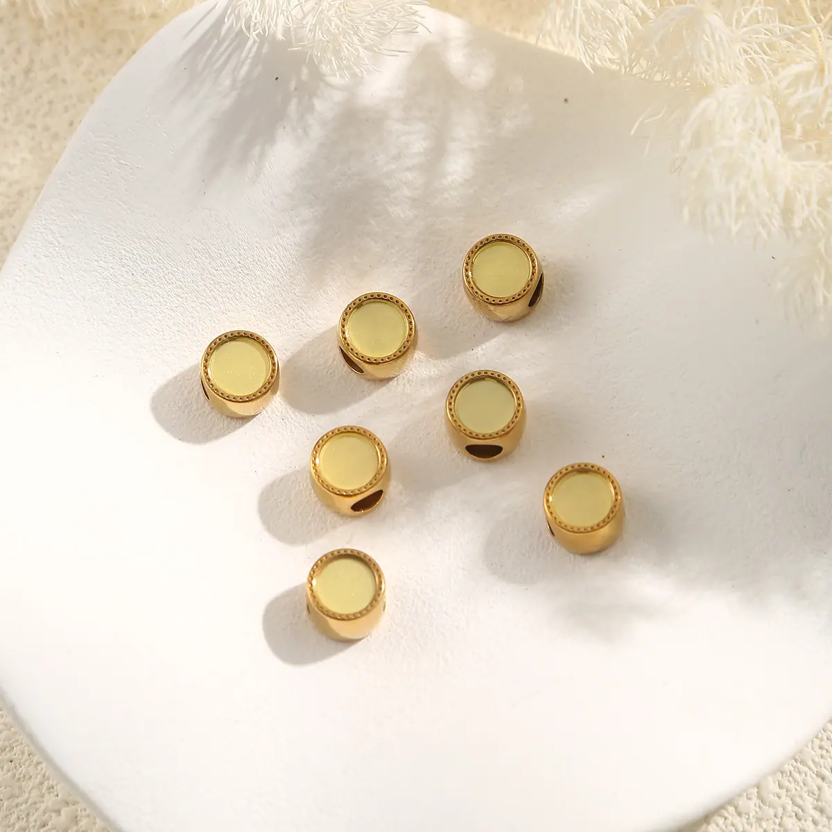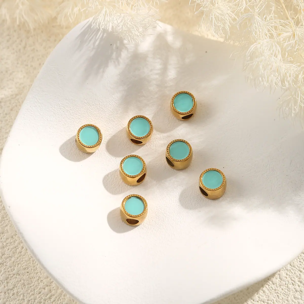 Stainless Steel Gold Round Acrylic Beads - Blue-Green