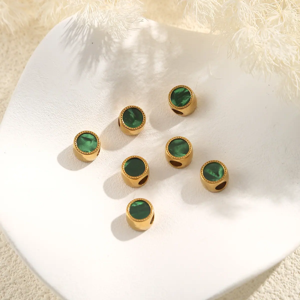 Stainless Steel Gold Round Acrylic Beads - Dark Green