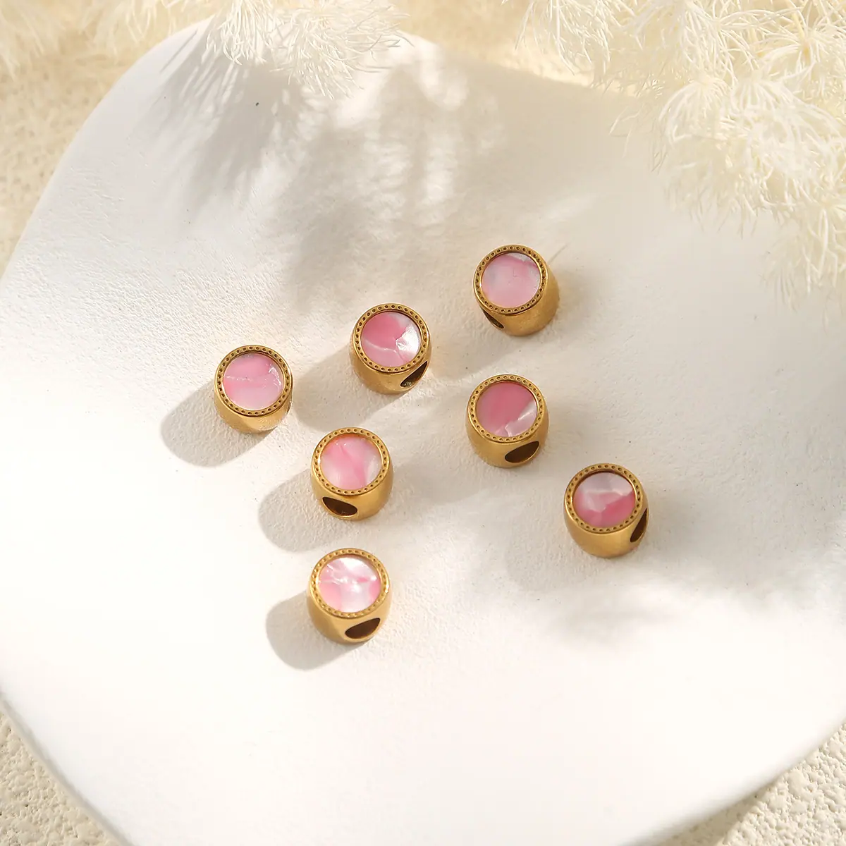 Stainless Steel Gold Round Acrylic Beads-Pink