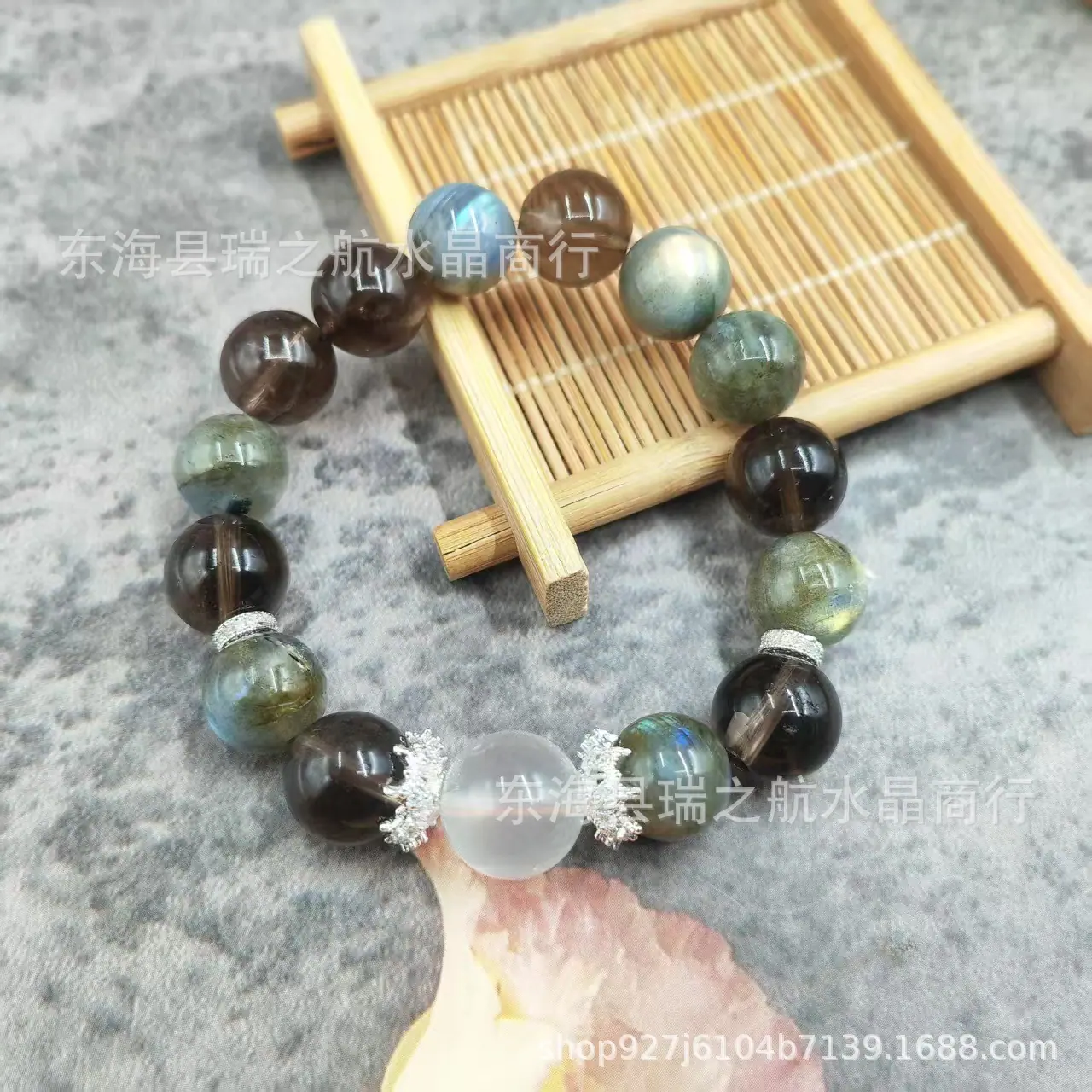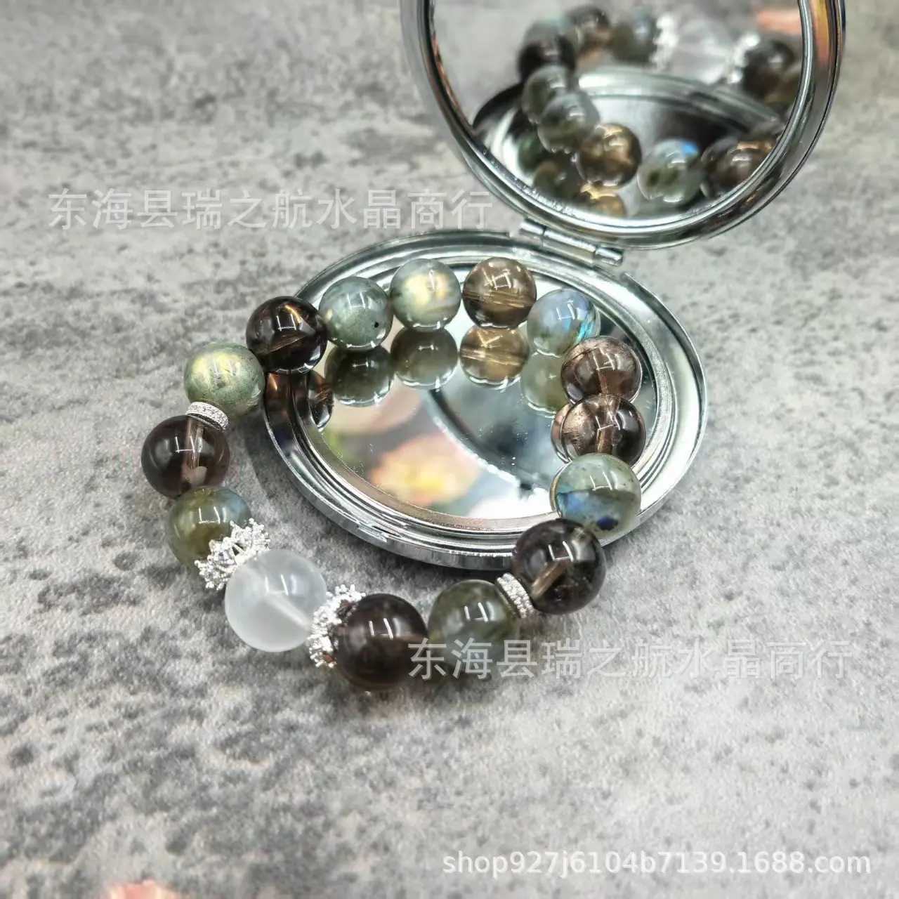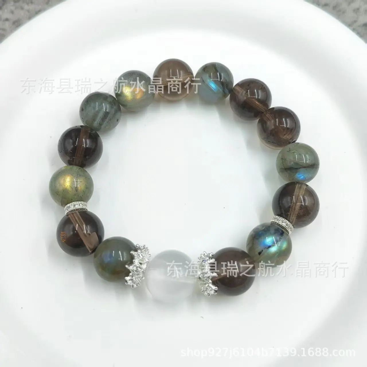Pulsera de Cristal de Té Labradorita Natural con Cristal Blanco Leche, Pulsera de Cristal Natural Versátil y a la Moda, Joyería Popular