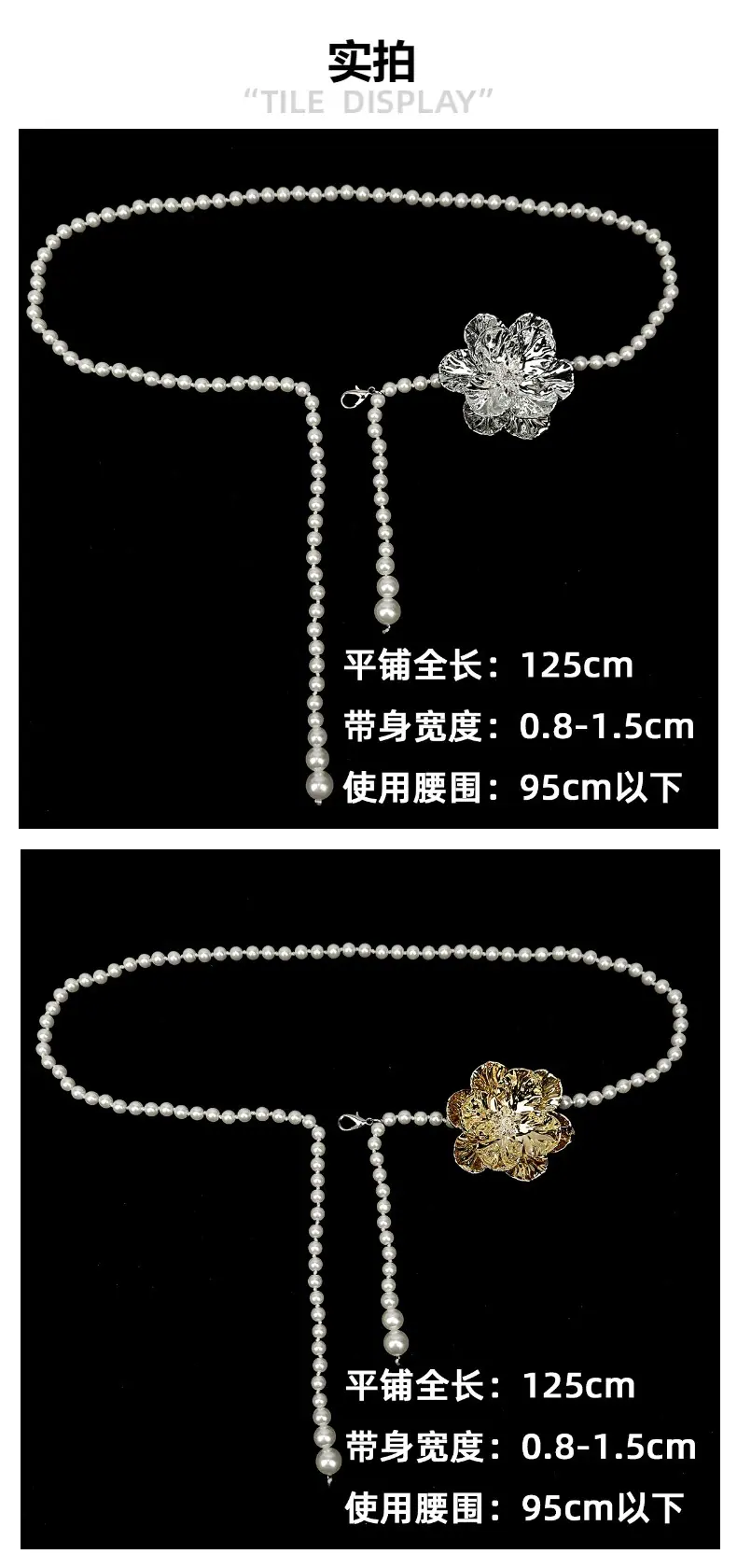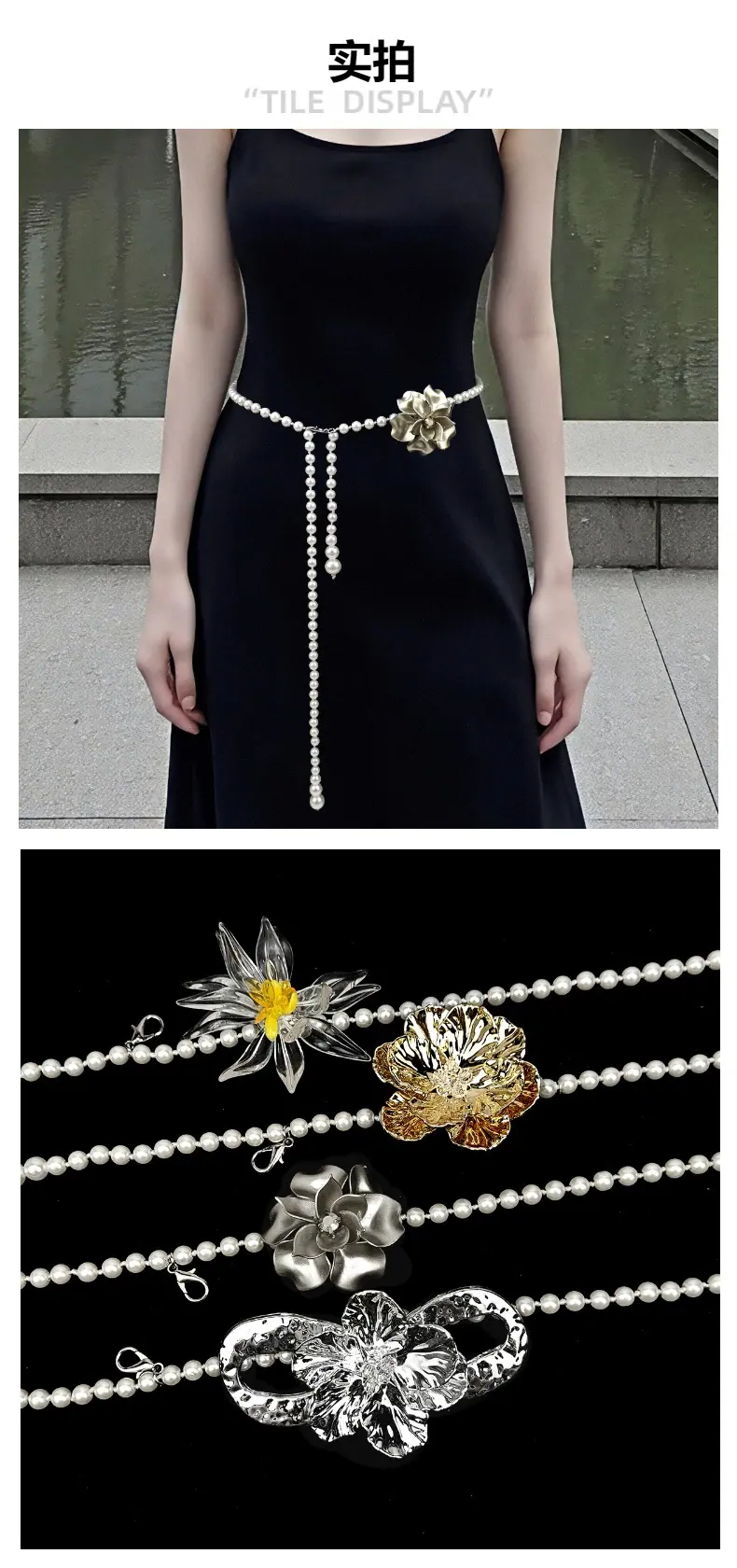 Cadena de Cintura de Perlas Versátil para Mujer, Cinturón para Mujer Estilo Ins, Accesorio de Decoración de Vestido de Moda Francesa