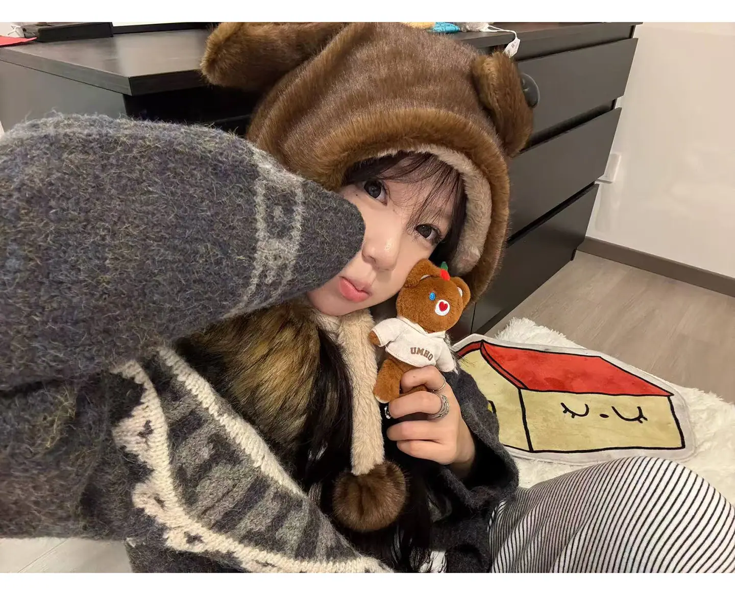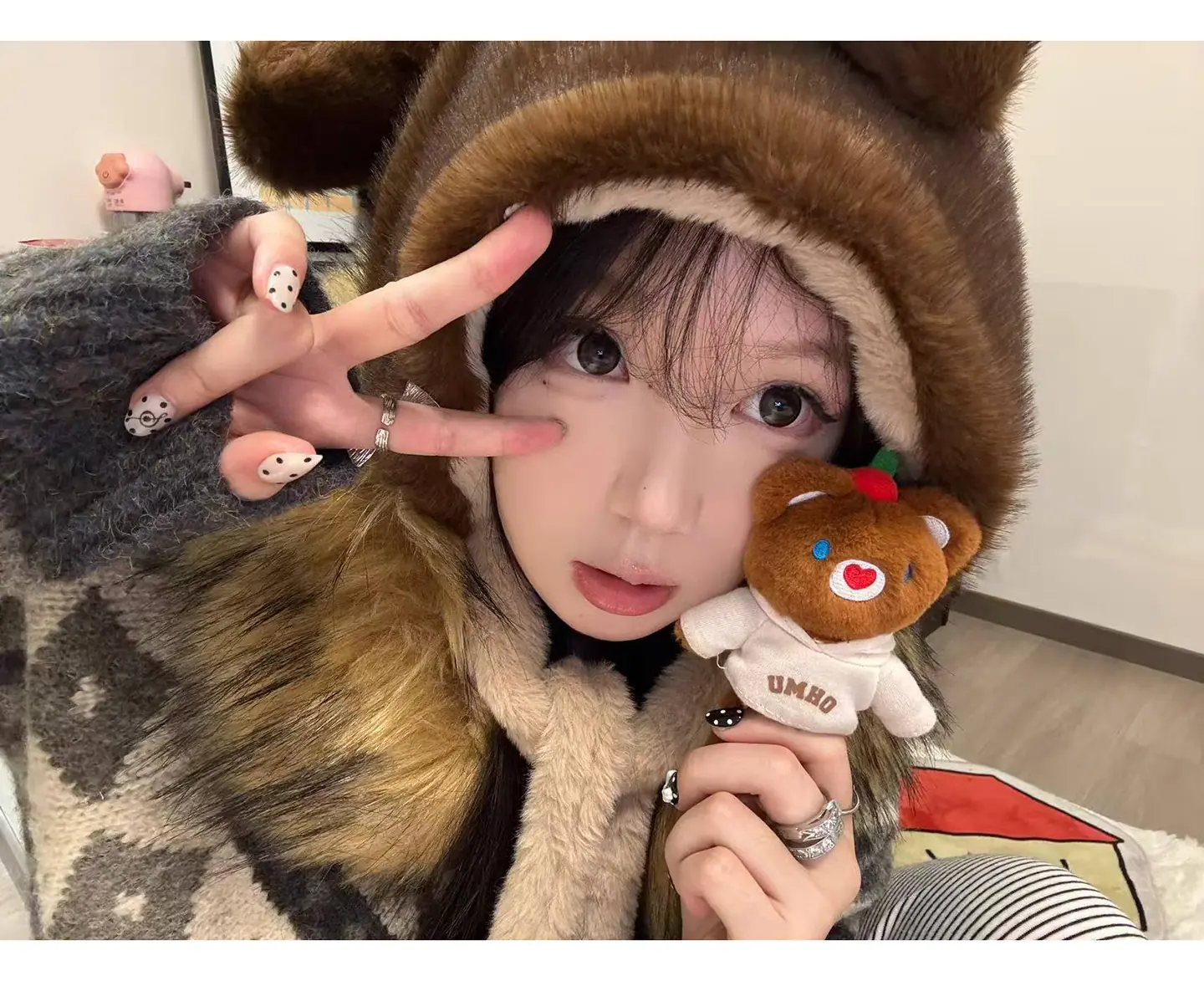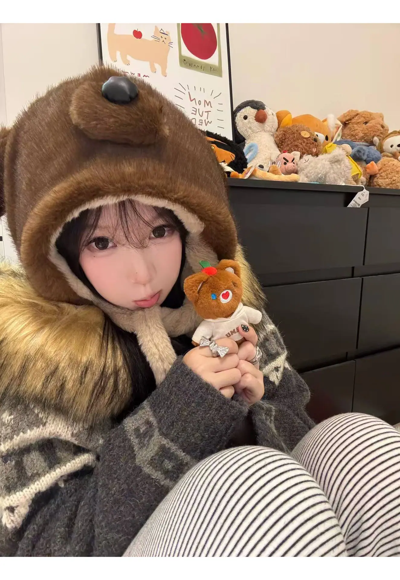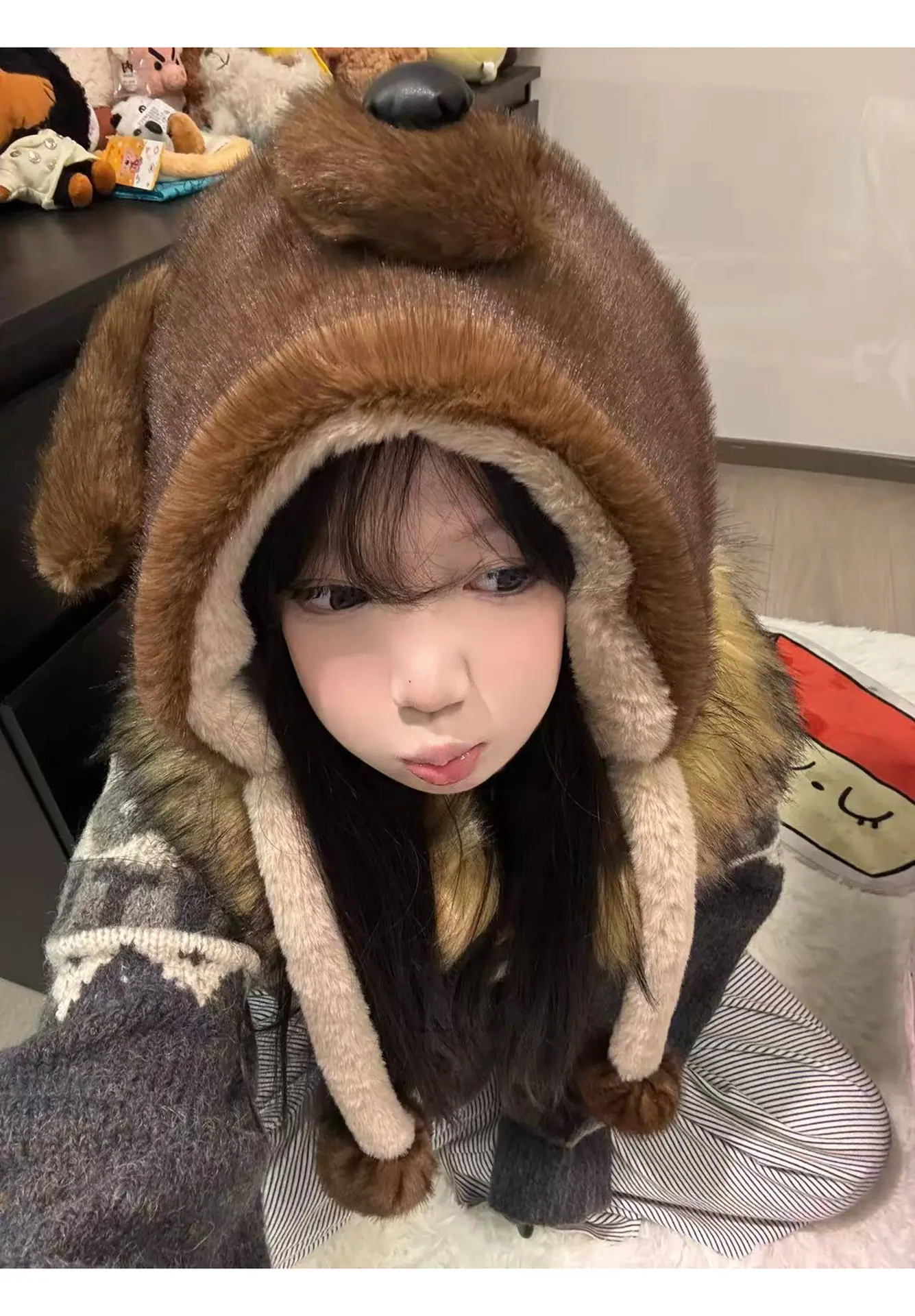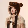 Lindo Sombrero de Felpa de Mapache Marrón de Dibujos Animados para Mujer 2025 Nuevo Otoño e Invierno Cálido a Prueba de Frío Sombrero Lei Feng Orejeras