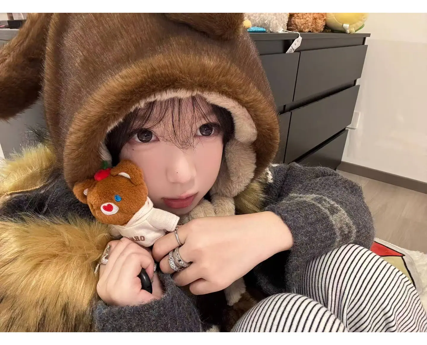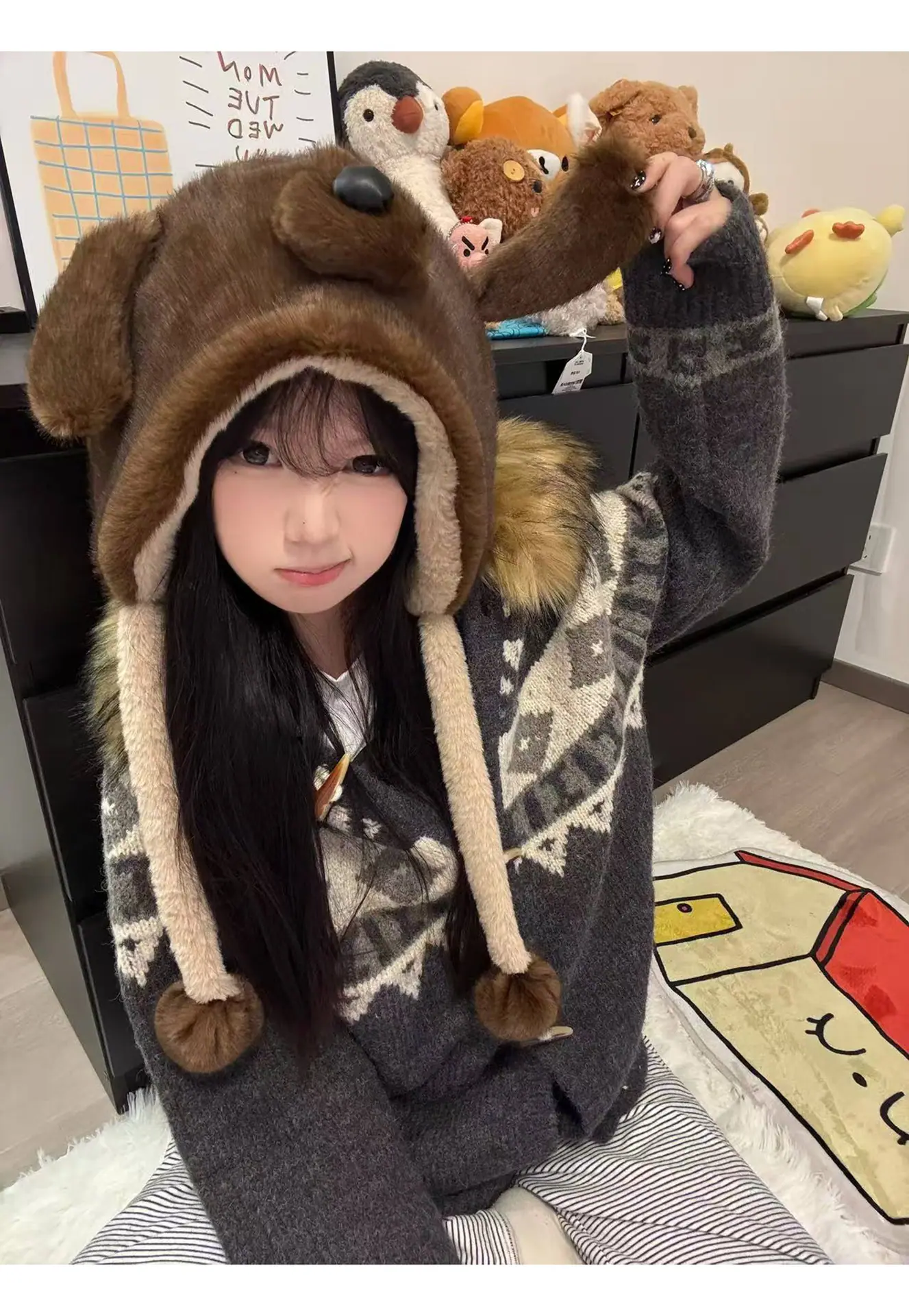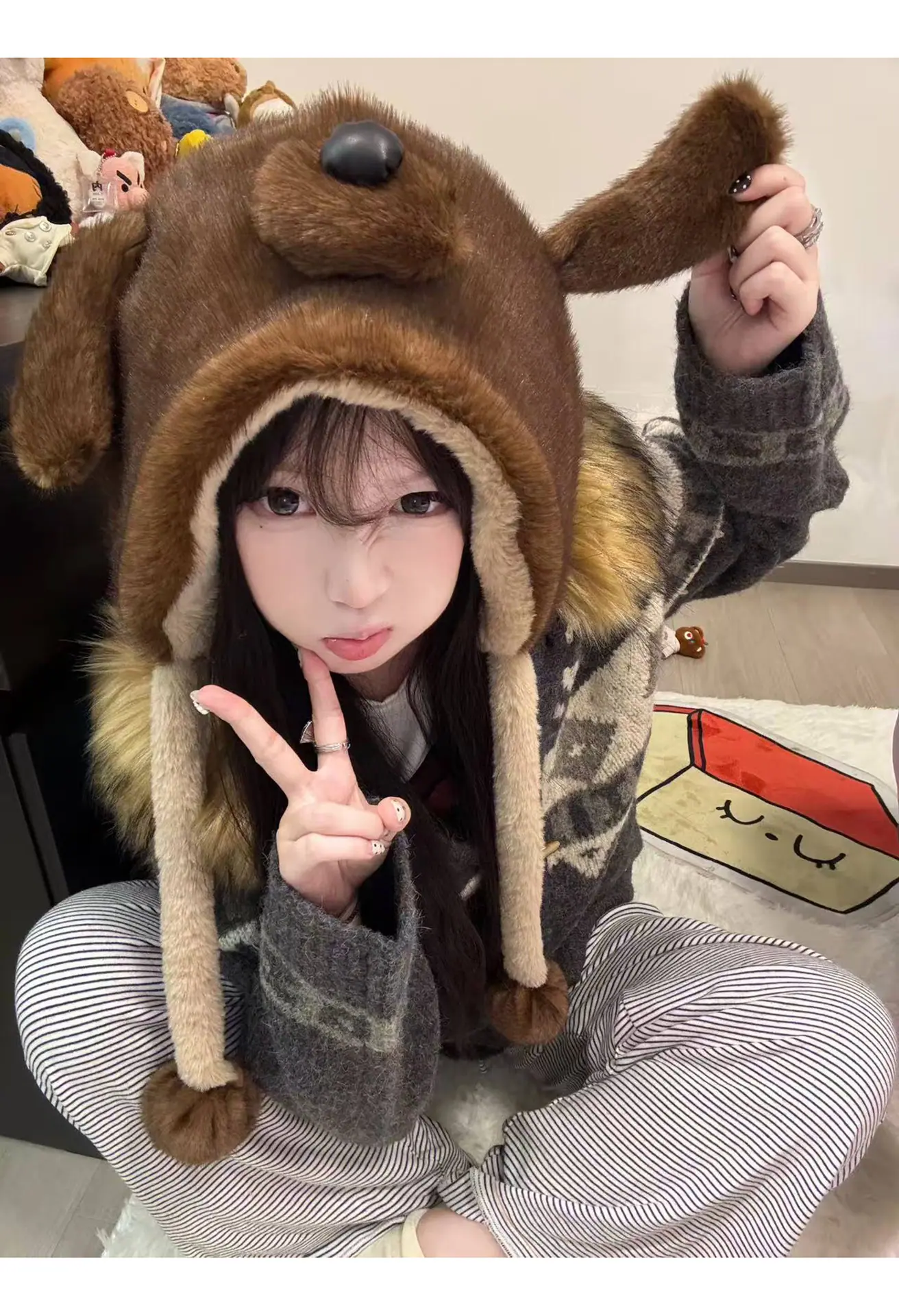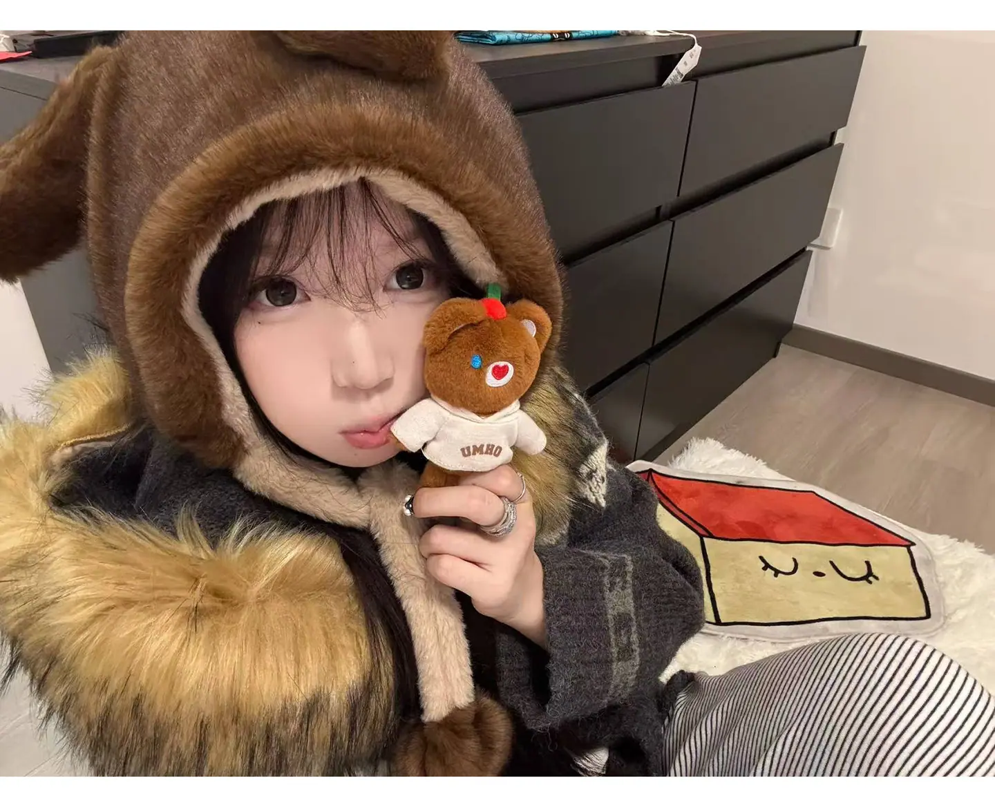 Lindo Sombrero de Felpa de Mapache Marrón de Dibujos Animados para Mujer 2025 Nuevo Otoño e Invierno Cálido a Prueba de Frío Sombrero Lei Feng Orejeras