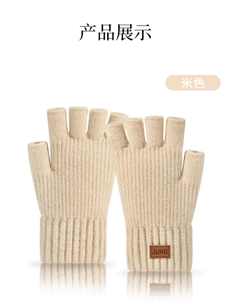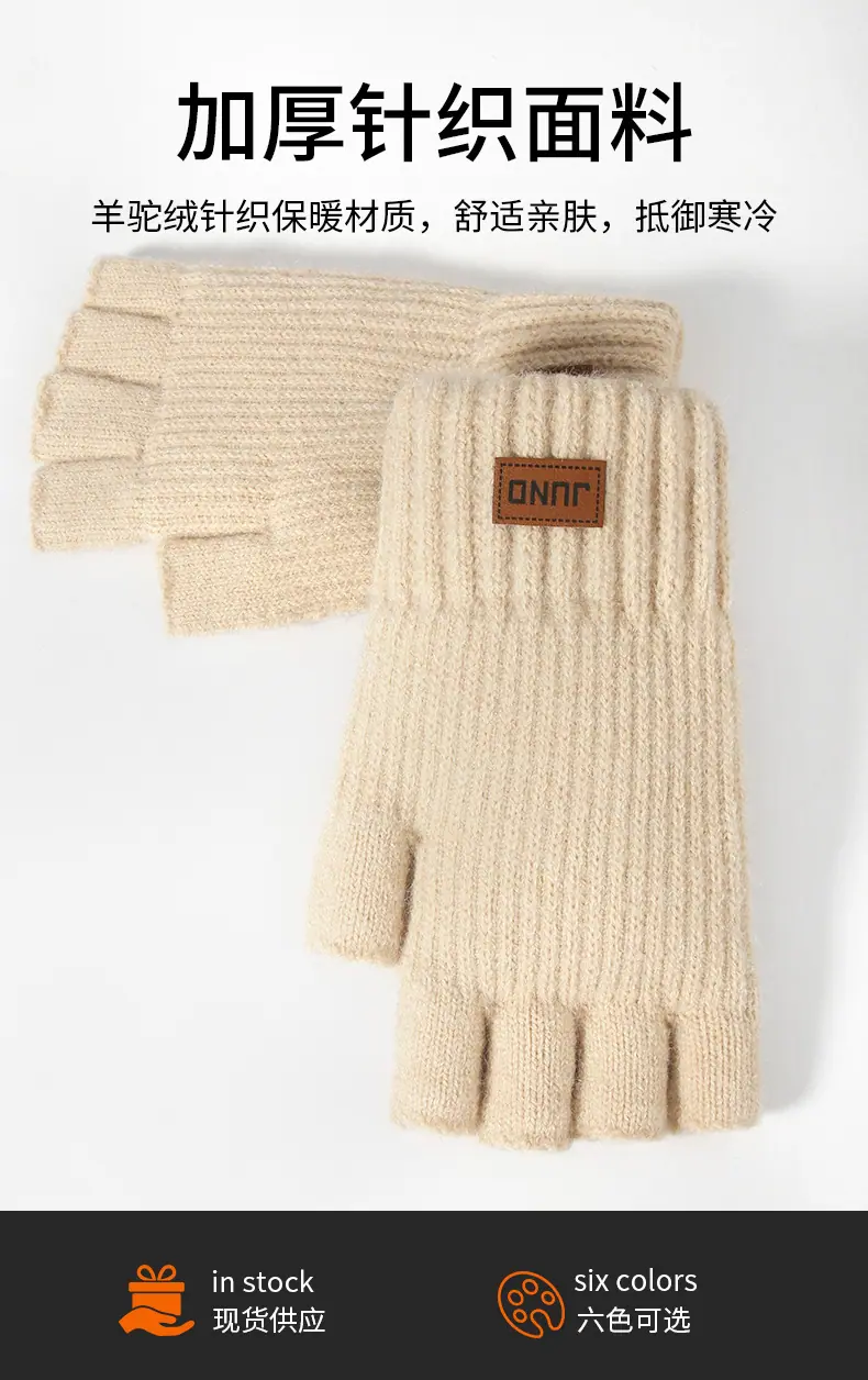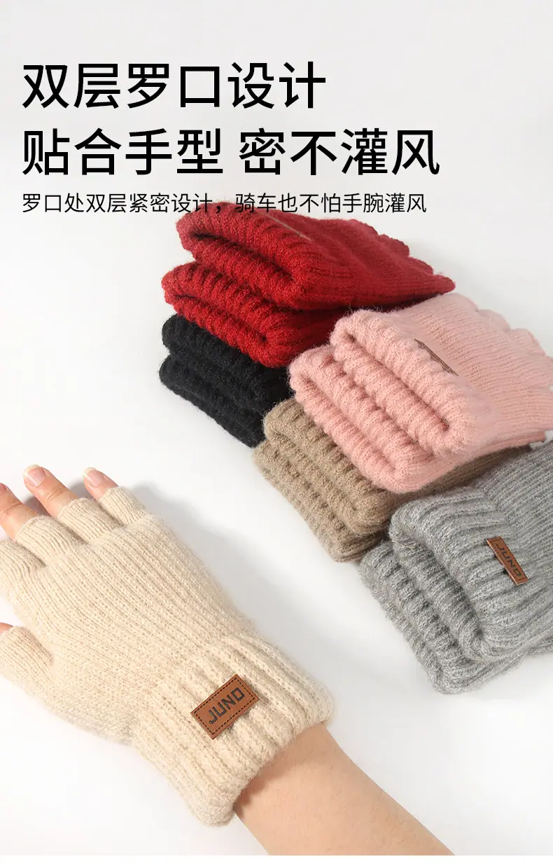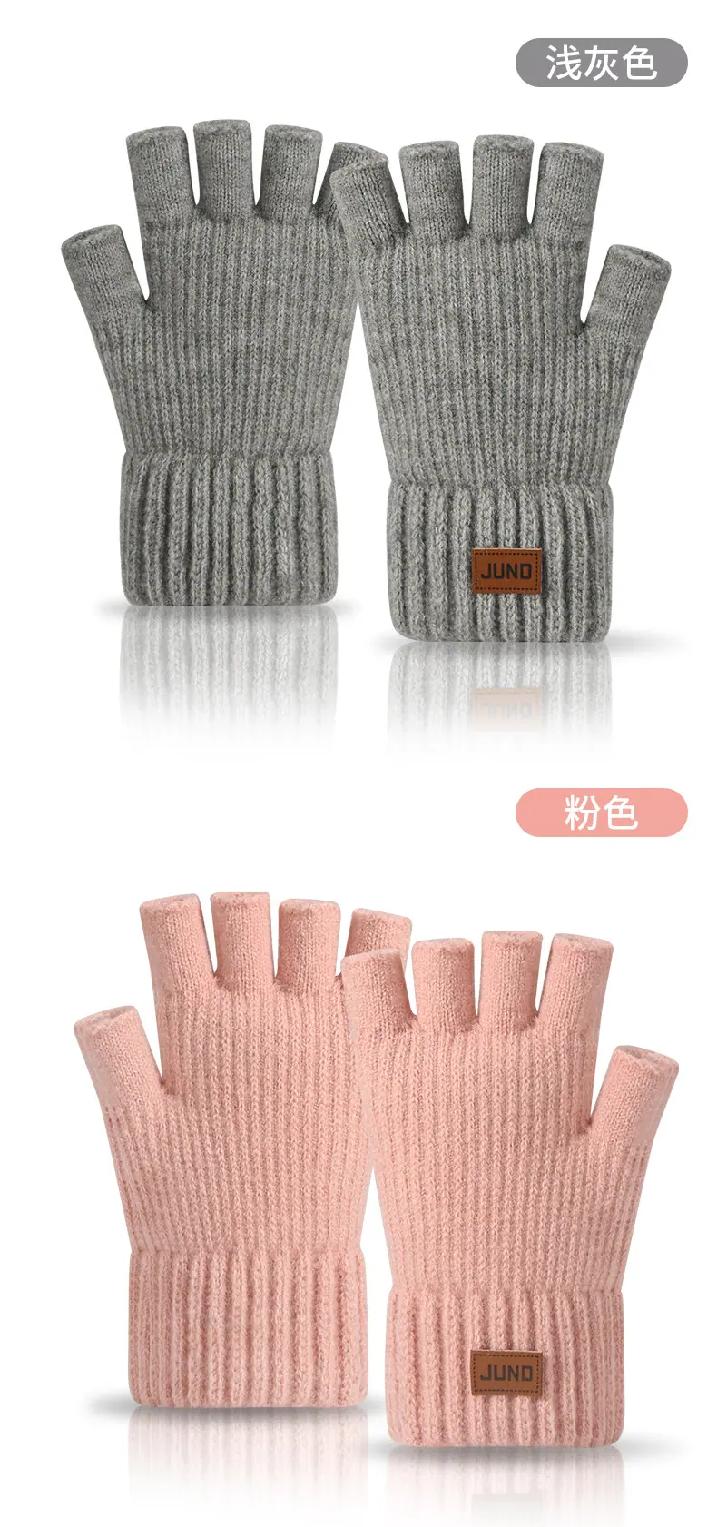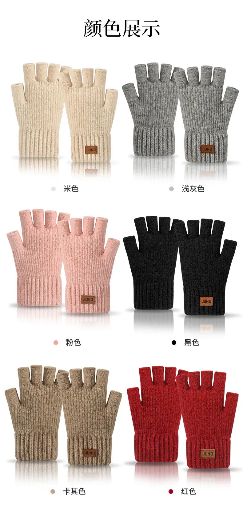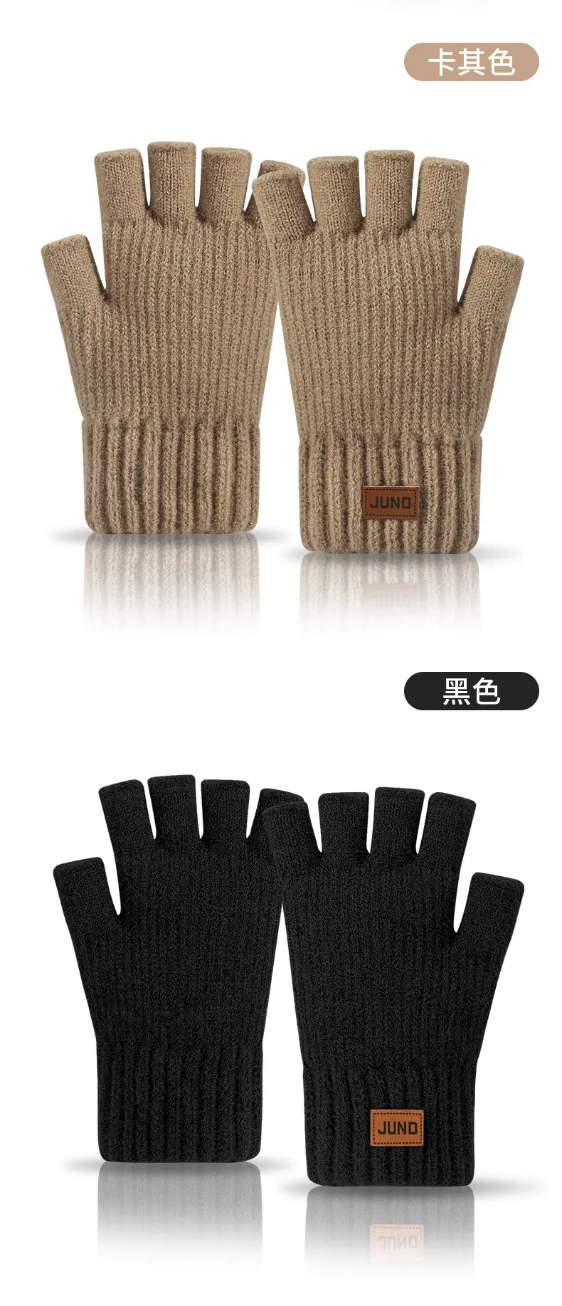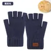 Guantes gruesos sin dedos otoño e invierno más terciopelo tejidos a prueba de frío y cálidos medio dedo para escribir lana doble capa guantes de medio dedo