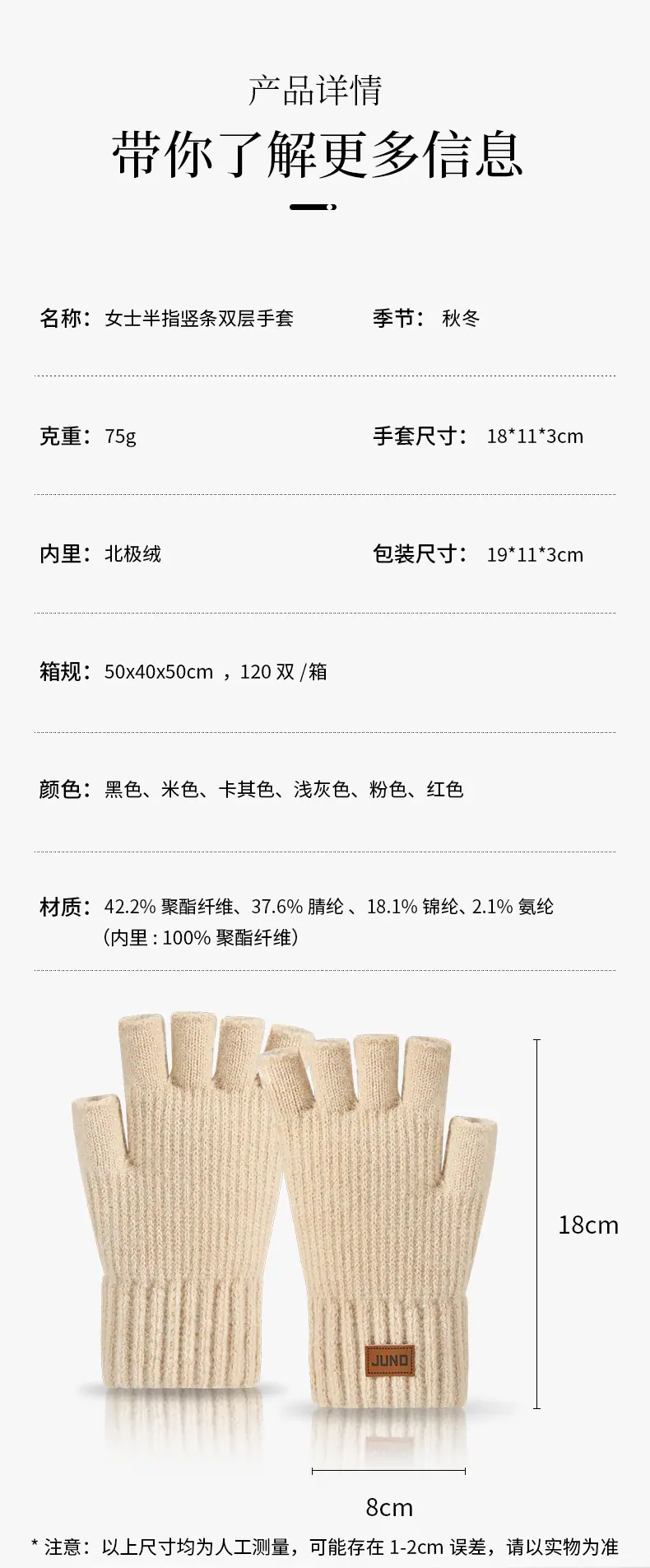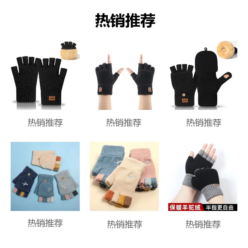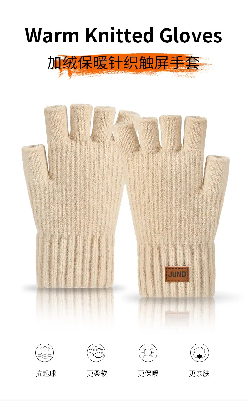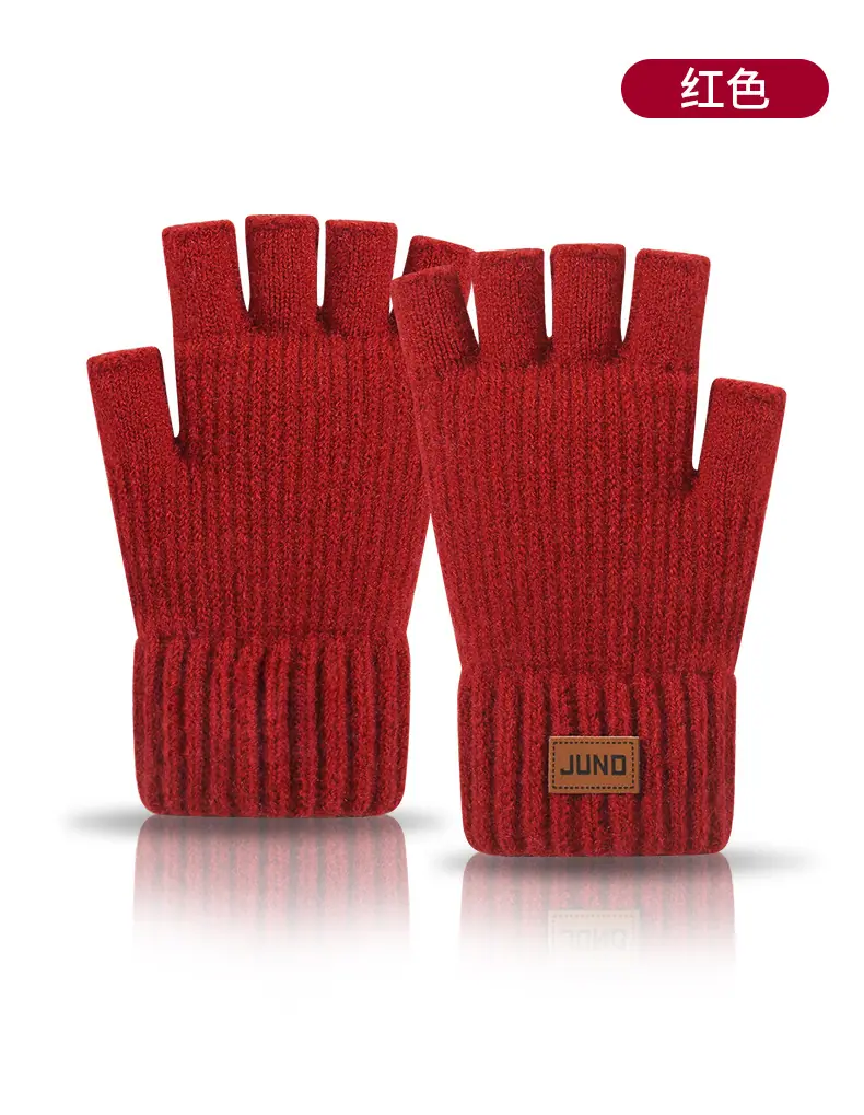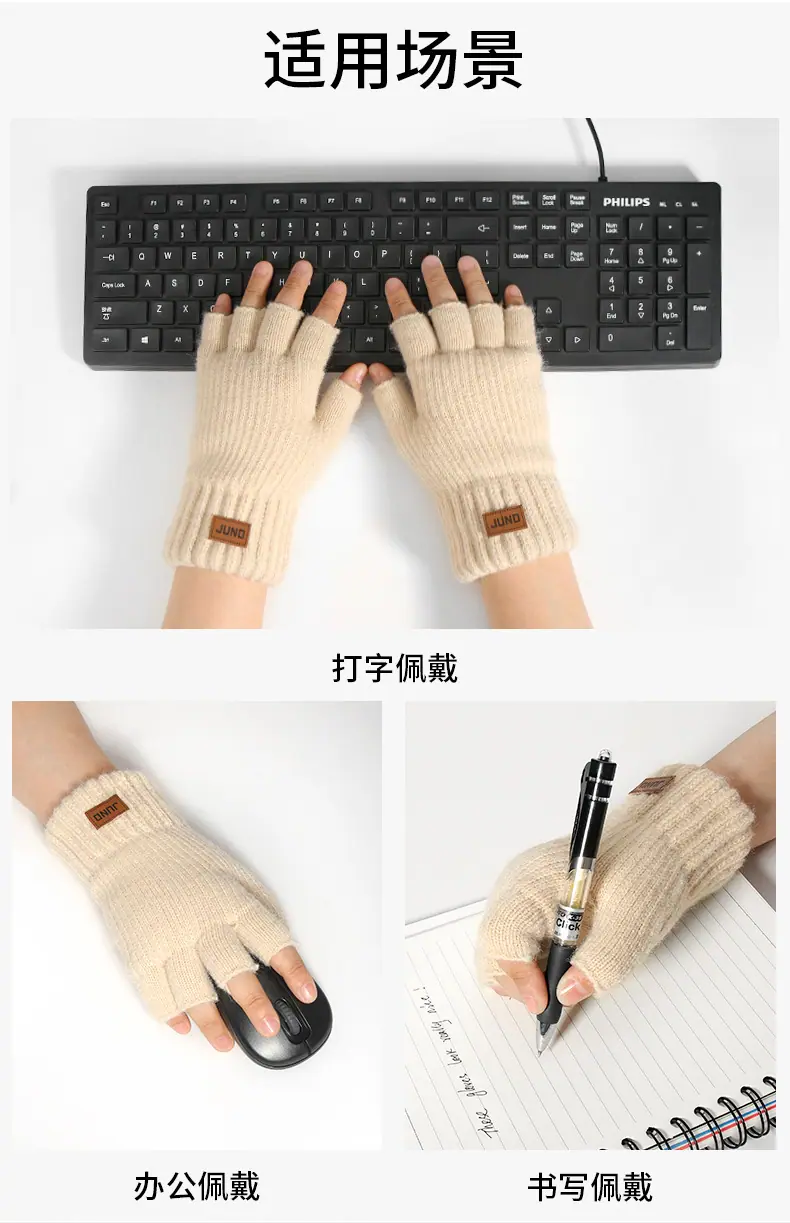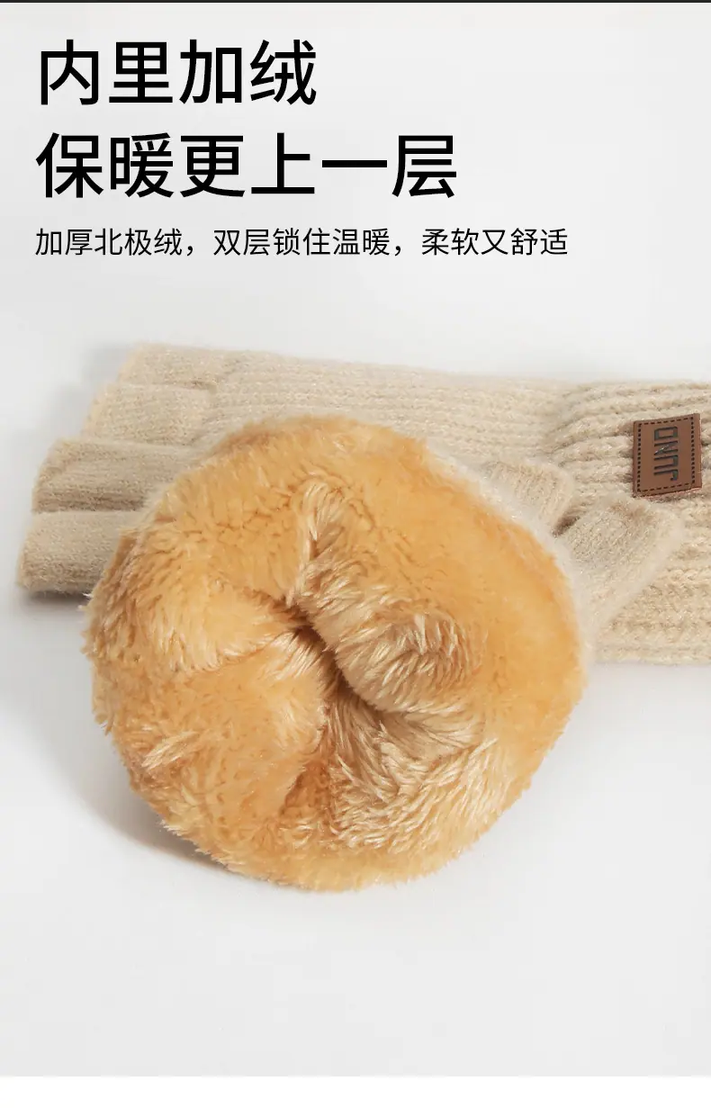 Guantes gruesos sin dedos otoño e invierno más terciopelo tejidos a prueba de frío y cálidos medio dedo para escribir lana doble capa guantes de medio dedo