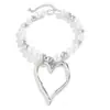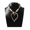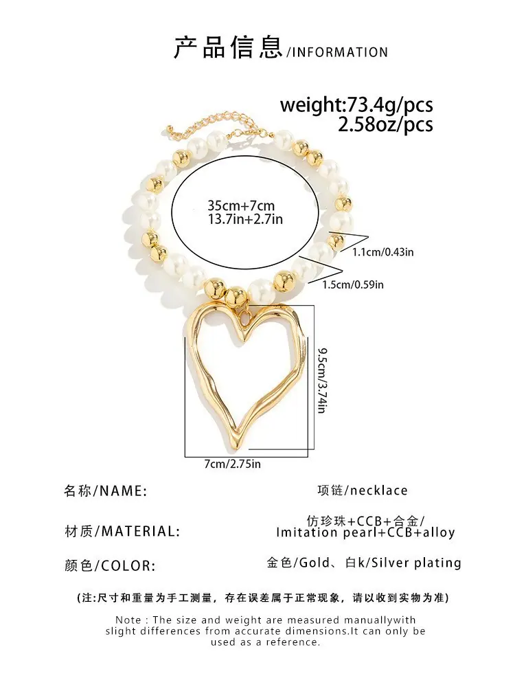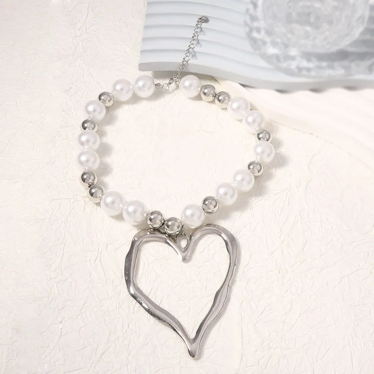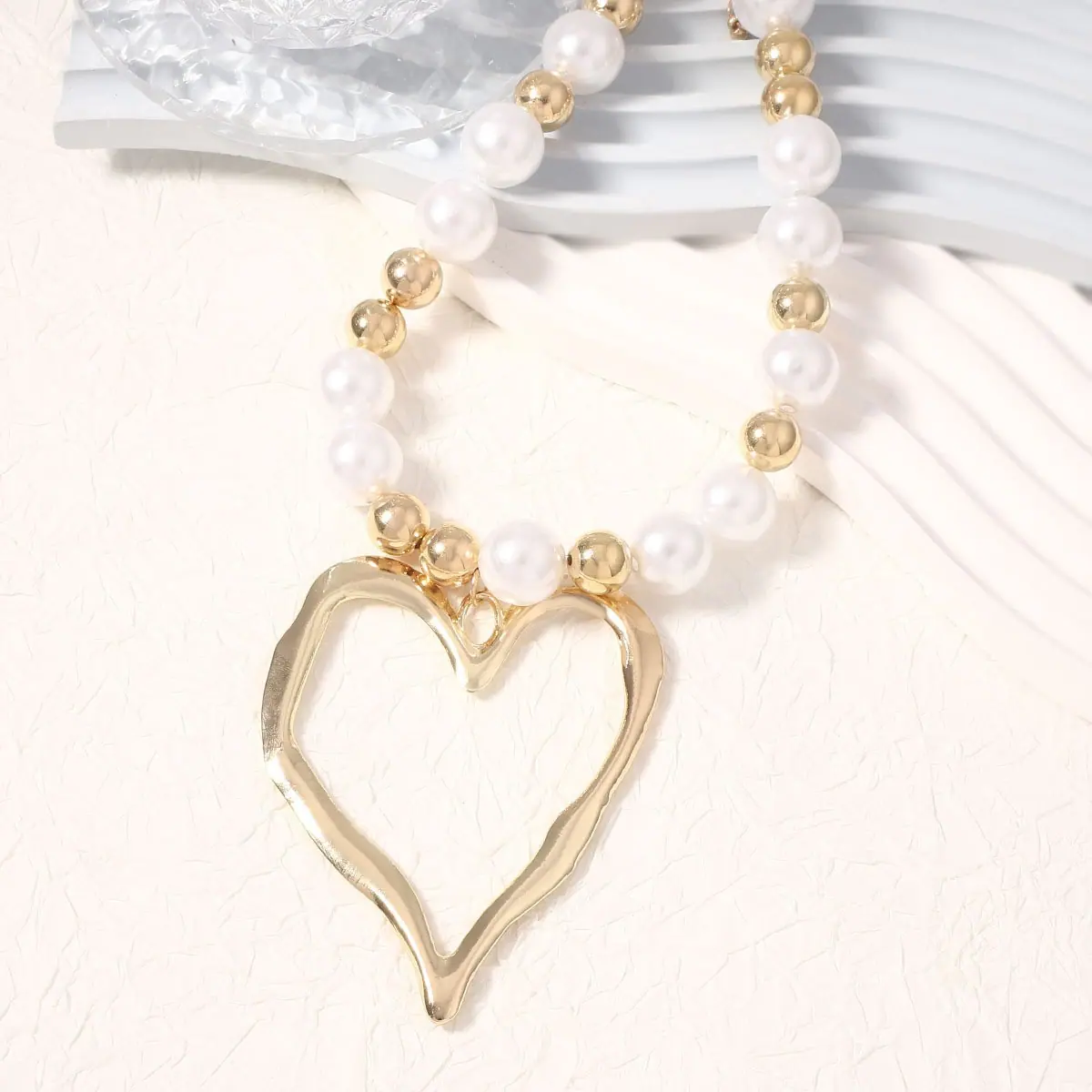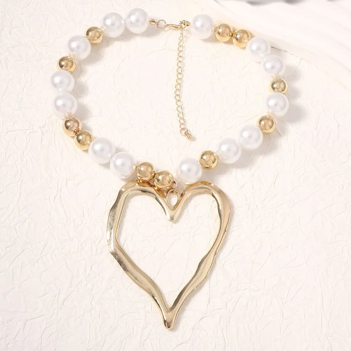 Collar de Cadena Clavicular Estilo Europeo y Americano Ins Moda Exagerado Recorte Corazón Grande Color Mezclado Perla Imitación Venta al por Mayor de Joyería Transfronteriza