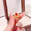Nuevo Anillo Corona Arcoíris para Mujer, Diseño Nicho de Lujo Ligero, Anillo Abierto de Zirconia Colorida, Joyería de Mano Personalizada de Moda