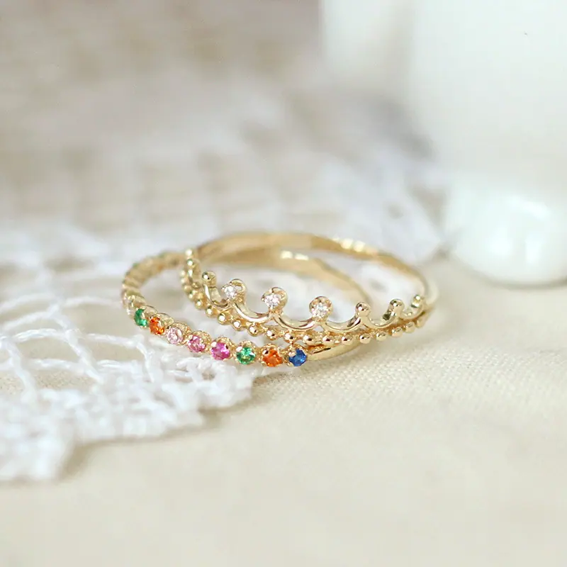 Crown ring (gold-plated copper), Colored zirconium ring (gold-plated copper)