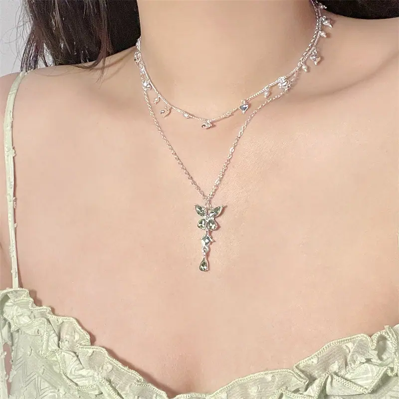 Collar de Borlas de Doble Capa Collar de Mujer Gargantilla Diseño Nicho de Lujo Ligero Nuevo Estilo 2024