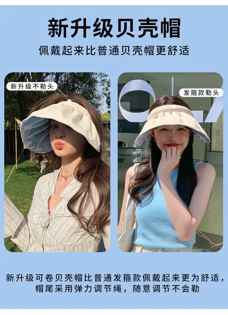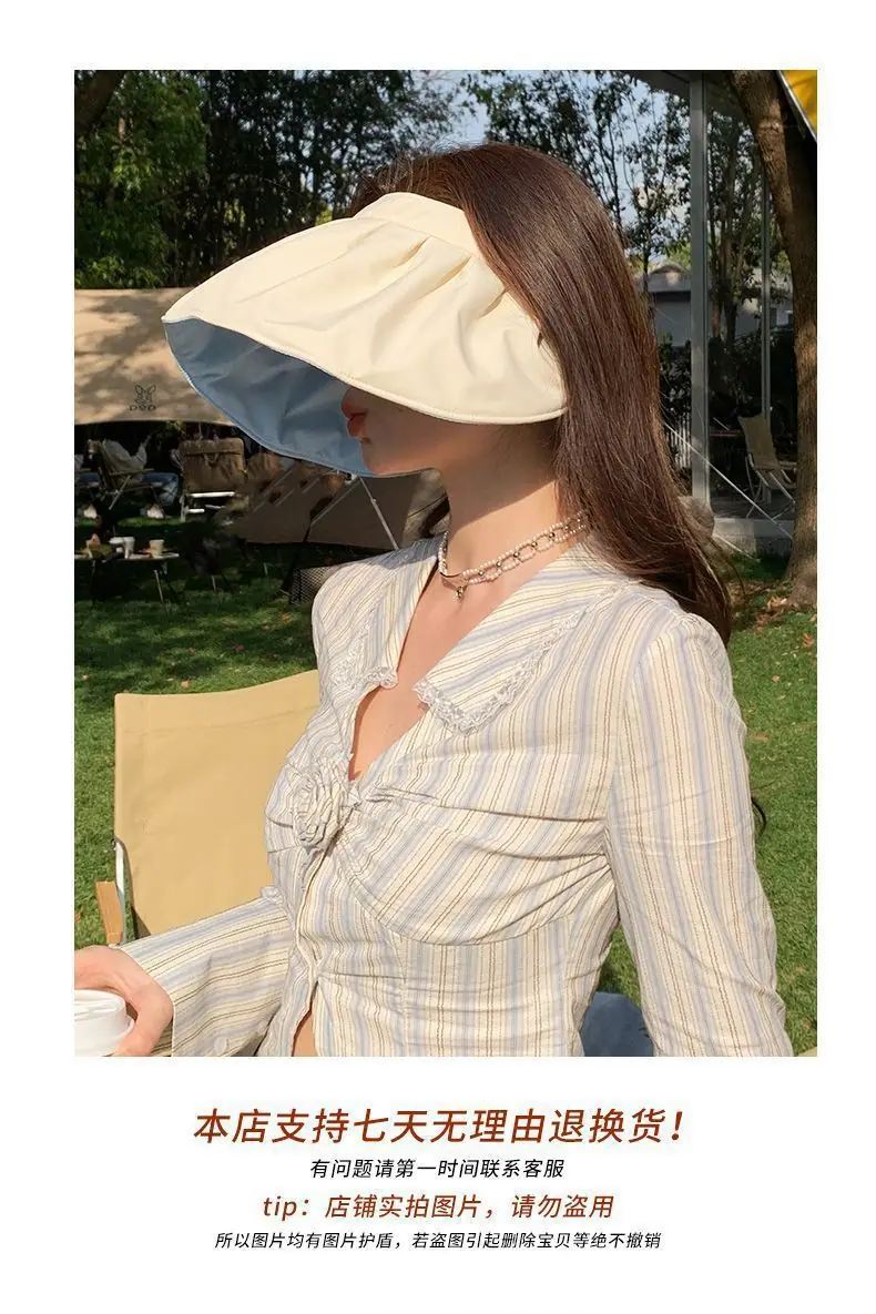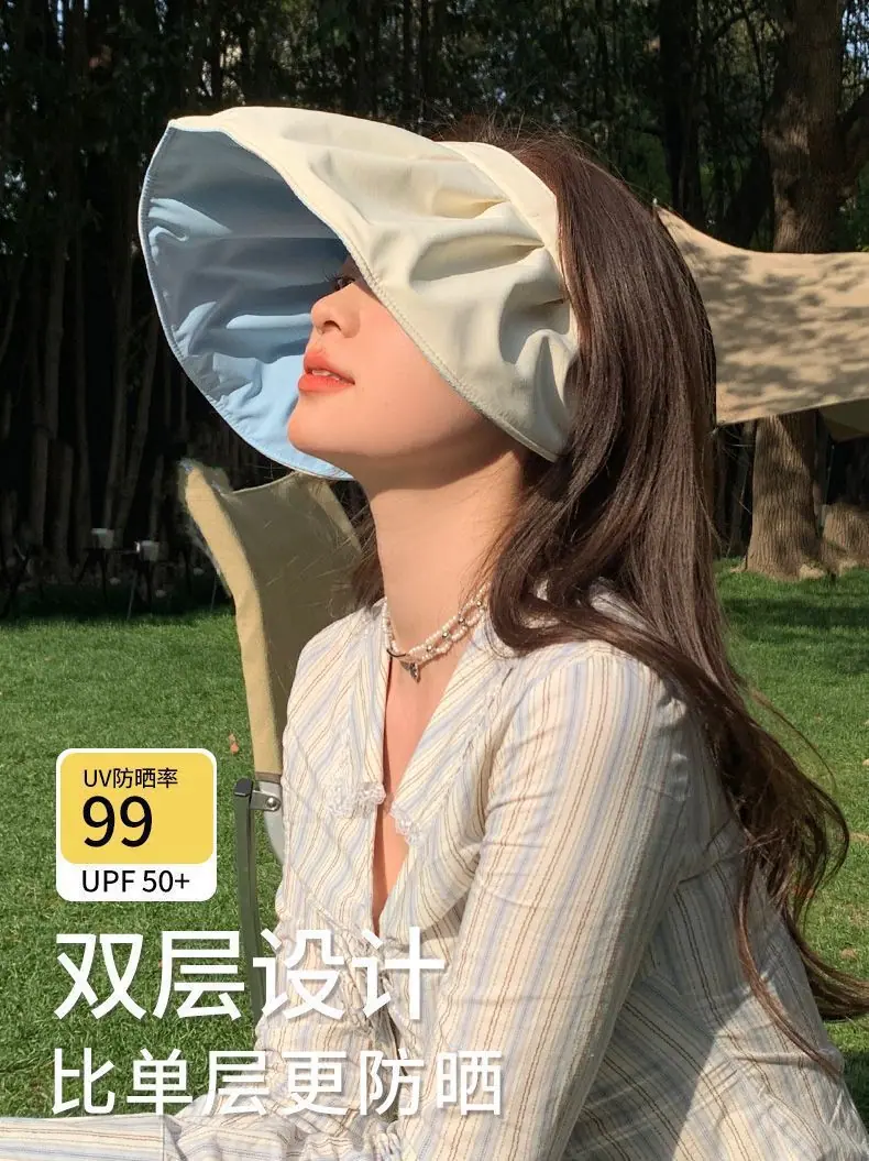 Sombrero de Protección Solar para Mujer Verano Protección UV 2025 Nuevo Sombrero de Sol Concha Sombrero de Copa Vacío Cubriendo la Cara Sombrero de Sol de Ala Ancha