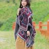 Fotografía de Viaje Xinjiang Xizang Estilo Étnico Otoño e Invierno Cálido Chal Capa con Abertura Capa Engrosada Bufanda Imitación Cachemira
