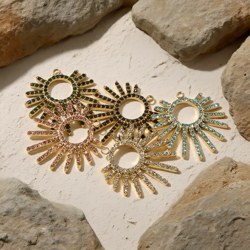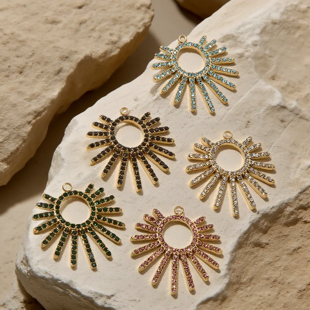 Joyería Transfronteriza Multicolor de Acero Inoxidable con Diamantes Completos Colgante de Diamante de Girasol Hecho a Mano DIY Accesorios para Pulsera Collar Venta al por Mayor