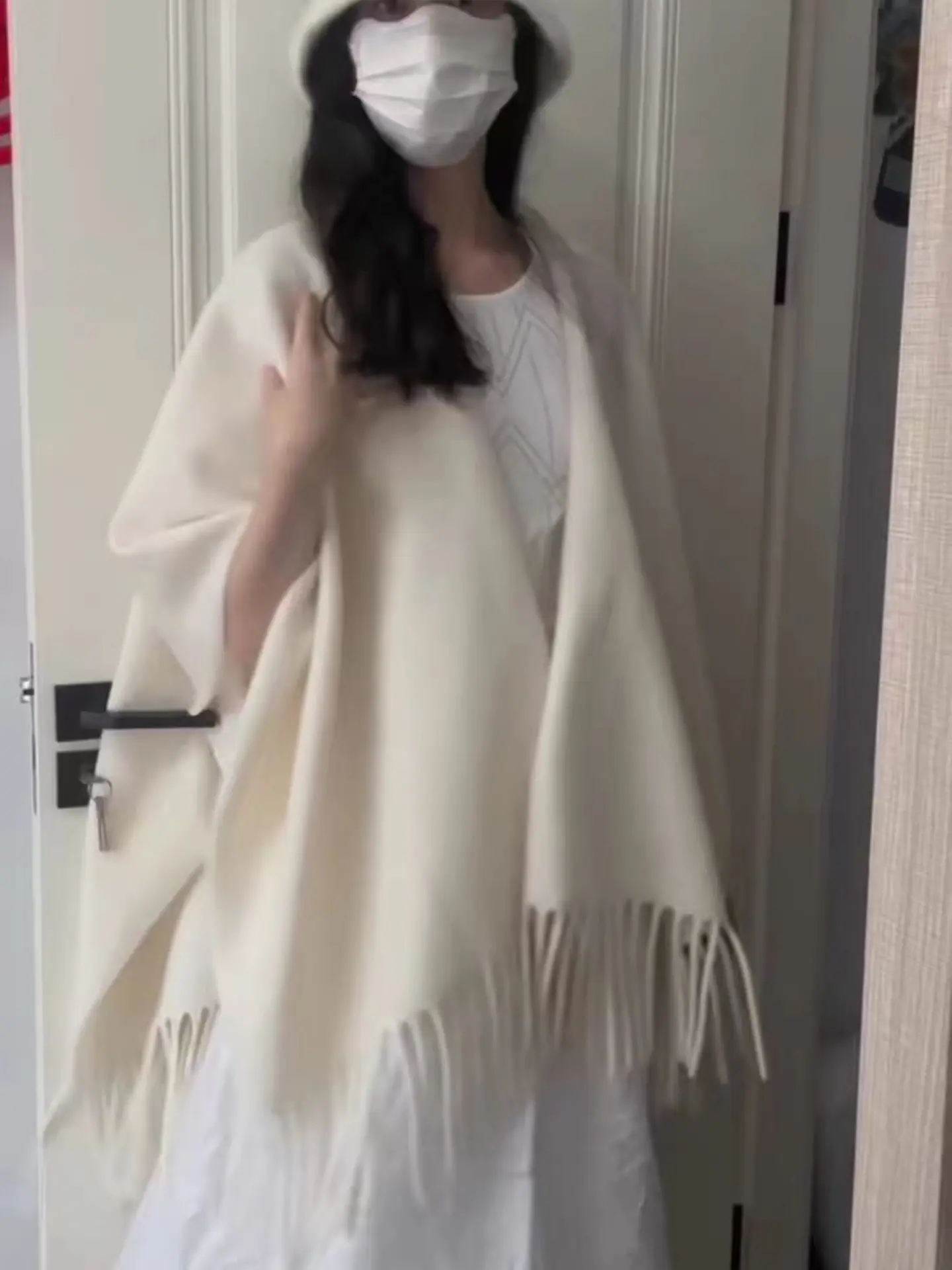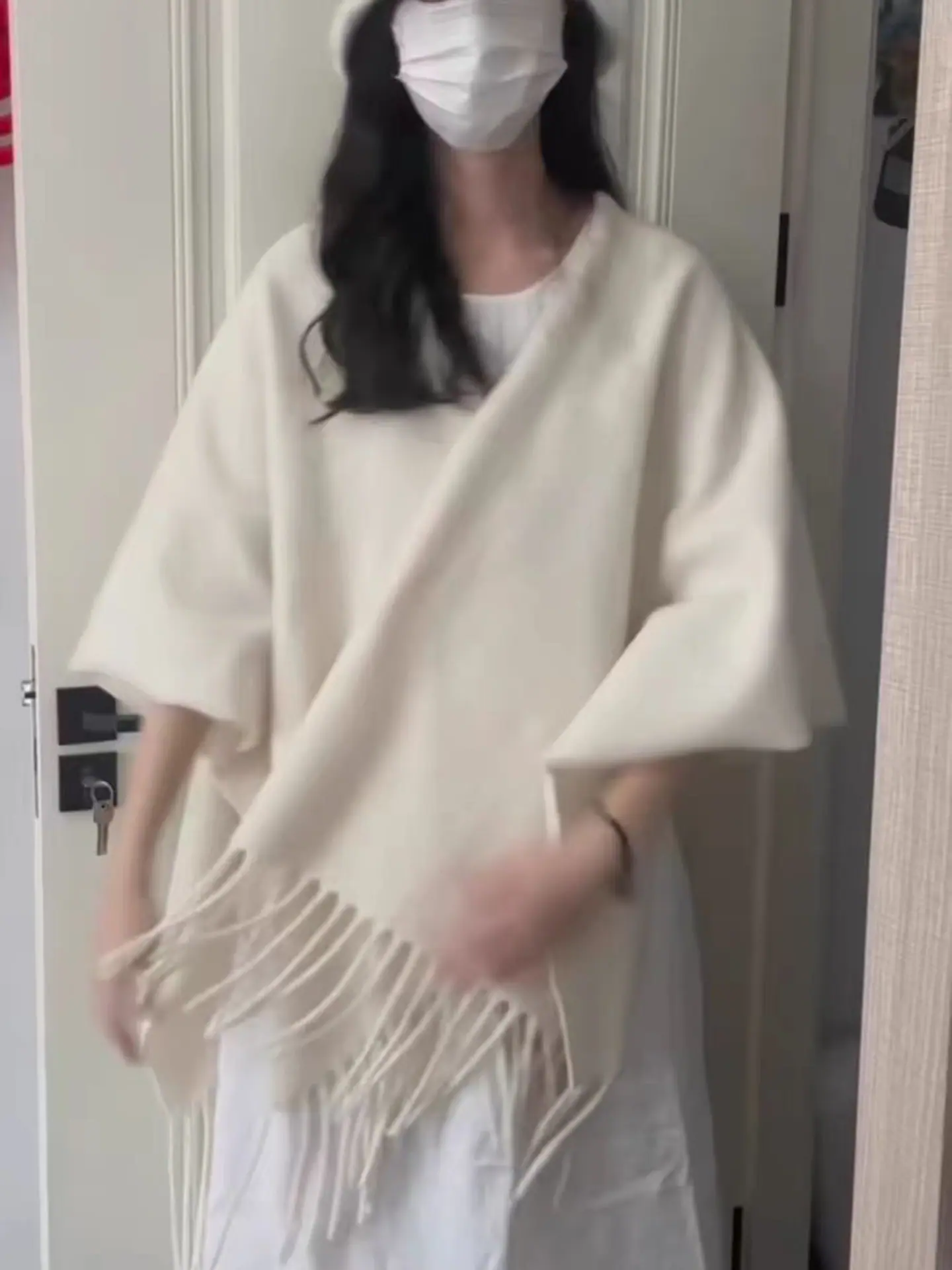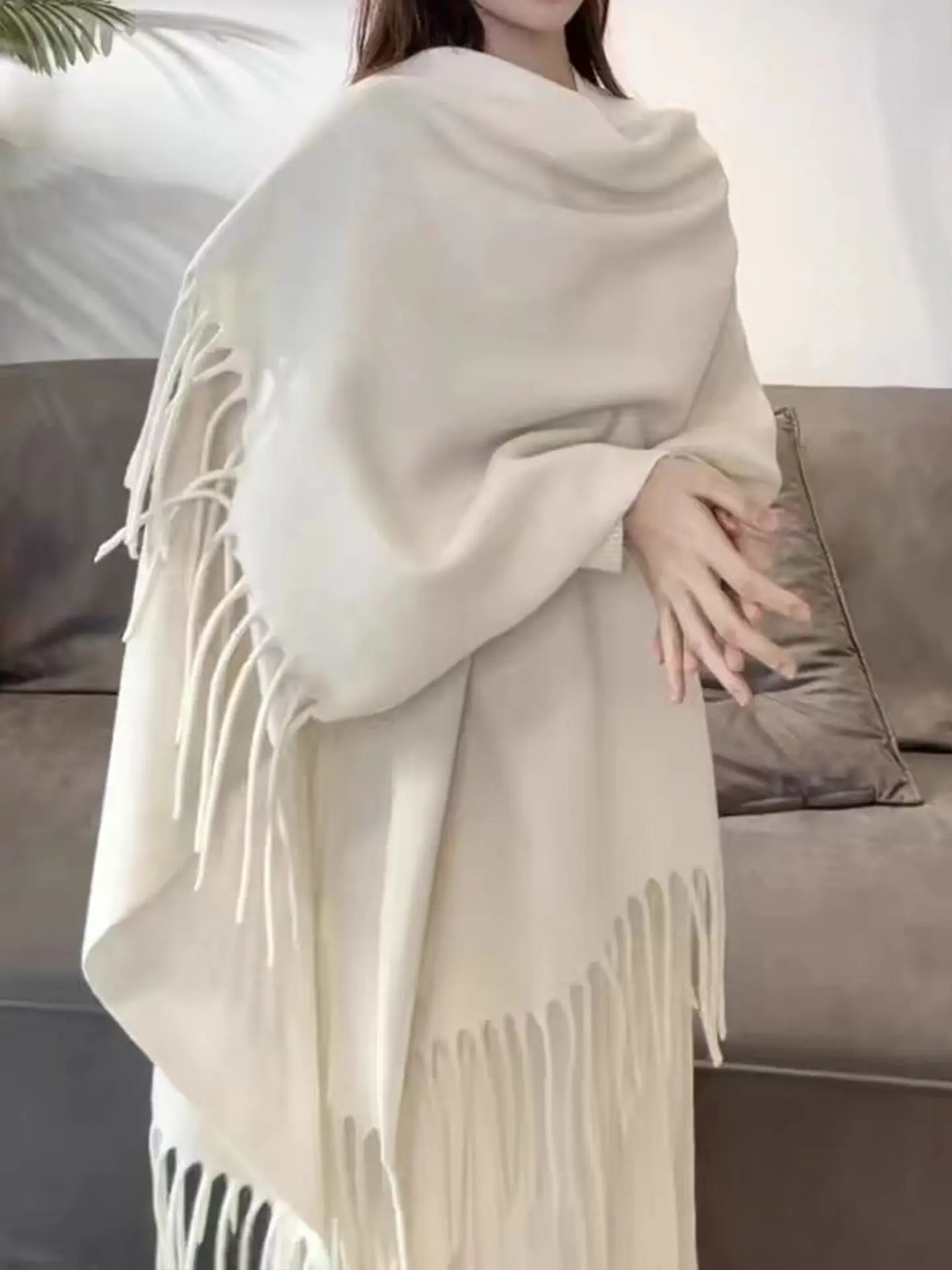 Wool pure white [fringed shawl] length 1.7 width 1.25m pounds