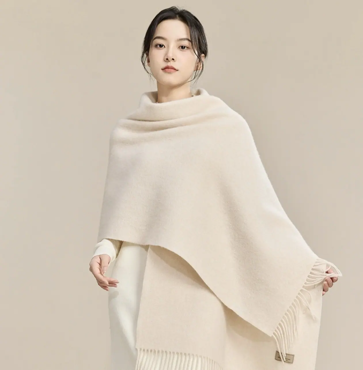 Fábrica de Origen Capa Capa Moderna Letra Lana Doble Cara Invierno Cálida a Prueba de Frío Capa Alta Moda Vintage