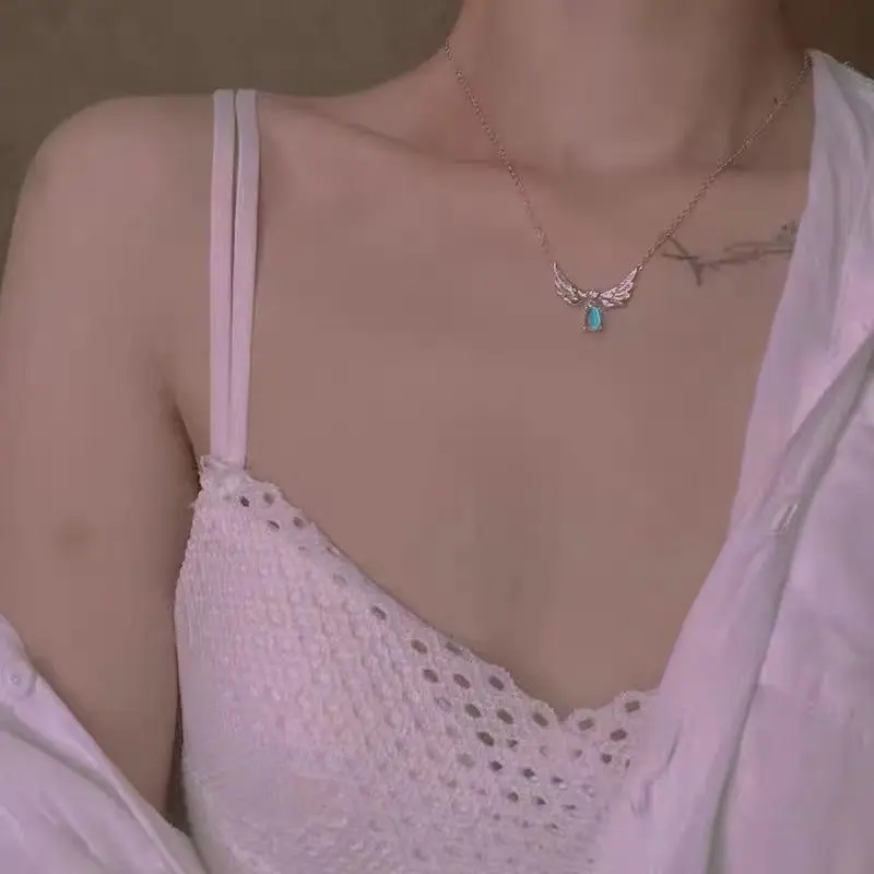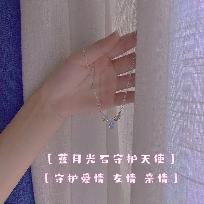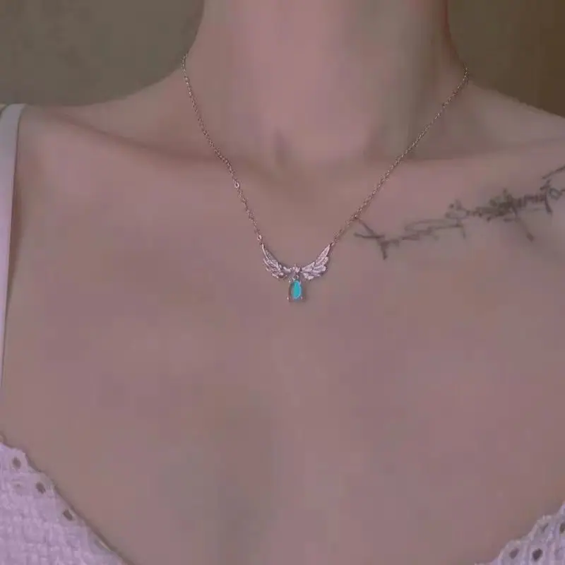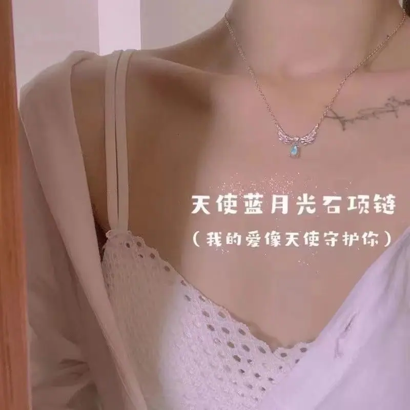 Collar con colgante de alas de ángel y piedra lunar para mujer, diseño de nicho de lujo ligero, cadena de clavícula de alta calidad, accesorios exquisitos que combinan con todo.