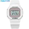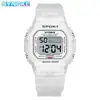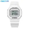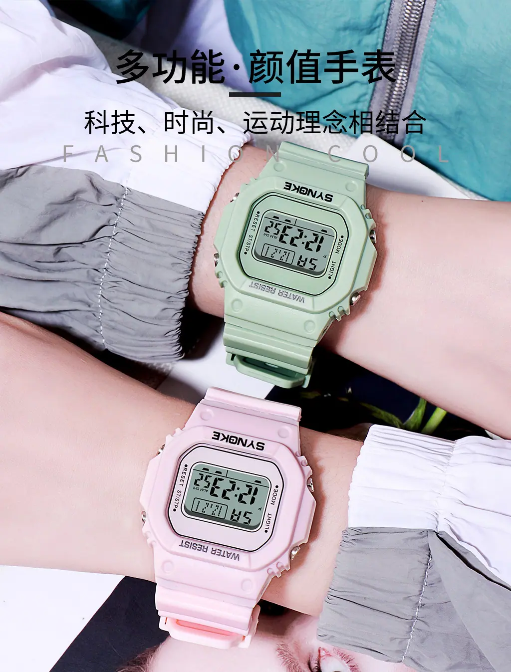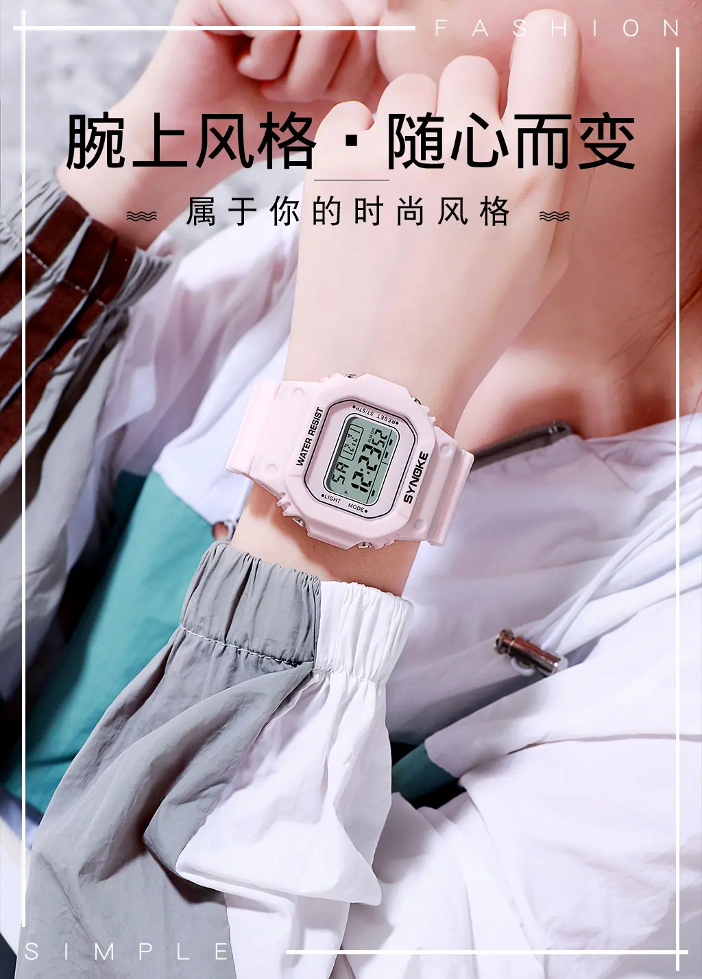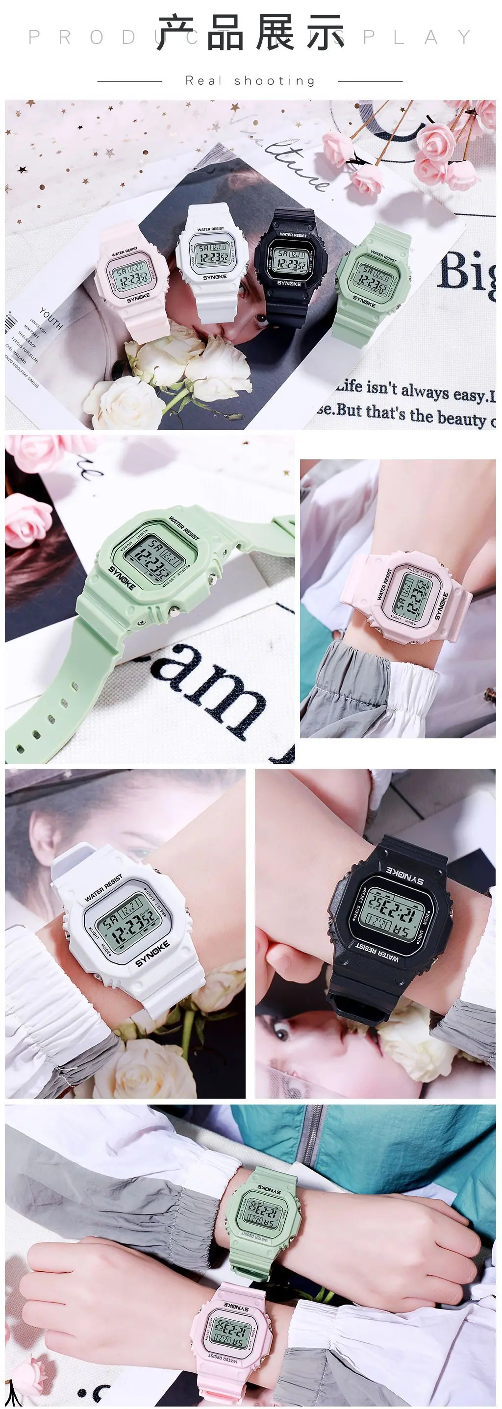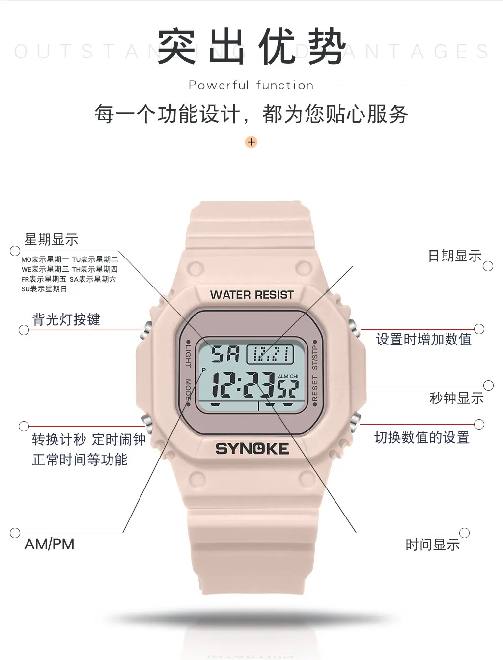 Correa de plástico PU, caja de plástico, tapa inferior de acero inoxidable, espejo acrílico, hebilla de acero inoxidable. |