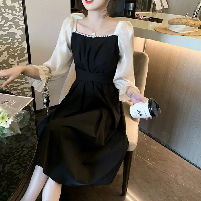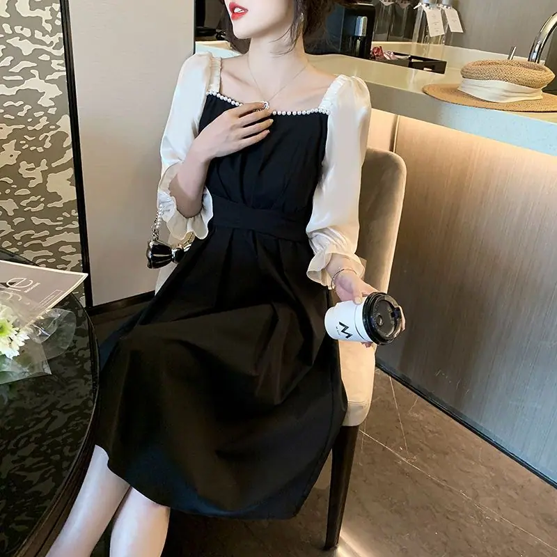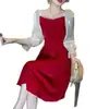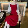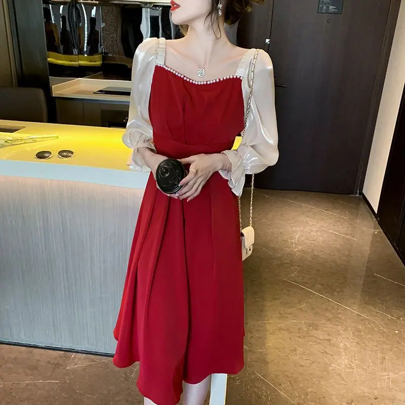 ]Vestido Rojo Francés Pequeño Fragante para Mujer 2025 Primavera y Otoño Nueva Moda Aspecto Adelgazante de Cintura Falda Midi
