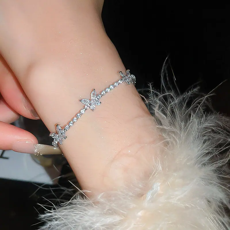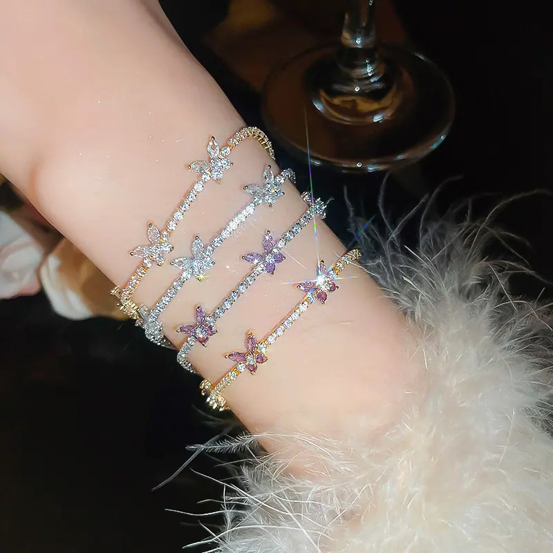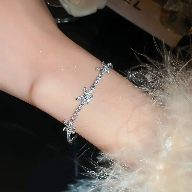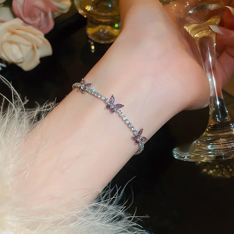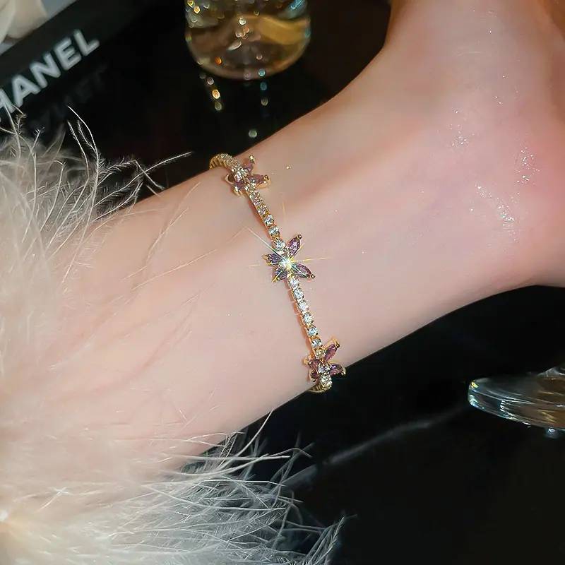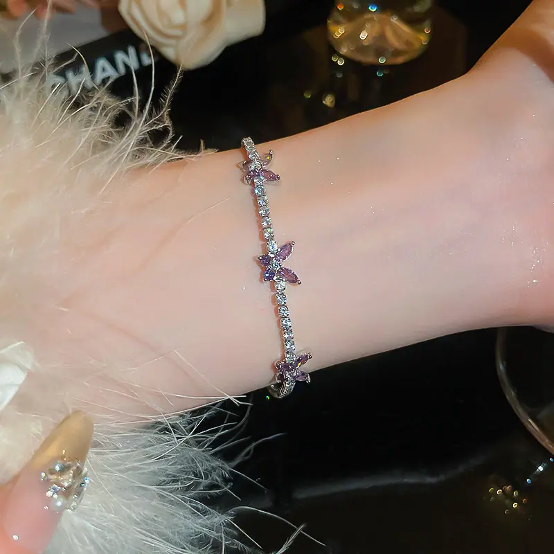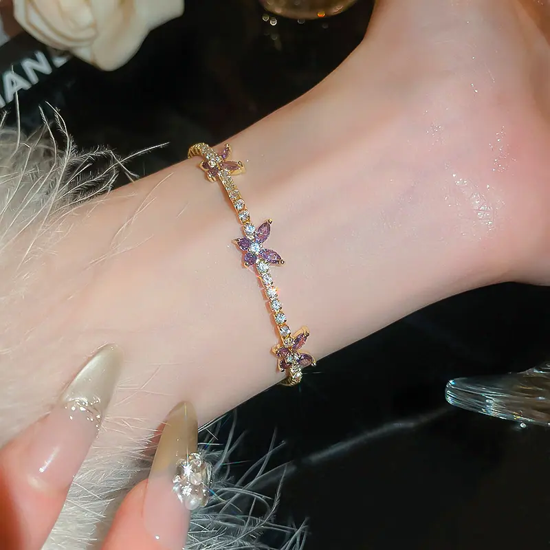 Pulsera cuadrada de flores de circonita lujo ligero francés sentido de alta gama brazalete moderno exquisito personalidad temperamento versátil joyería de mano