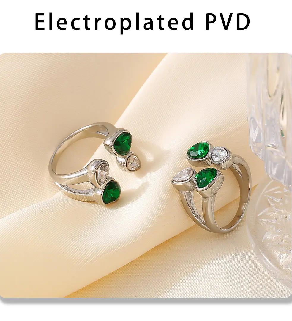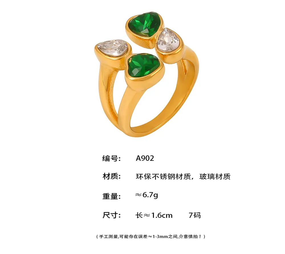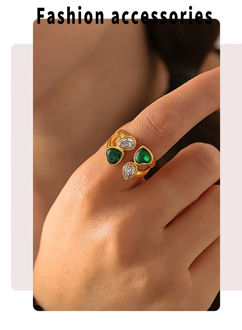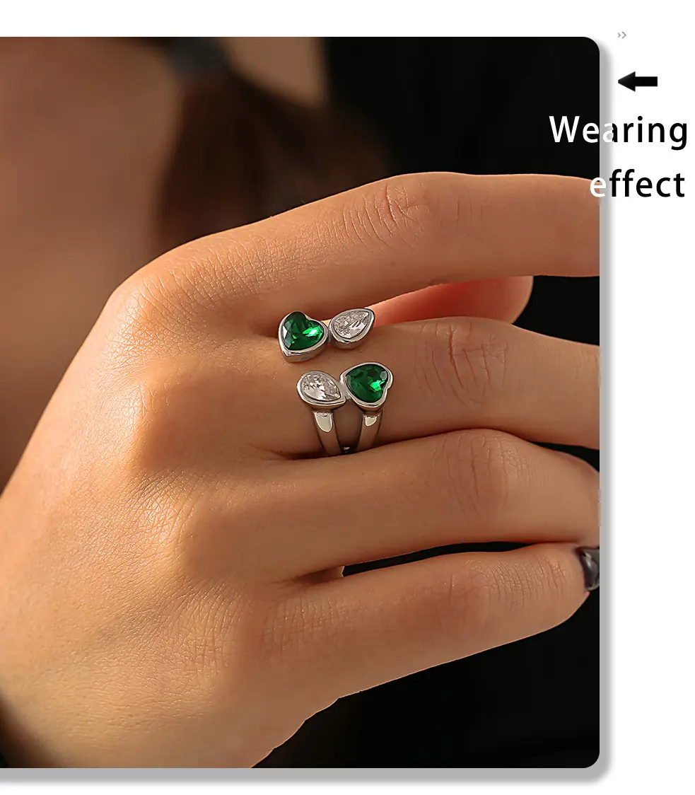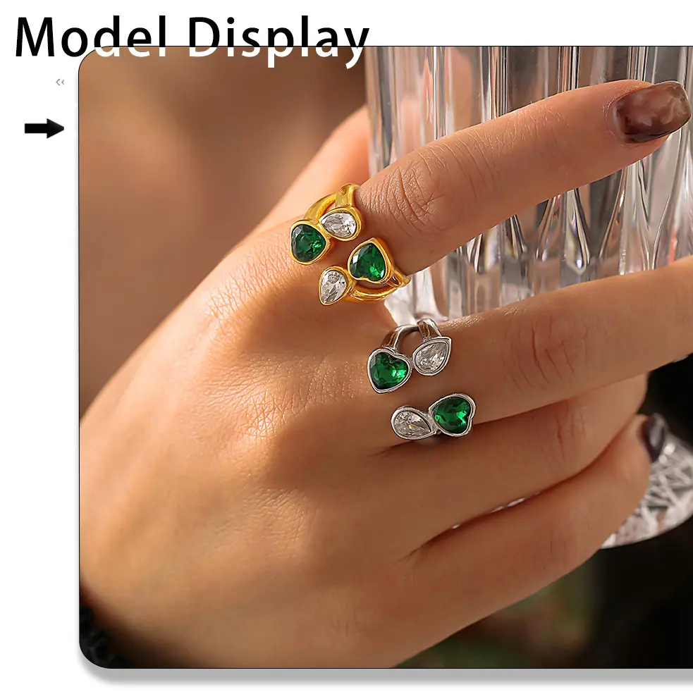 Anillo de acero inoxidable con diseño de nicho y apertura en forma de gota de agua de doble capa con piedra de cristal y diseño de amor de estilo europeo y americano para mujer.