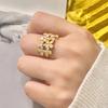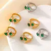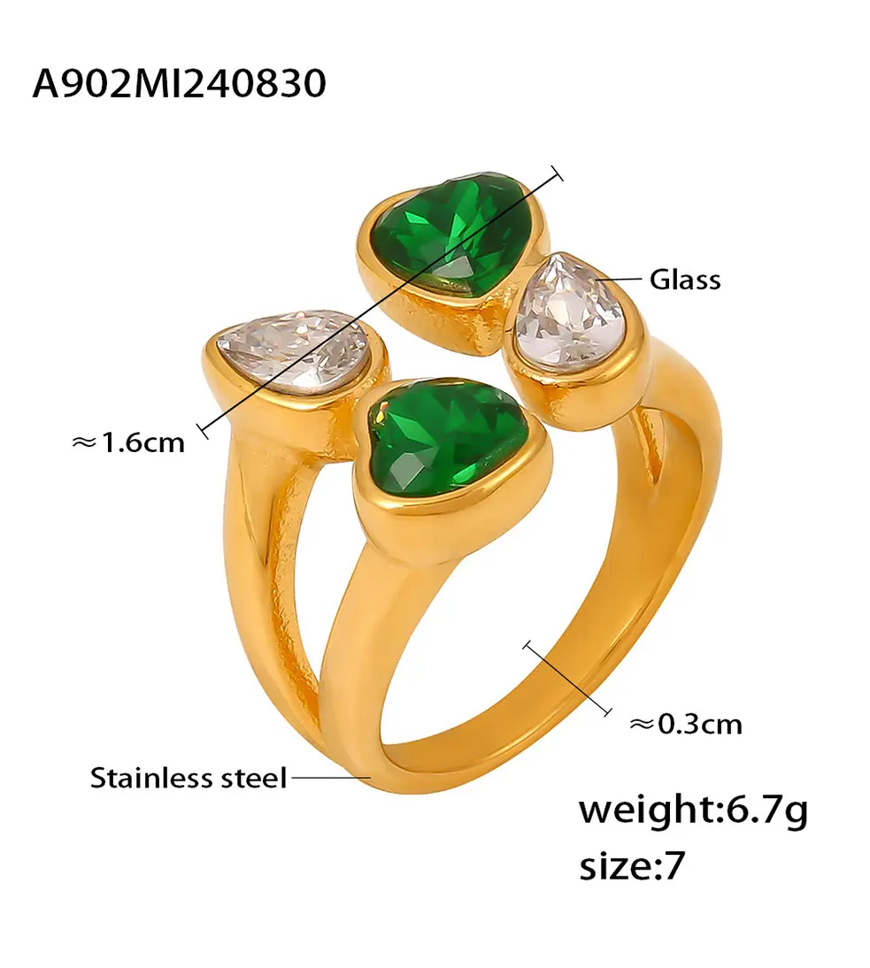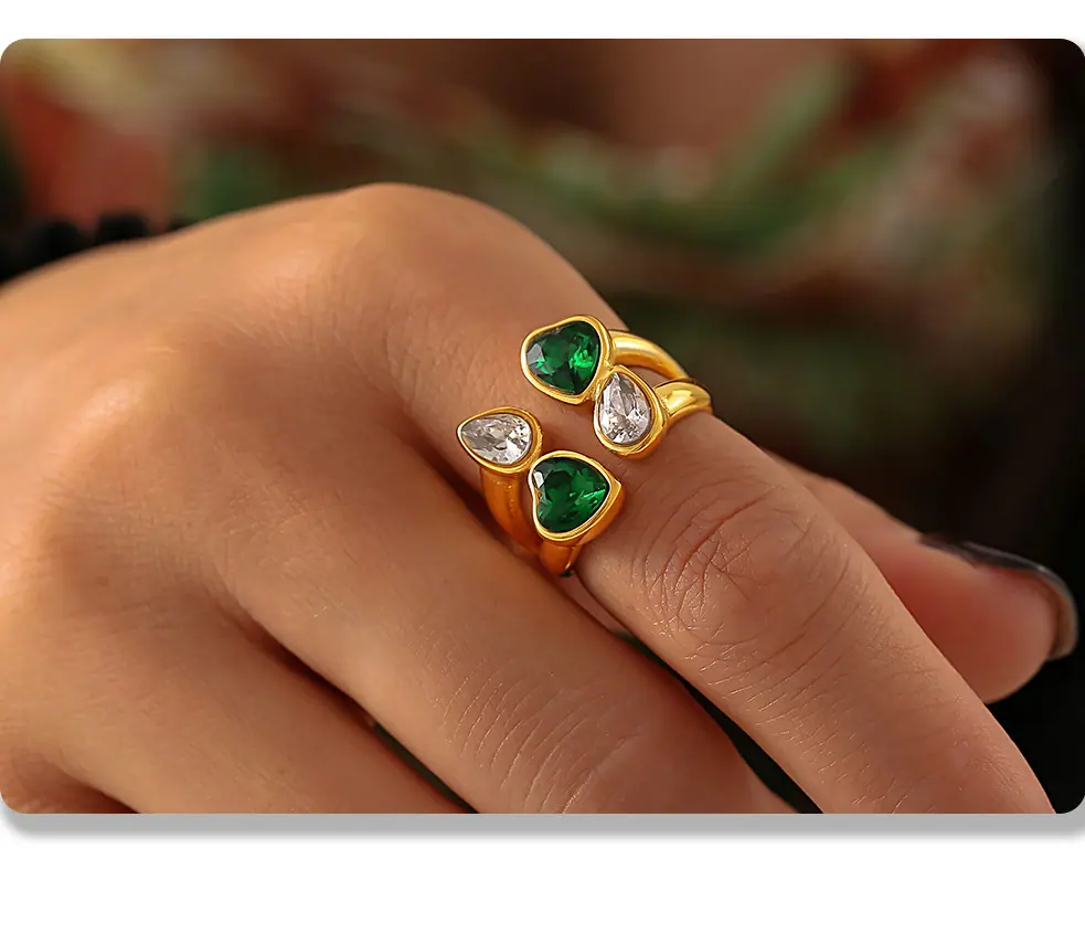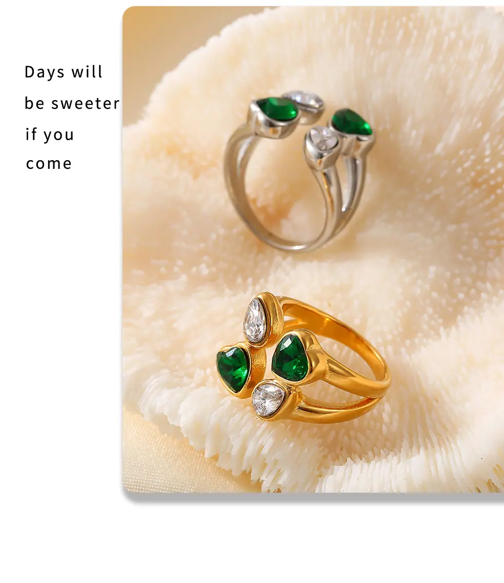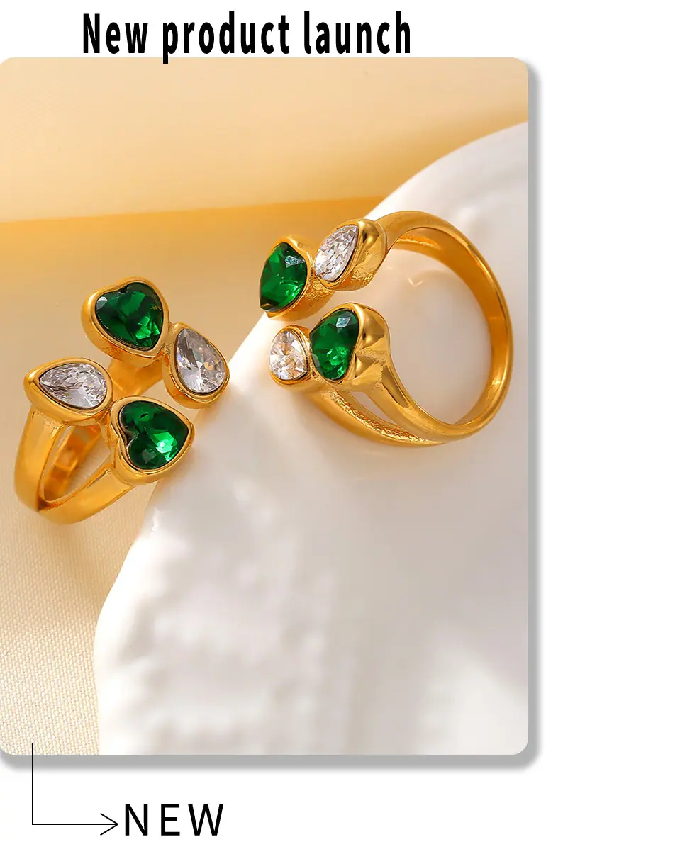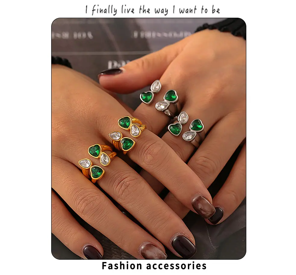 Anillo de acero inoxidable con diseño de nicho y apertura en forma de gota de agua de doble capa con piedra de cristal y diseño de amor de estilo europeo y americano para mujer.