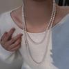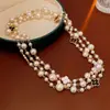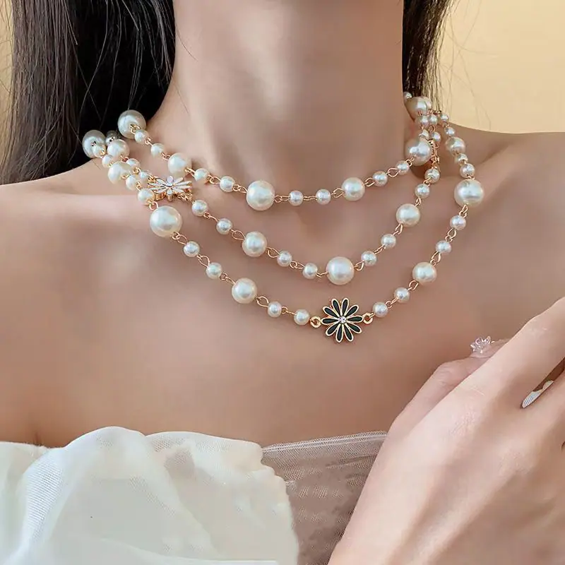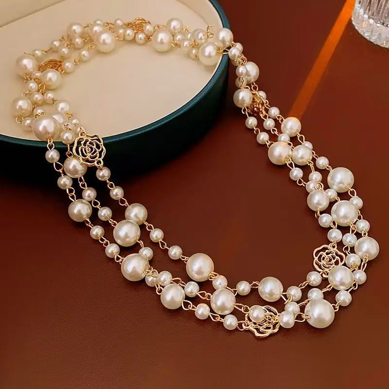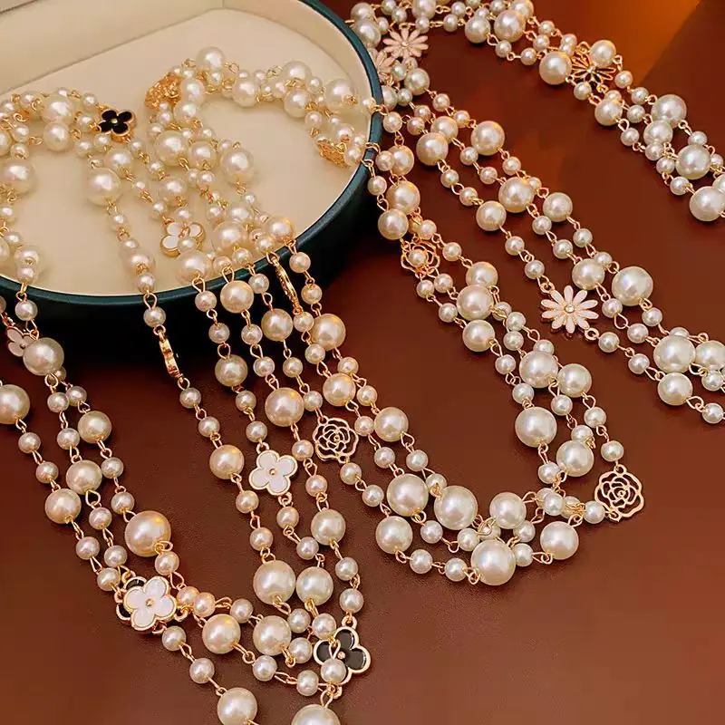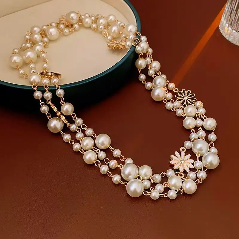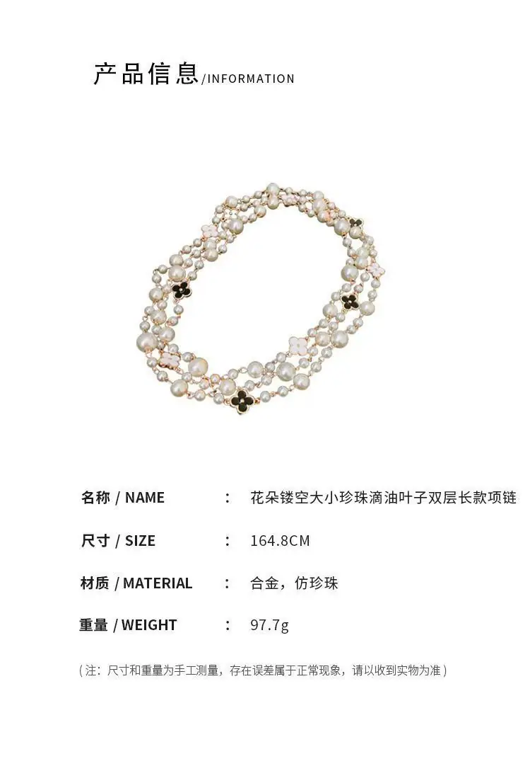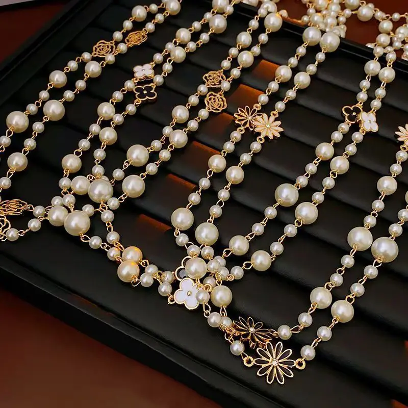 Cadena larga de suéter de perlas de flores diseño de nicho collar de doble capa de alta gama moda versátil colgante de temperamento de lujo ligero