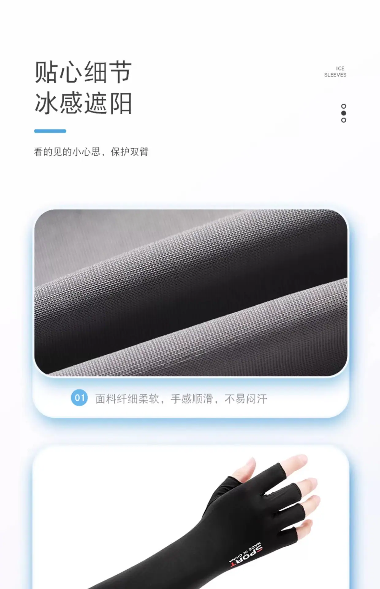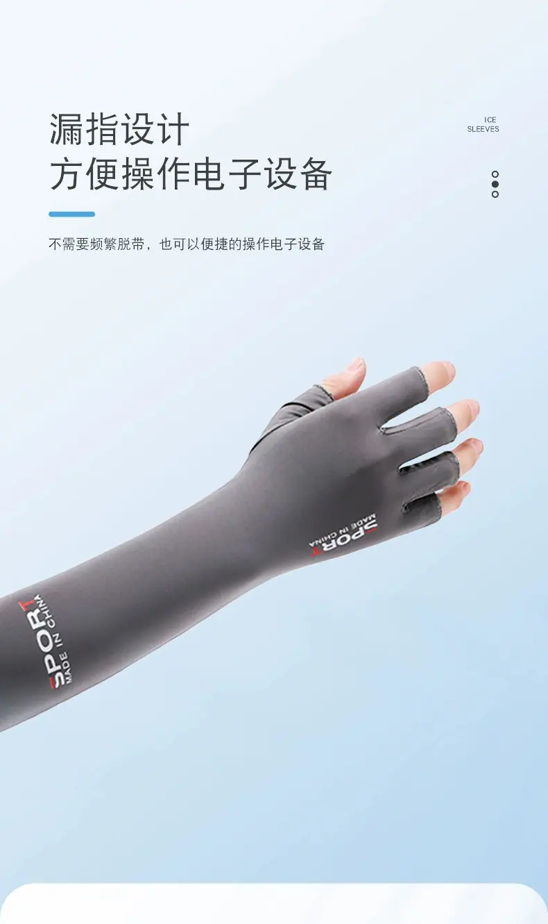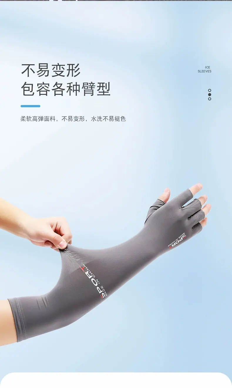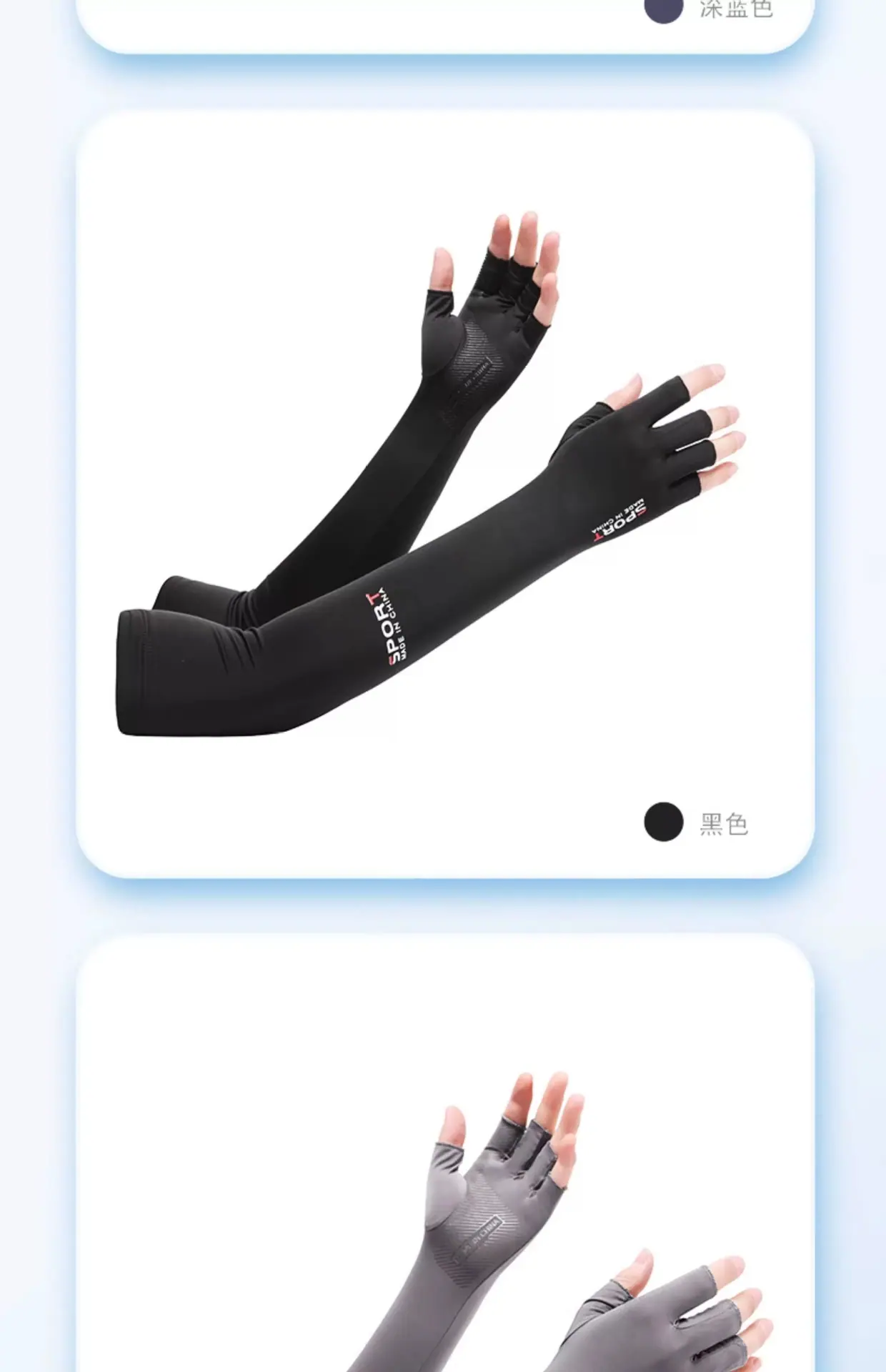 Ice Sleeves Half-Finger Long S-Mark-Gray, Ice Sleeves Half-Finger Long S-Logo - Black, Regular Half-Finger-Black