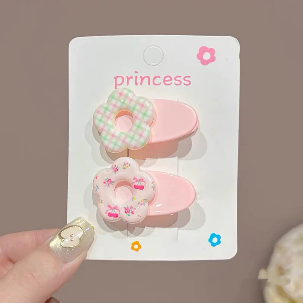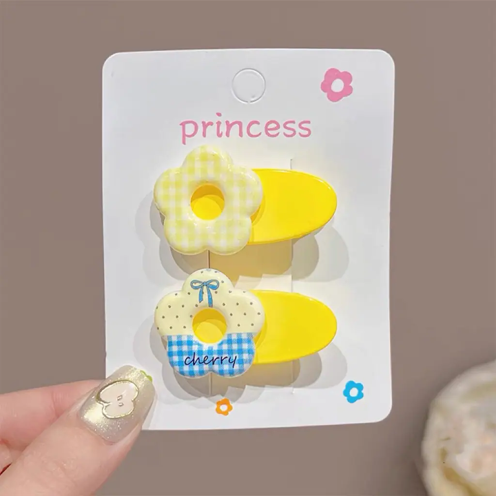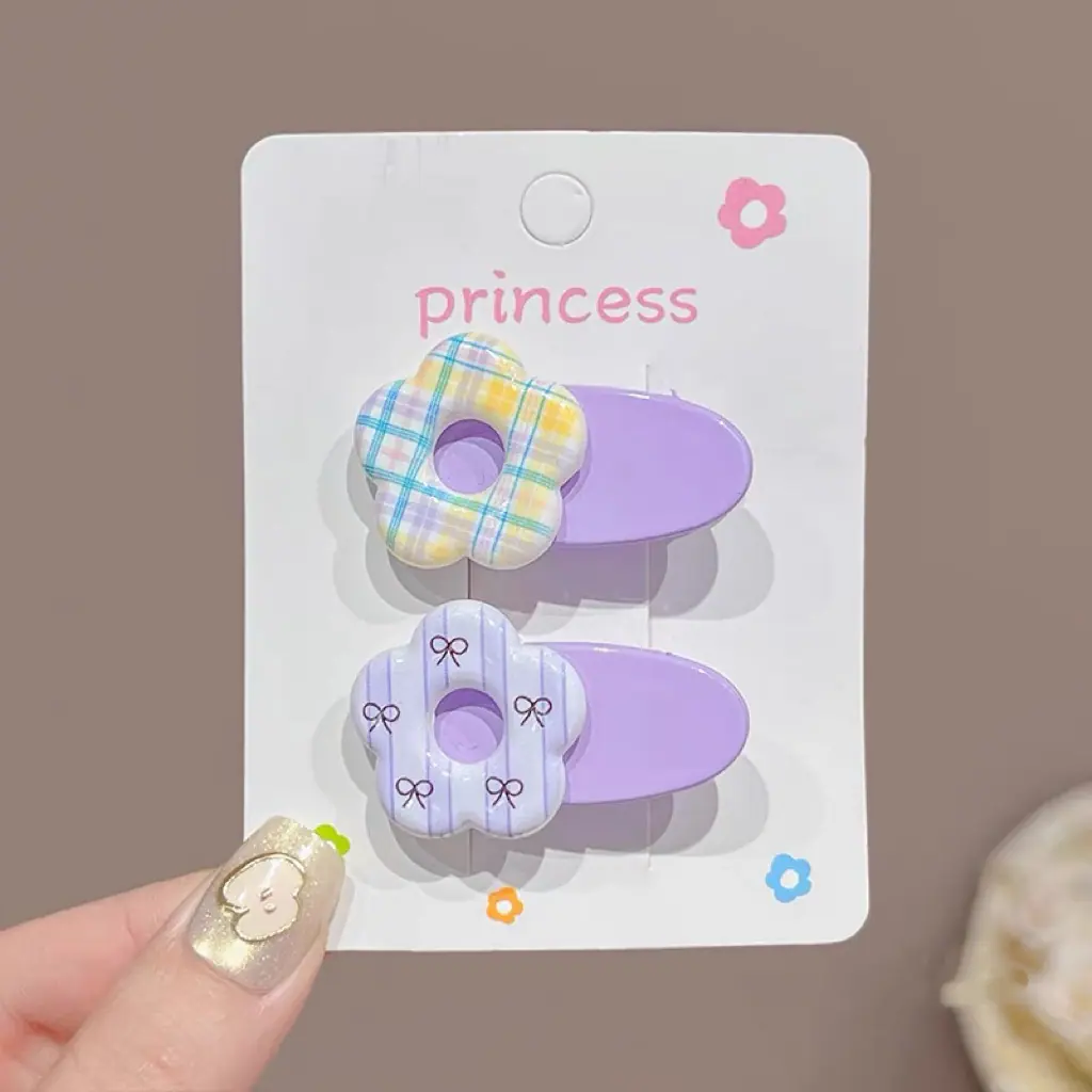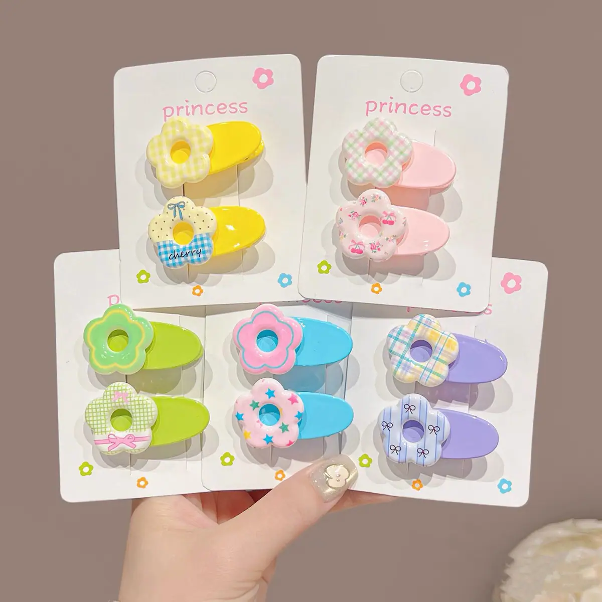 Horquilla Floral a Cuadros de Color Caramelo con Flor, Pinza de Pico de Pato, Horquilla Ovalada, Clip para Cabello Suelto, Flequillo, Clip Lateral, Accesorios para el Cabello de Niña