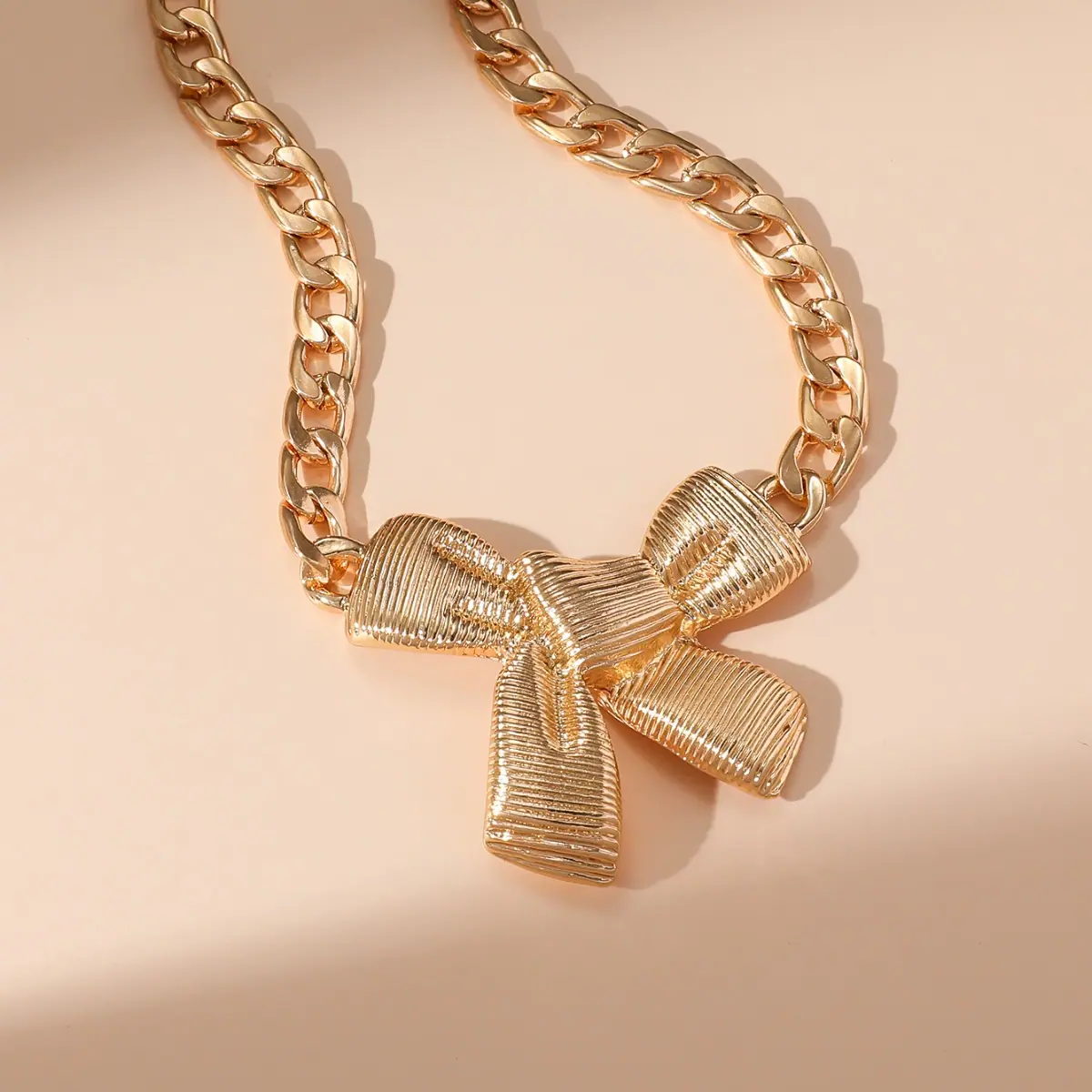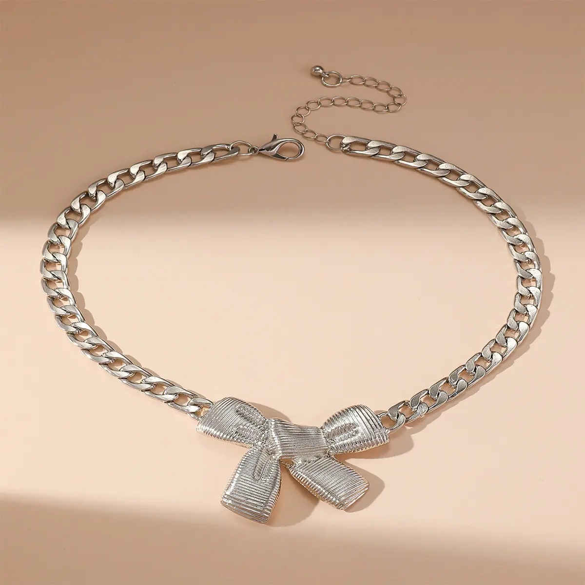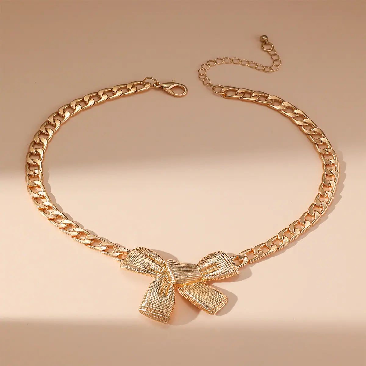 Collar de Metal con Lazo Transfronterizo Europeo y Americano Moda Simple de Alta Gama Cadena para Clavícula Nicho Nuevo Diseño Collar para Mujer