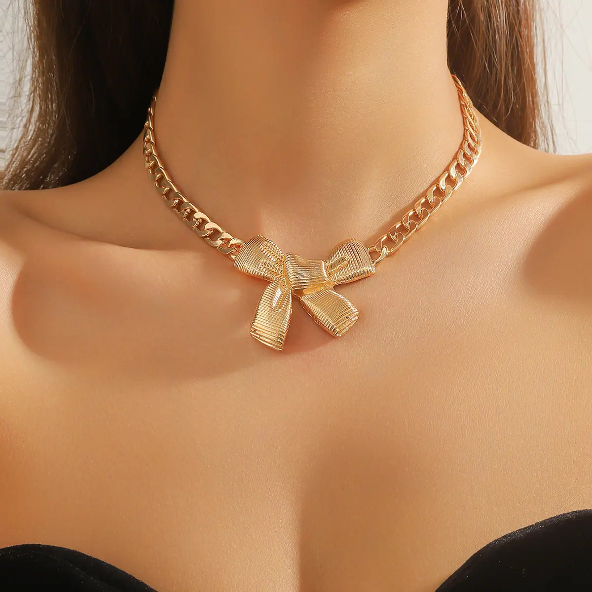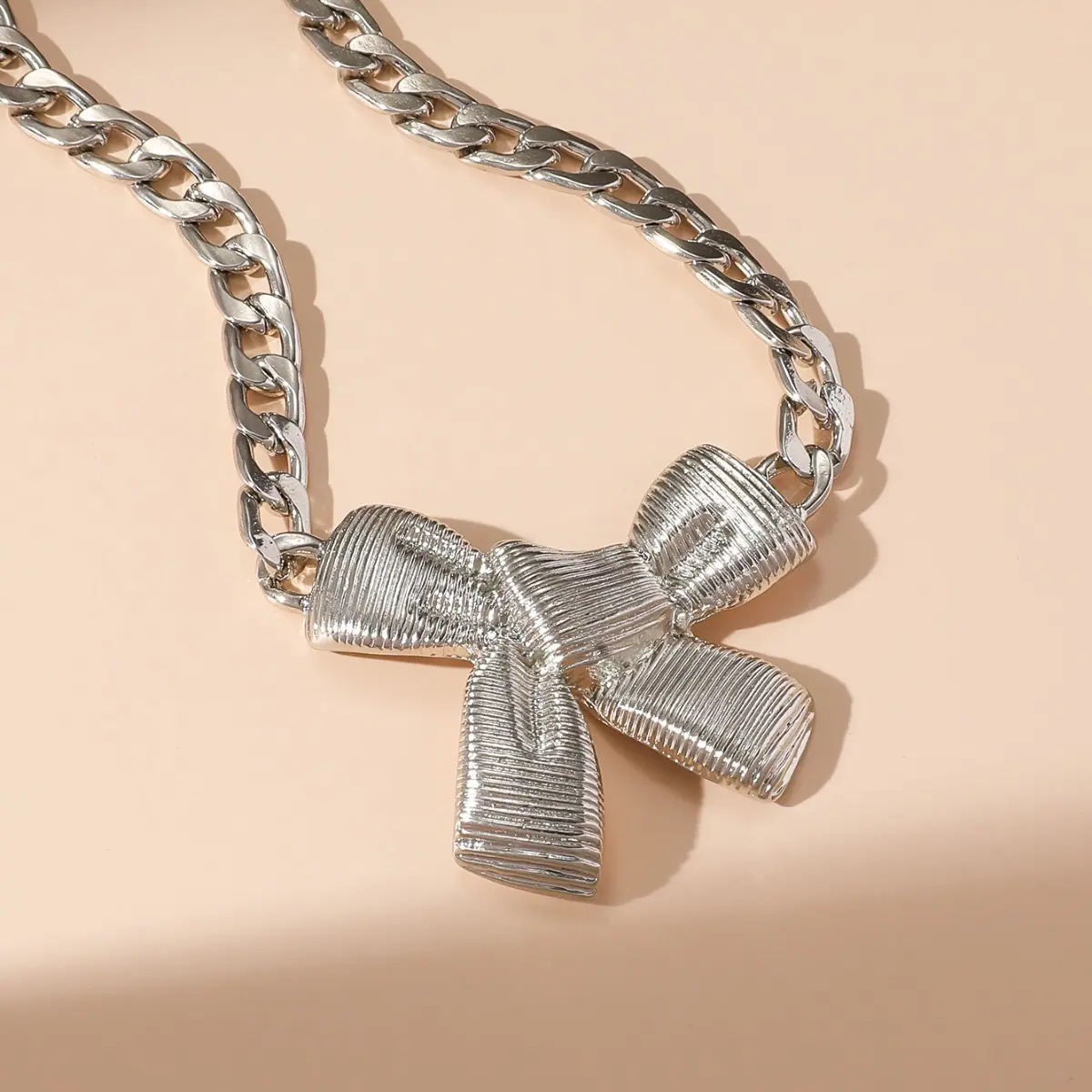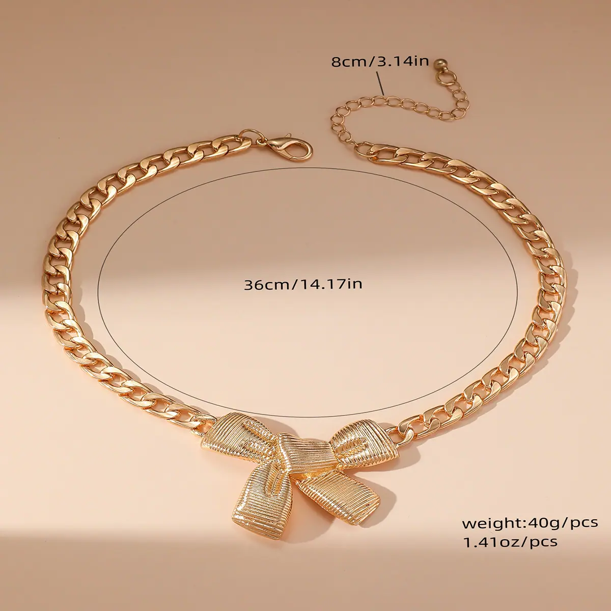 Collar de Metal con Lazo Transfronterizo Europeo y Americano Moda Simple de Alta Gama Cadena para Clavícula Nicho Nuevo Diseño Collar para Mujer