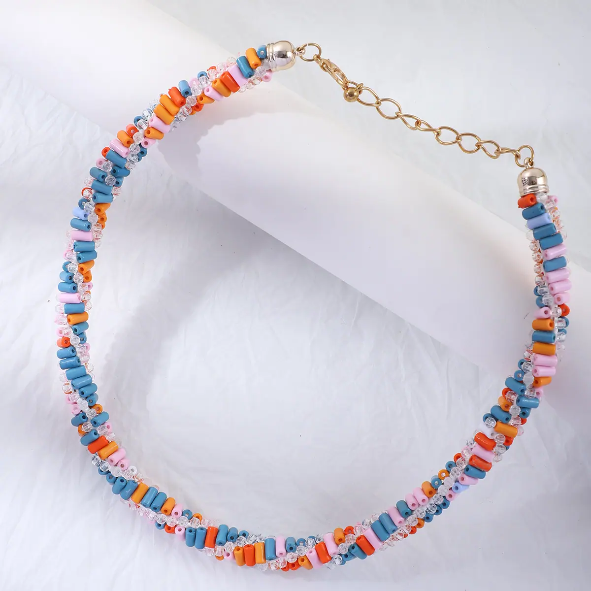 Cadena de clavícula con cuentas de color europeo y americano Nuevo collar hecho a mano de personalidad nicho para mujer