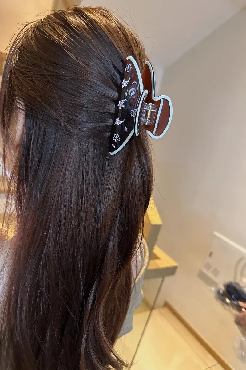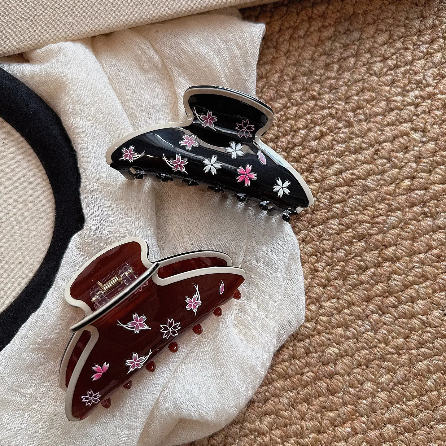 Pinza de garra de flor de acetato de alta gama tamaño mediano temperamento retro versátil para recogido tarjeta para mujer parte posterior de la cabeza pinza de tiburón palabra garra para el cabello