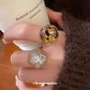 Anillo Abierto Geométrico Redondo Estampado de Leopardo de Resina Retro Francés, Anillo de Dedo Índice Moderno y Versátil, Anillo de Diseño de Nicho
