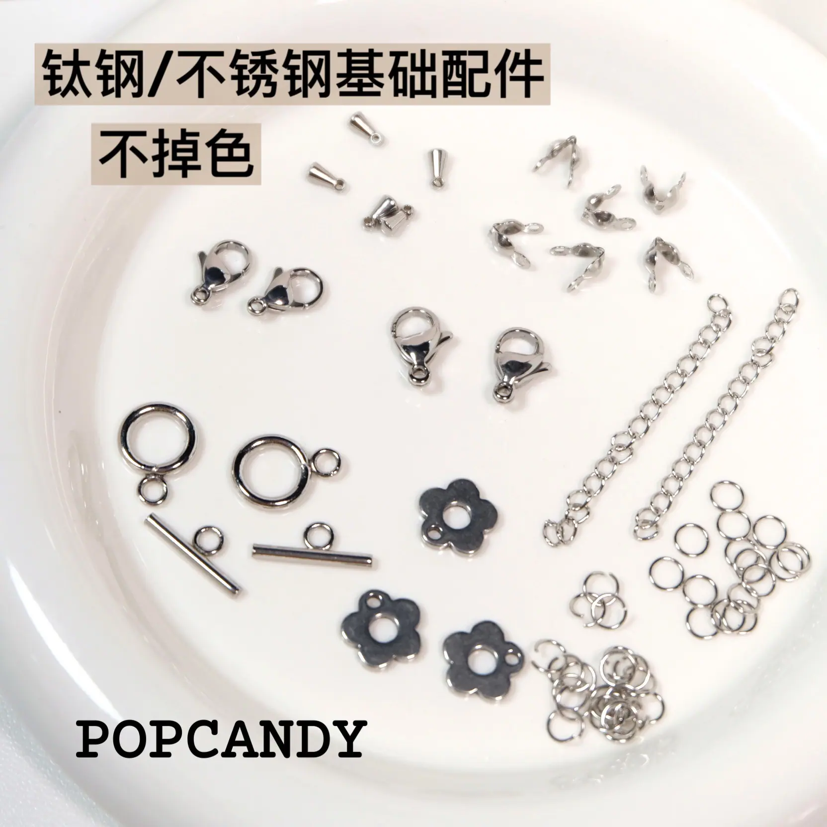 One 13mm lobster clasp, One 12mm lobster clasp, 10 covered buttons (folded size), 5 flower pendants, 2 grams o...